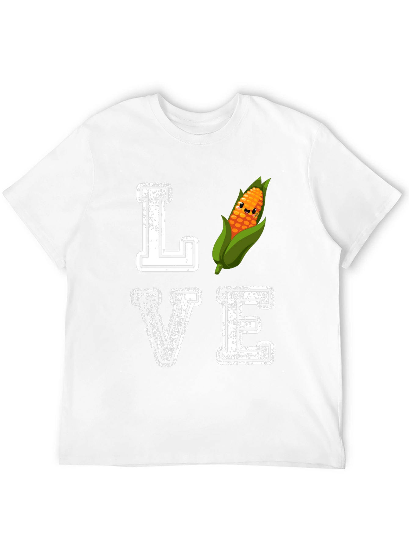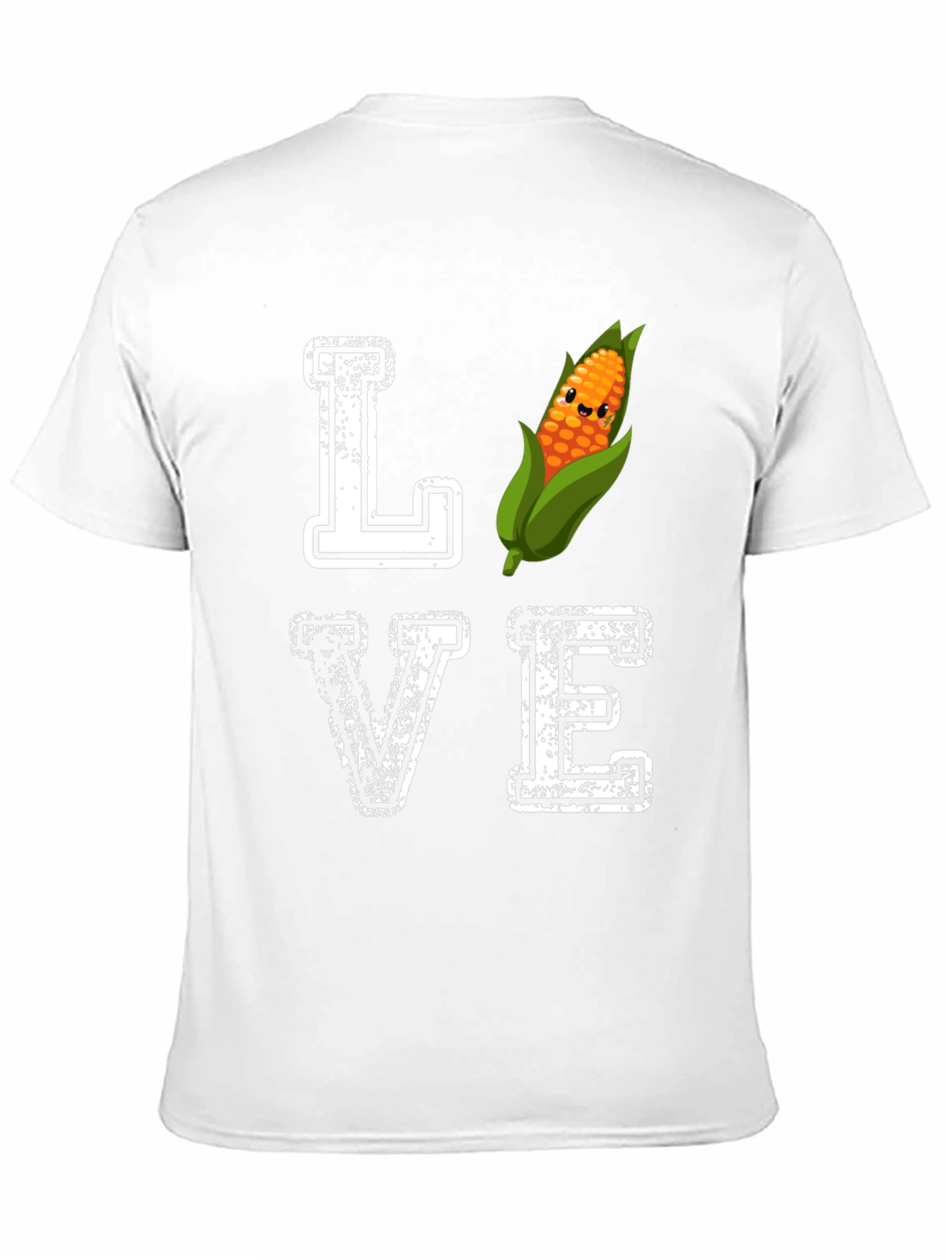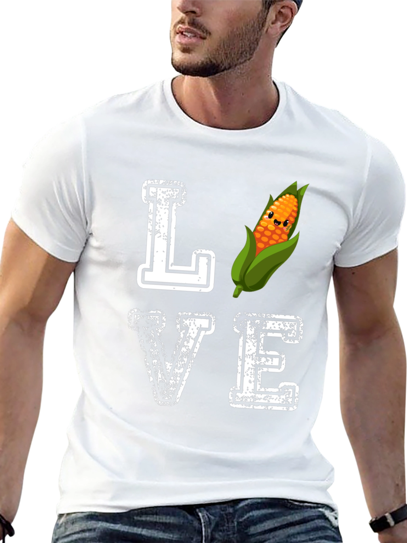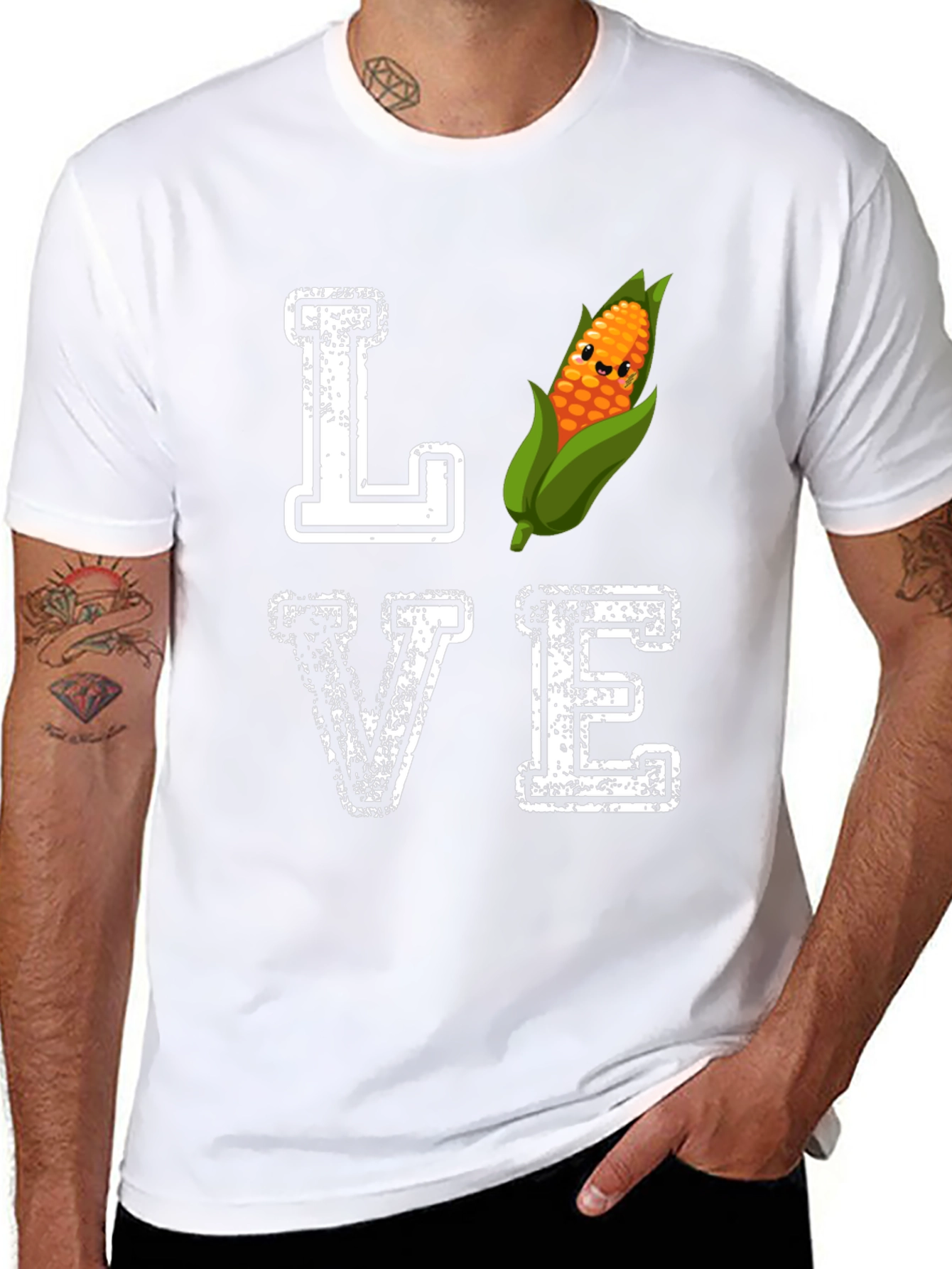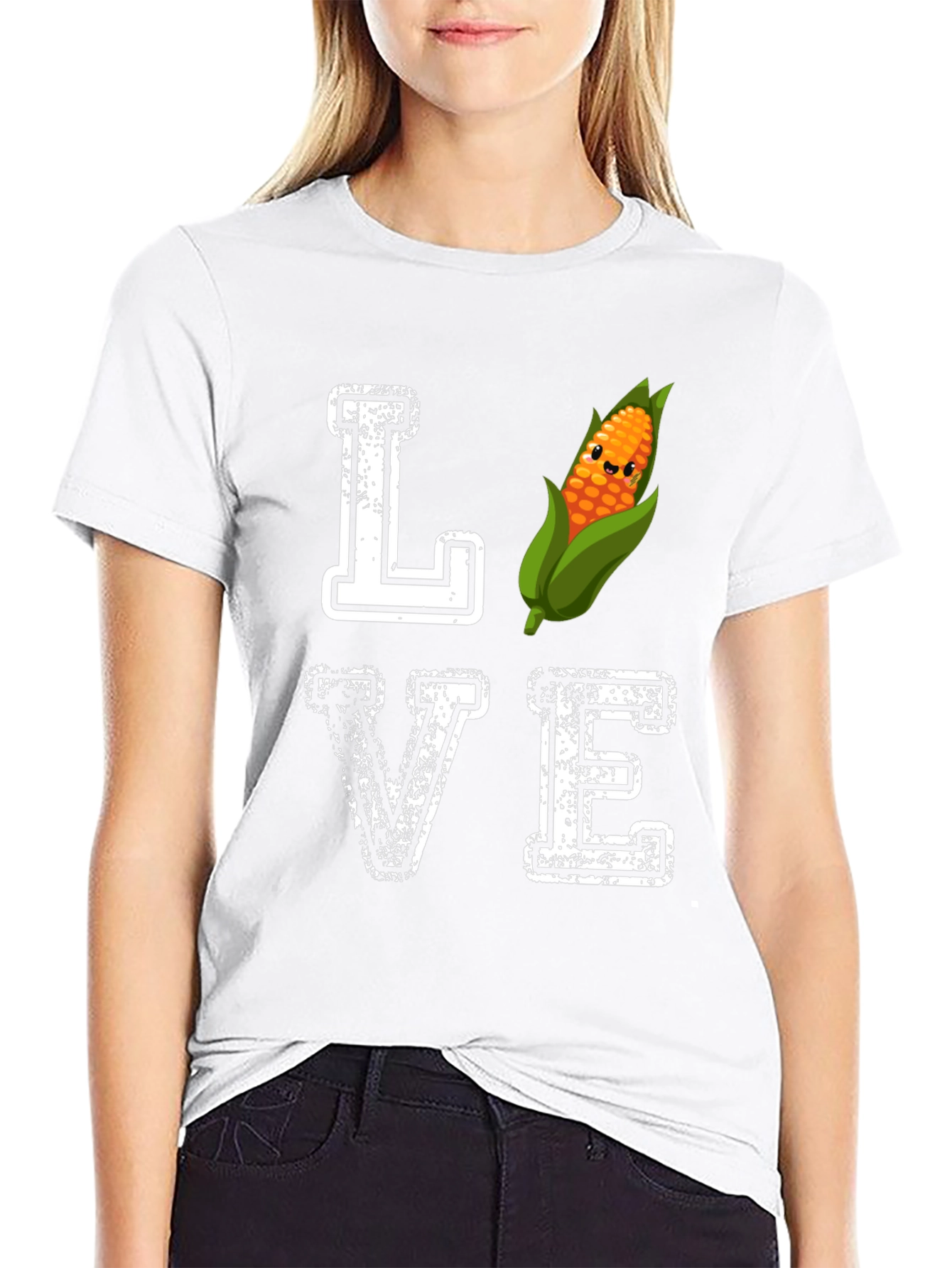 Muestra tu amor por el maíz con esta camiseta negra única. Presenta un diseño divertido que deletrea "AMOR", con una adorable caricatura de una mazorca de maíz reemplazando la "O". La impresión envejecida le da un toque vintage. Perfecta para los amantes del maíz, agricultores o cualquier persona con un gran sentido del humor. Úsala para eventos casuales, festivales de comida o simplemente para expresar tu personalidad amante de la comida. Confeccionada con un tejido cómodo y duradero, esta camiseta seguramente se convertirá en una de tus favoritas.