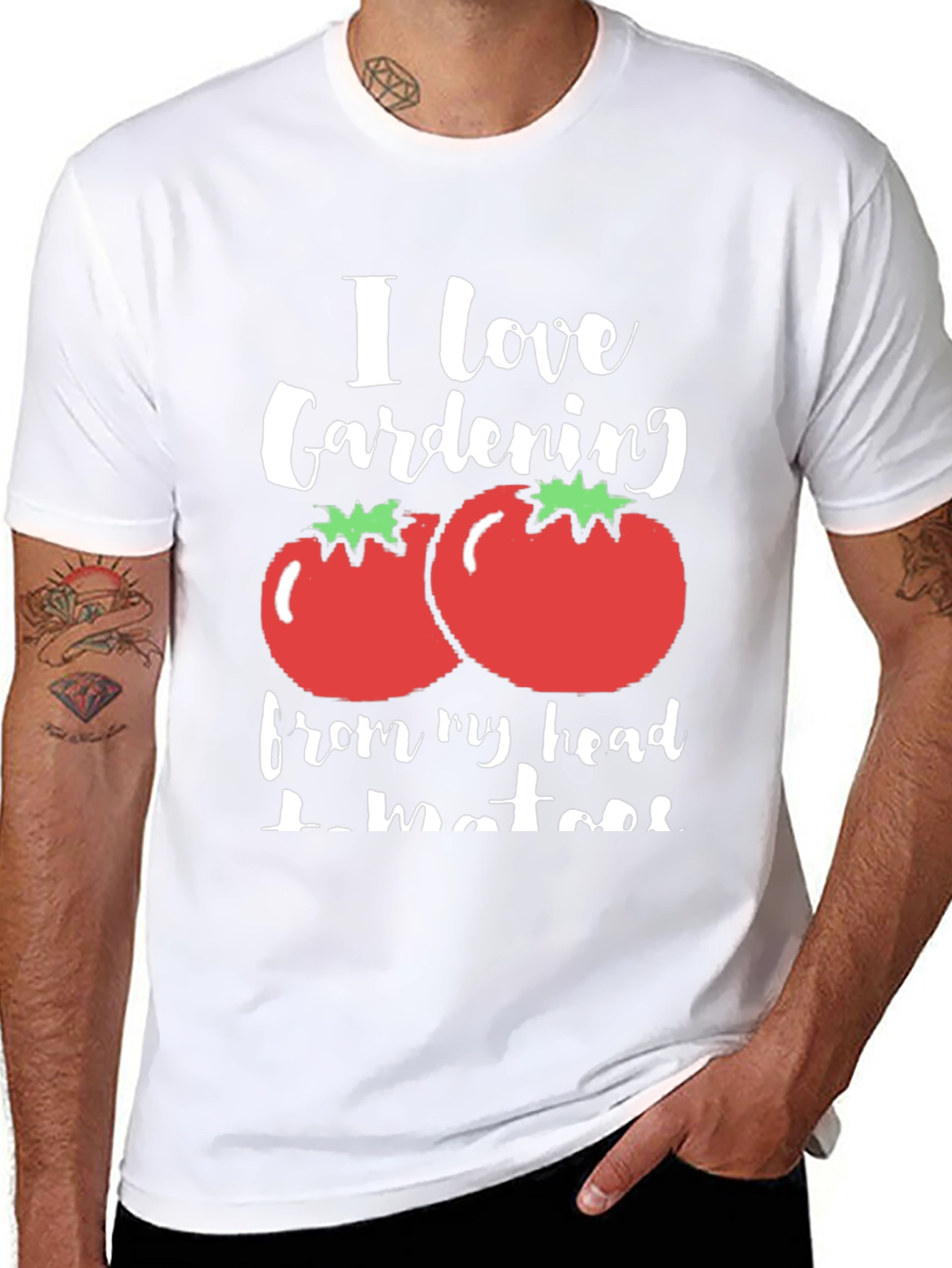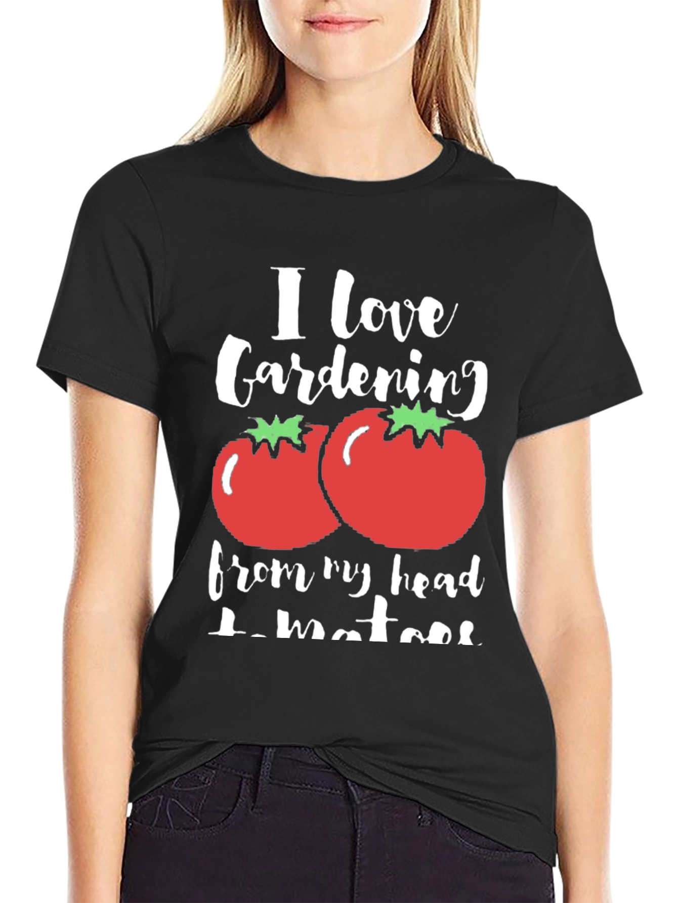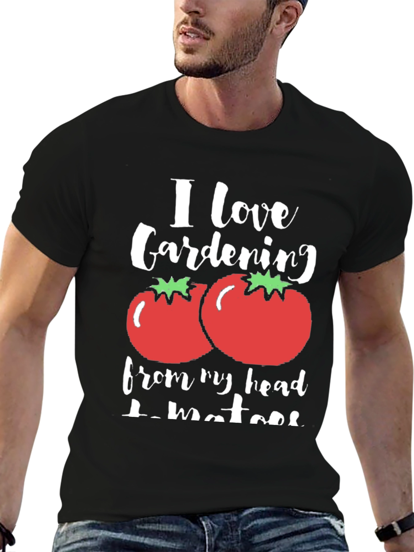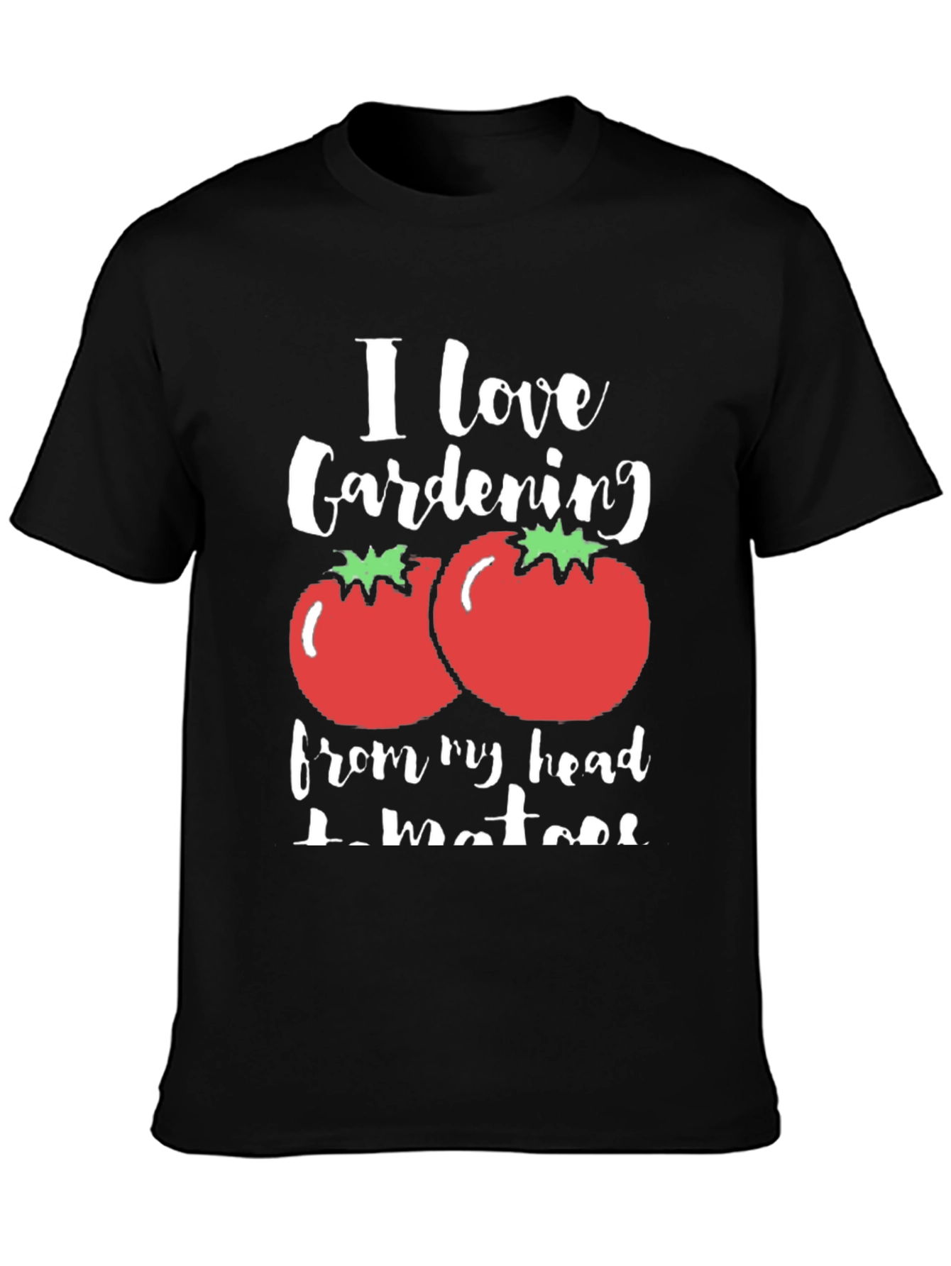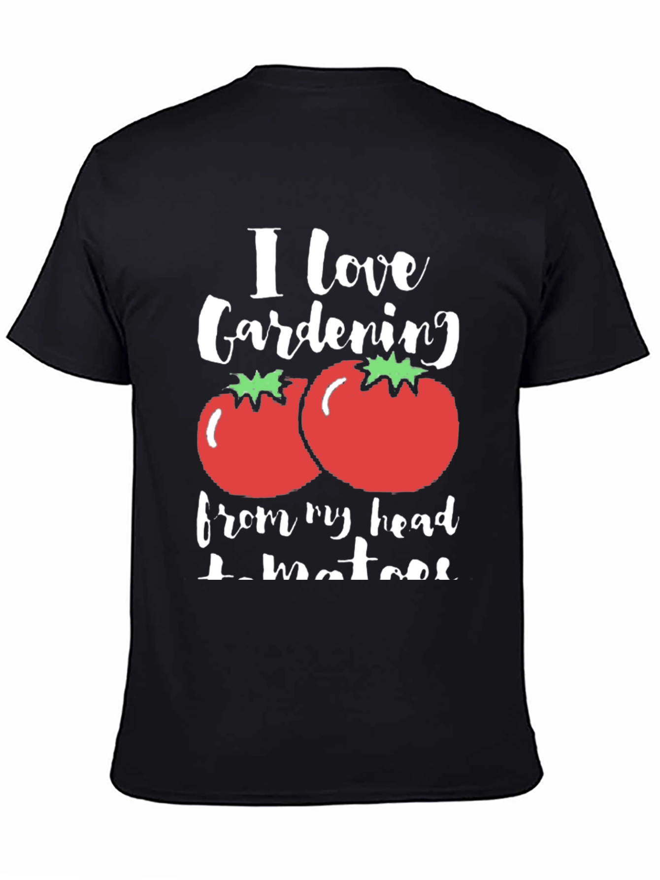 Esta camiseta negra presenta un diseño divertido y original para los amantes de la jardinería. Con la frase "I love Gardening from my head tomatoes", que juega con la palabra "tomatoes" (tomates) en lugar de "toes" (dedos de los pies), adornada con ilustraciones de tomates rojos con hojas verdes, esta camiseta es perfecta para expresar tu pasión por la jardinería con un toque de humor. Su tejido suave y cómodo la hace ideal para usar en cualquier ocasión, ya sea trabajando en el jardín, relajándote en casa o saliendo con amigos. Destaca tu amor por la naturaleza y la jardinería con esta prenda única y llamativa.