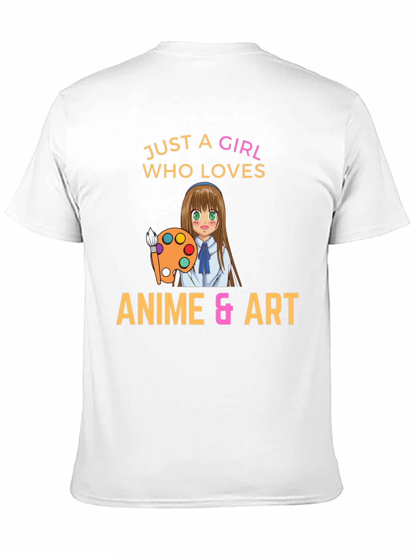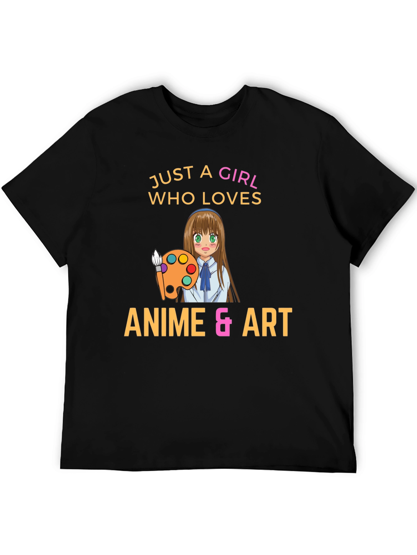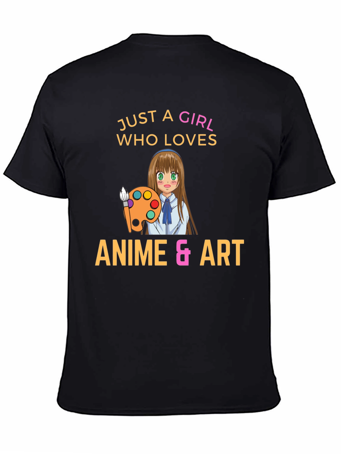 Luce tu pasión por el anime y el arte con esta llamativa camiseta negra. Presenta un diseño colorido con una ilustración de una chica anime sosteniendo una paleta de pintura, junto con el texto "Just a girl who loves Anime & Art". Ideal para expresar tu creatividad y amor por estas formas de expresión. Perfecta para llevar en convenciones, clases de arte, o simplemente para mostrar tu estilo único en el día a día. Fabricada con materiales suaves y cómodos, esta camiseta es una declaración de estilo que te hará destacar. ¡Adquiere la tuya y lleva tu pasión contigo!