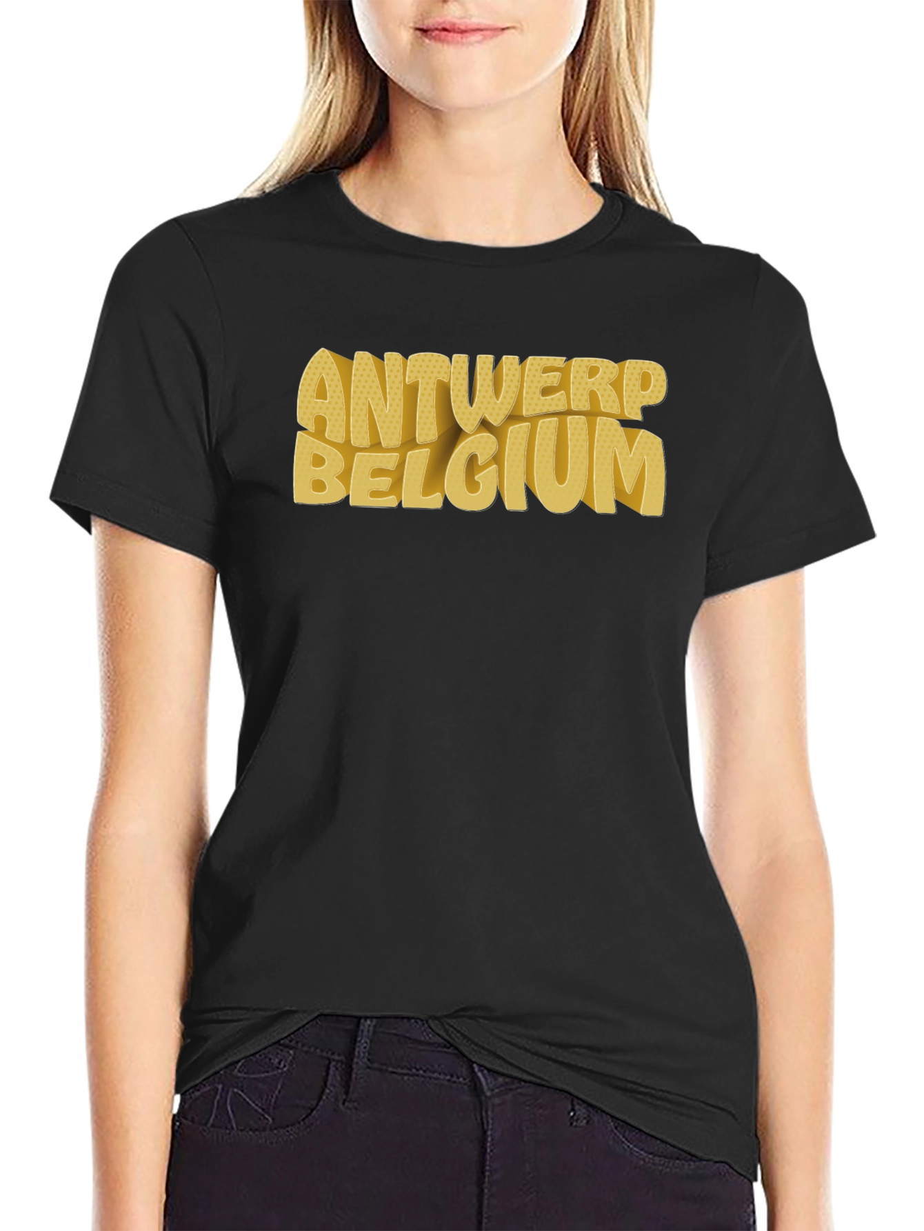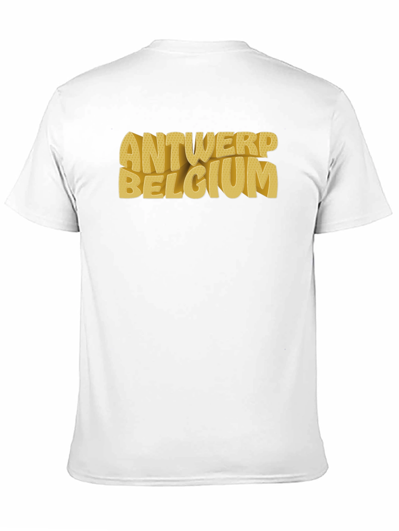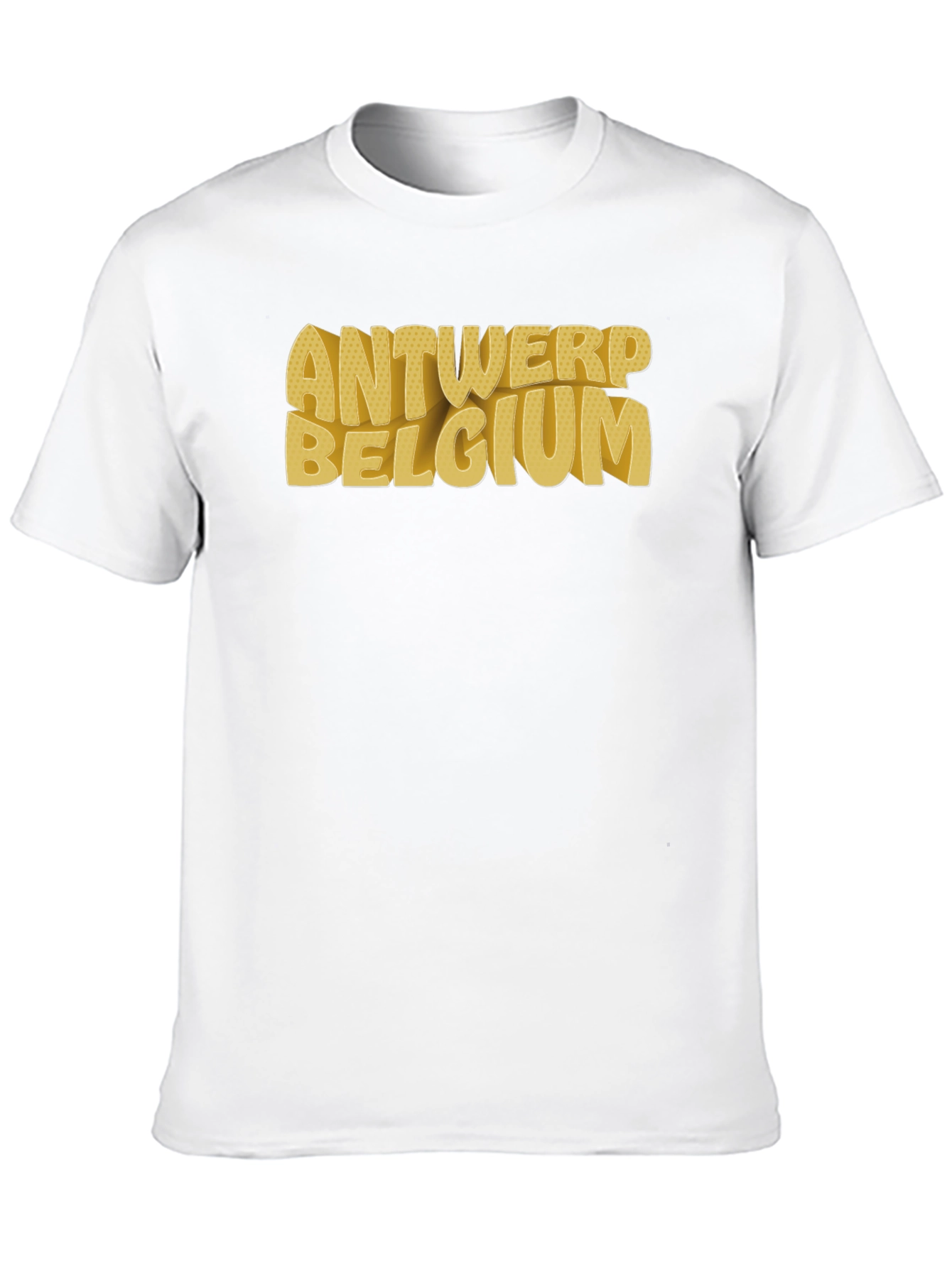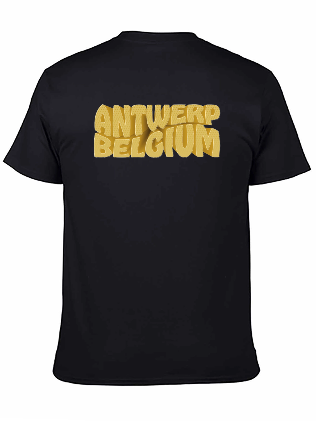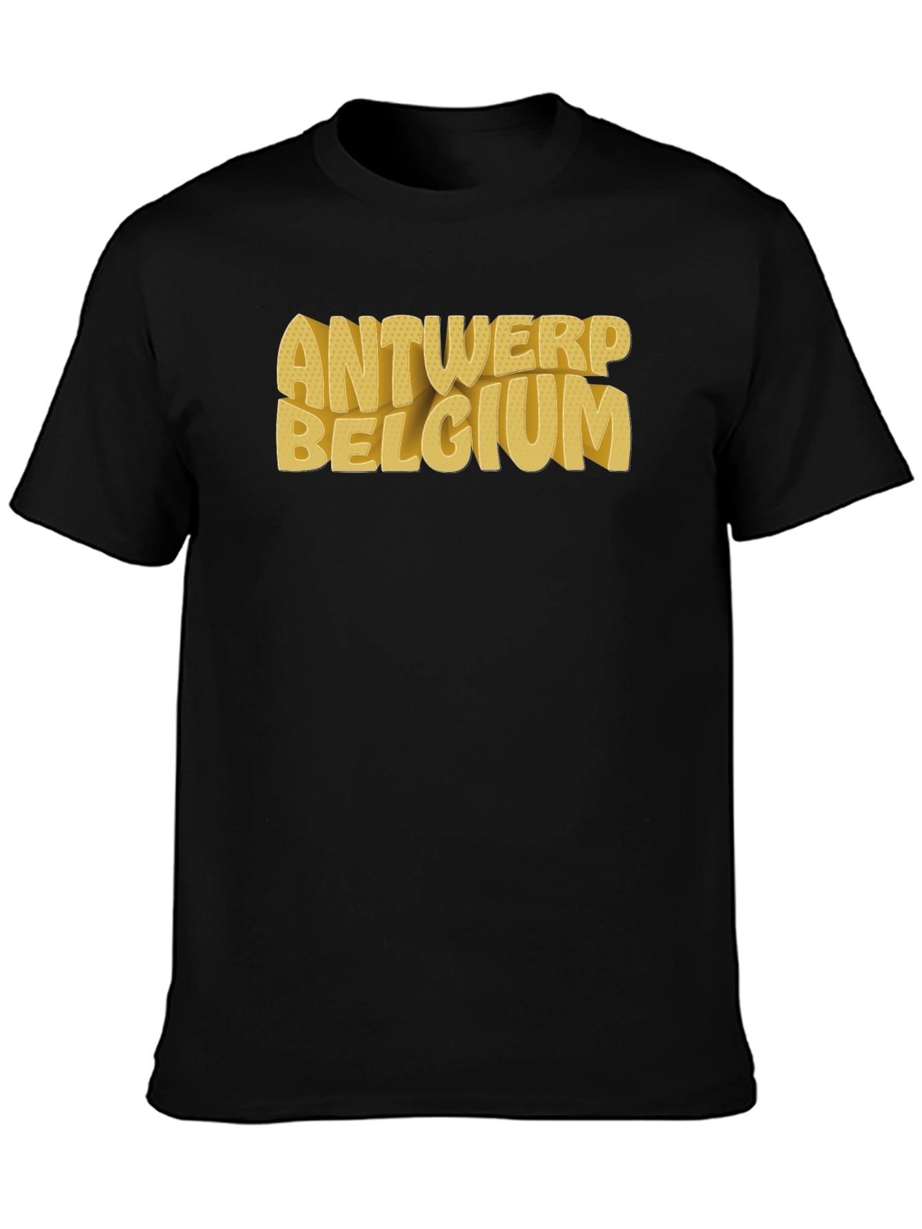Luce con estilo con esta camiseta negra de manga corta para hombre. Presenta un diseño llamativo con la inscripción "Antwerp Belgium" en letras doradas con efecto 3D, perfecto para destacar tu estilo urbano. Fabricada con materiales suaves y cómodos, ideal para uso diario. Combina esta camiseta con tus jeans o pantalones favoritos para un look casual y moderno. Perfecta para expresar tu amor por esta ciudad o simplemente añadir un toque único a tu guardarropa. Una prenda imprescindible para cualquier hombre con estilo.