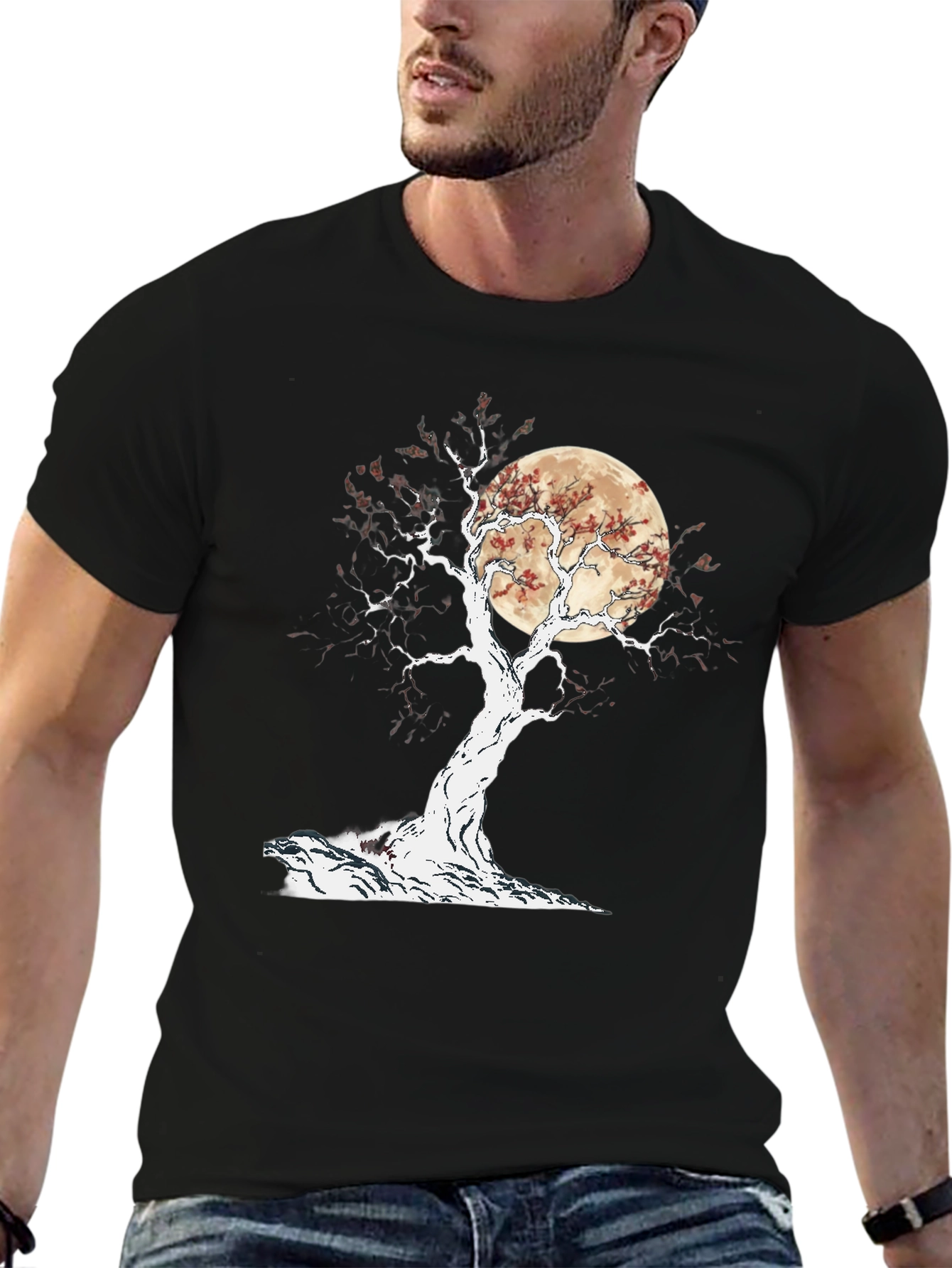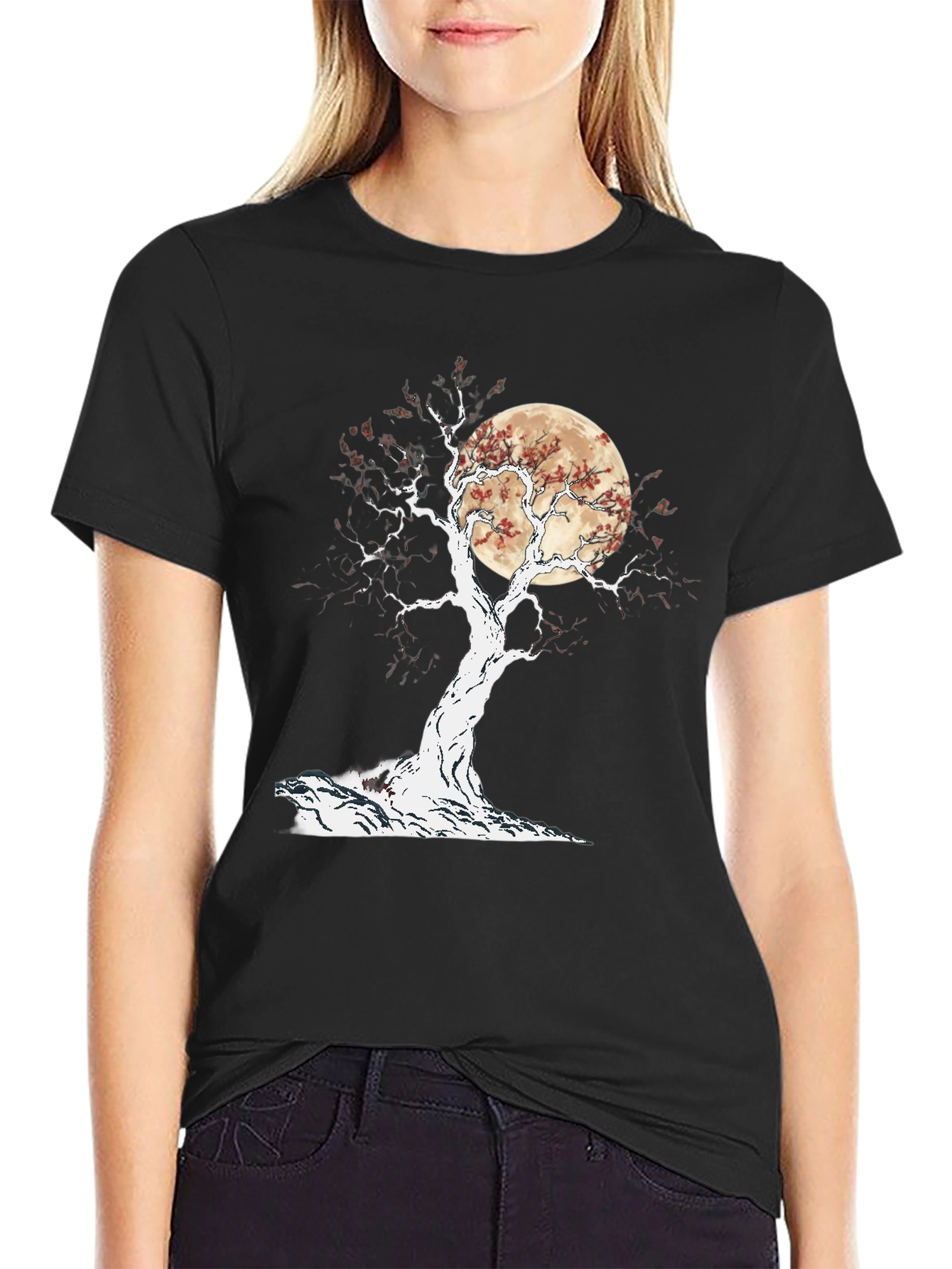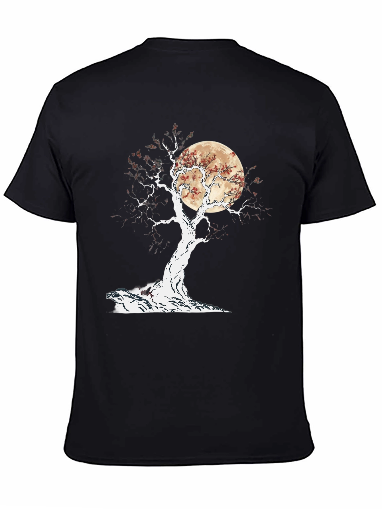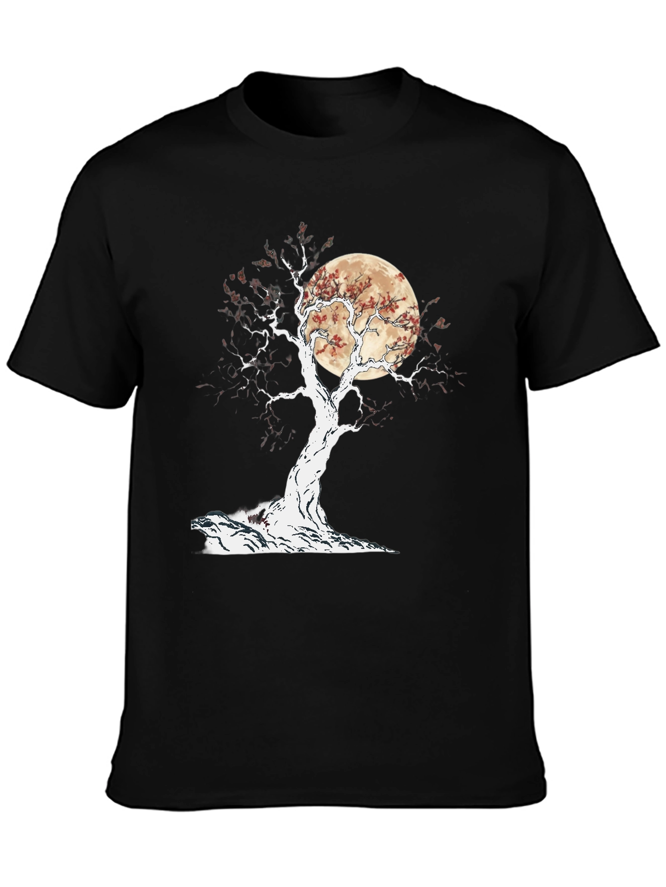 Luce esta elegante camiseta negra de algodón con un diseño artístico. Presenta la ilustración de un árbol blanco estilizado con una luna llena de fondo, creando un contraste visual impactante. Las delicadas flores en tonos rojizos adornan las ramas, añadiendo un toque de color y sofisticación. Ideal para un look casual pero con estilo, perfecta para expresar tu individualidad y amor por la naturaleza. Combina fácilmente con jeans o pantalones casuales. Una prenda cómoda y original para tu guardarropa.