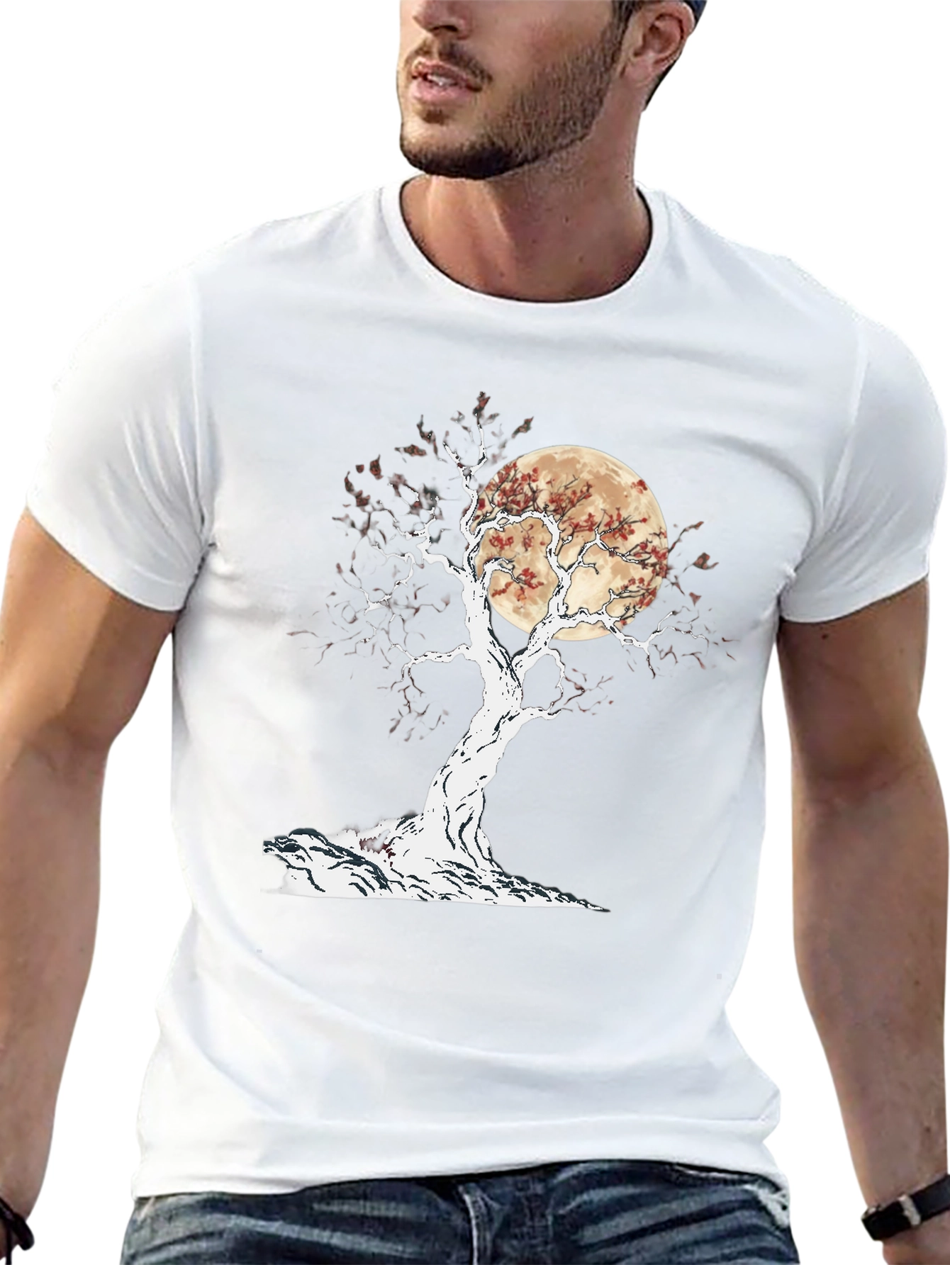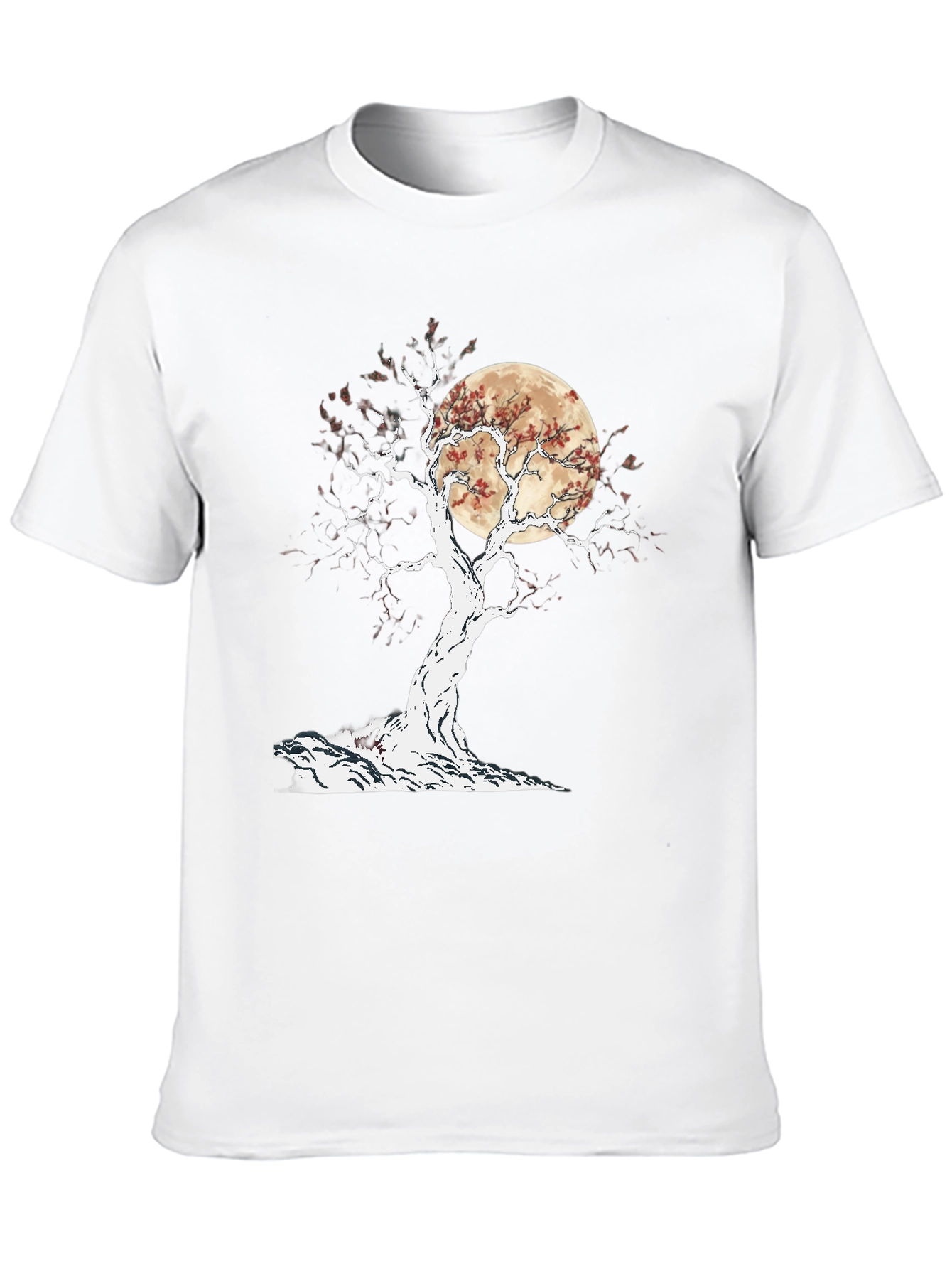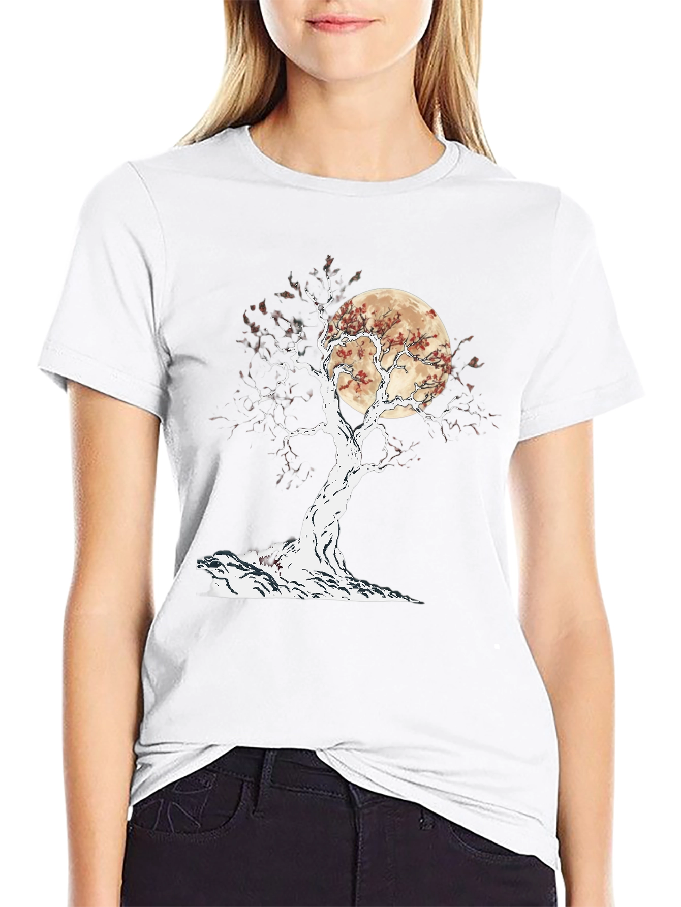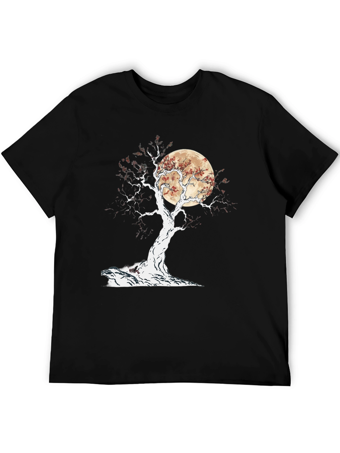 Luce esta elegante camiseta negra de algodón con un diseño artístico. Presenta la ilustración de un árbol blanco estilizado con una luna llena de fondo, creando un contraste visual impactante. Las delicadas flores en tonos rojizos adornan las ramas, añadiendo un toque de color y sofisticación. Ideal para un look casual pero con estilo, perfecta para expresar tu individualidad y amor por la naturaleza. Combina fácilmente con jeans o pantalones casuales. Una prenda cómoda y original para tu guardarropa.