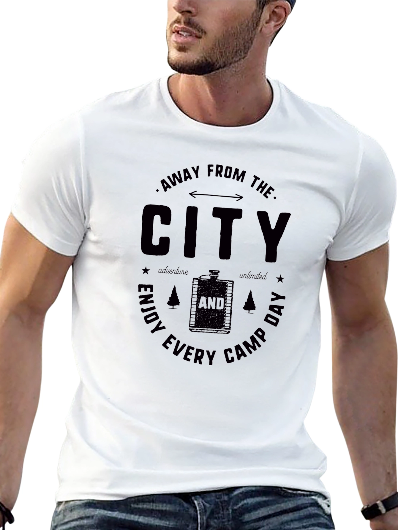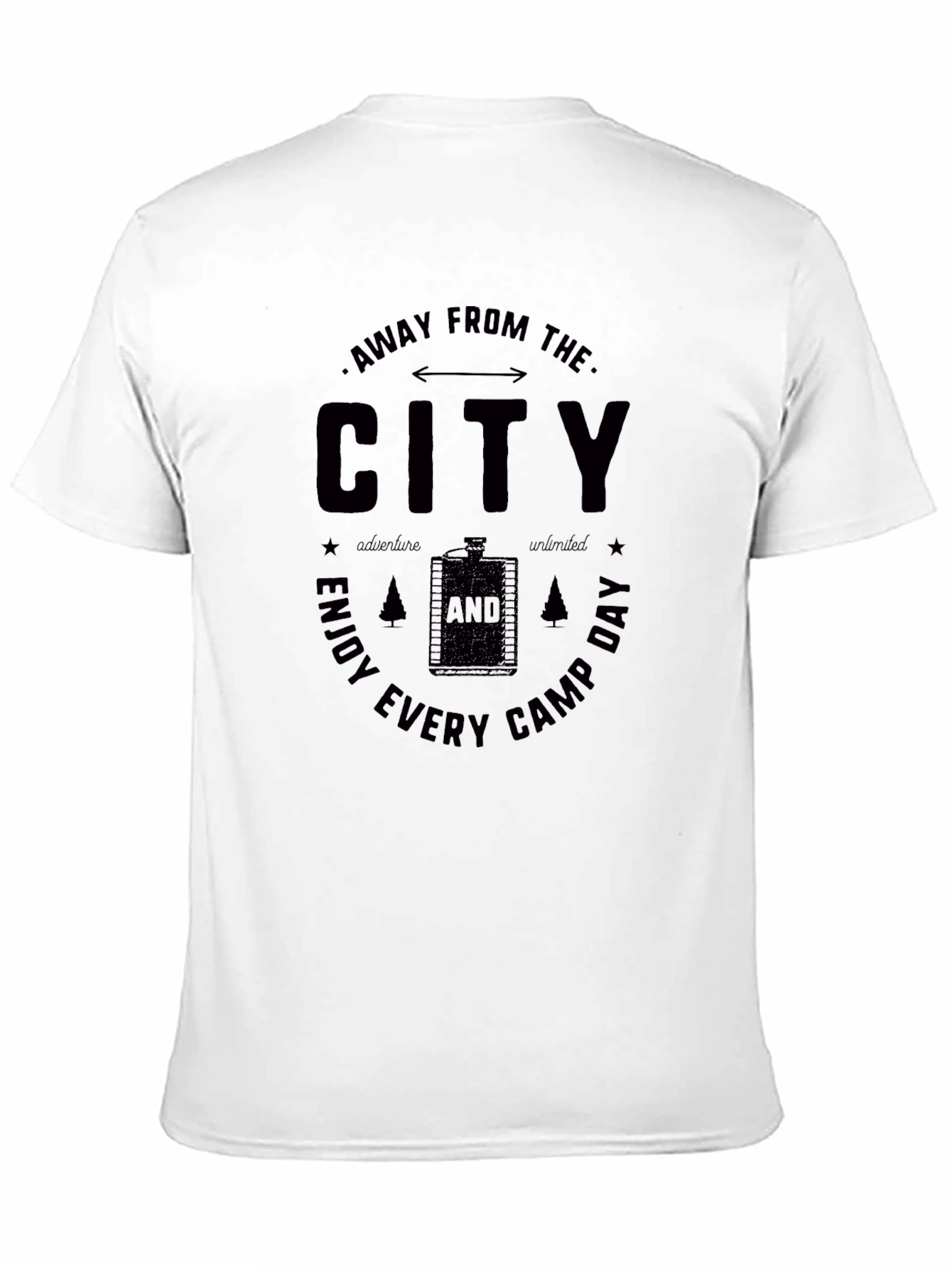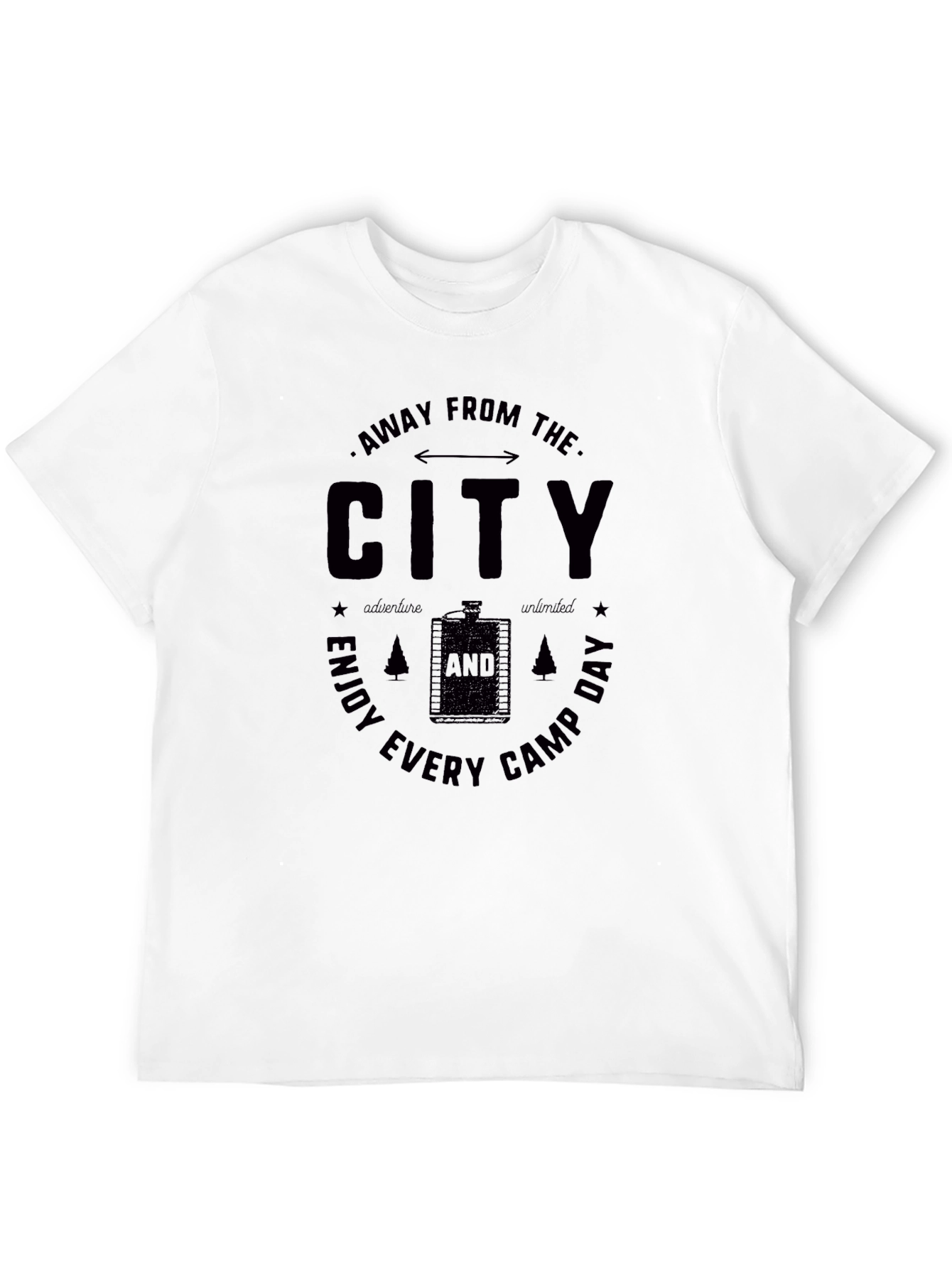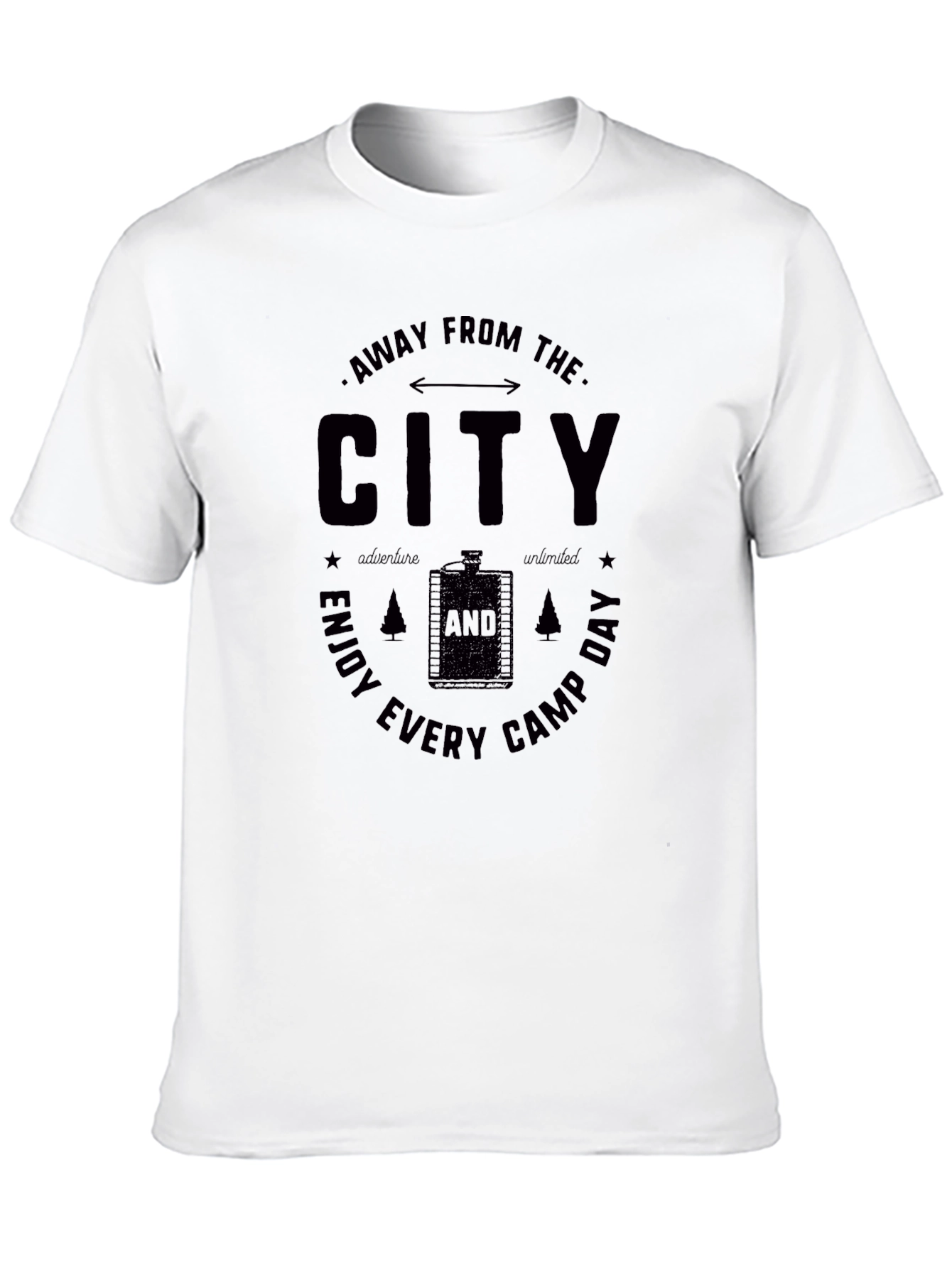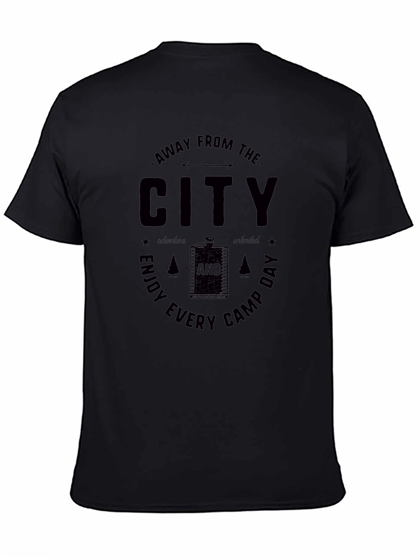 Disfruta de la naturaleza con esta elegante camiseta negra de algodón. Su diseño único presenta un gráfico temático con la leyenda "Away From The City", ideal para los amantes de la aventura y el camping. Perfecta para usar en tus escapadas al aire libre o para un look casual con un toque de espíritu libre. Su corte clásico asegura comodidad y estilo. Combina esta prenda con tus jeans o pantalones favoritos y prepárate para disfrutar de cada día de campamento con estilo y confort.
