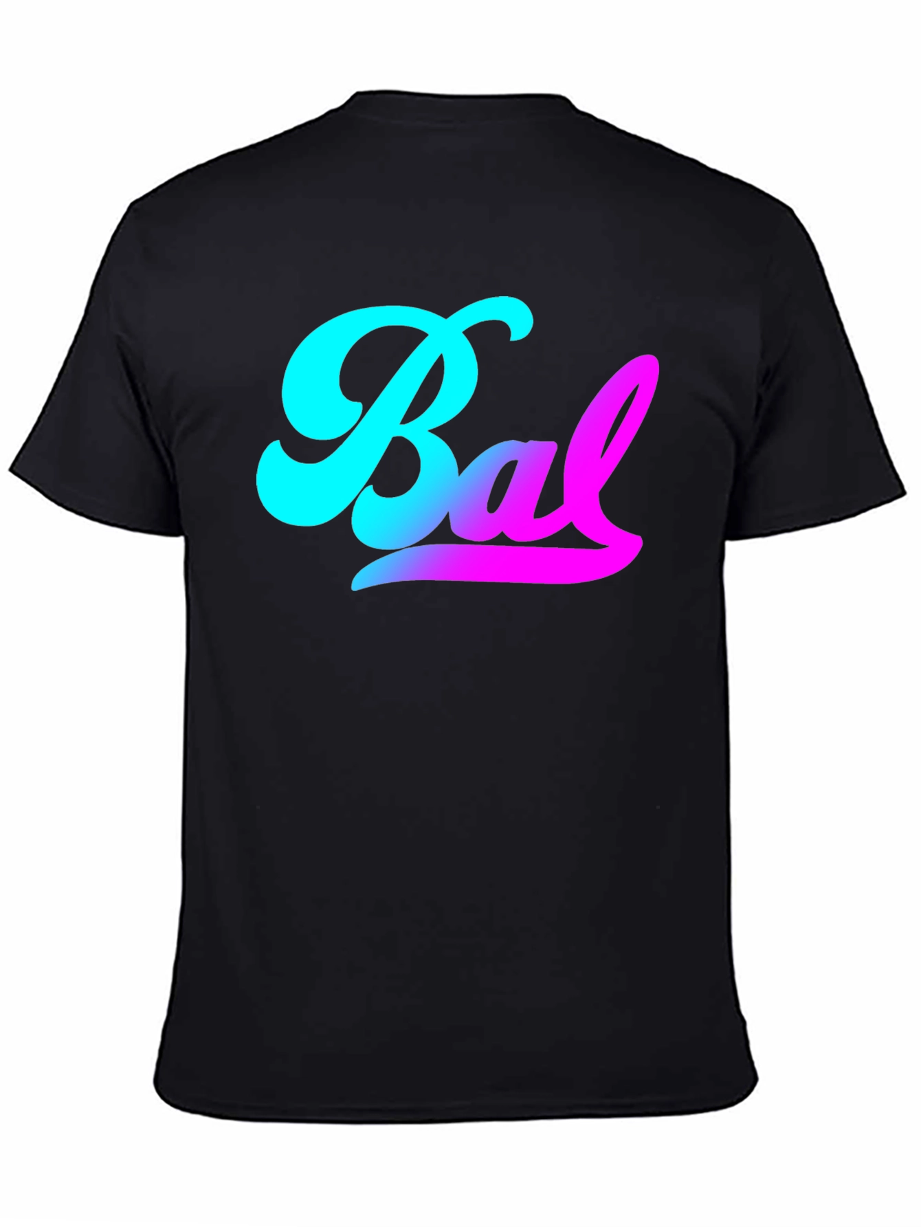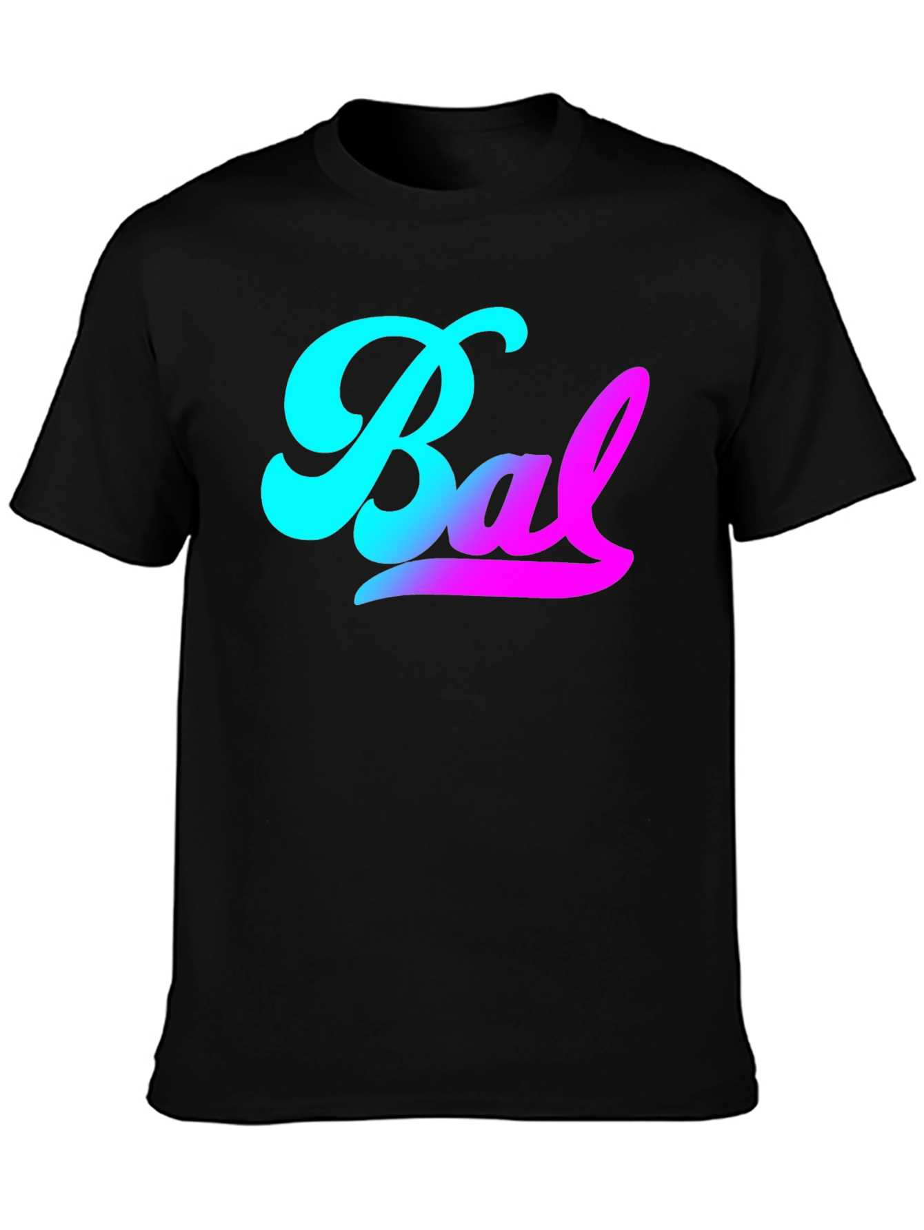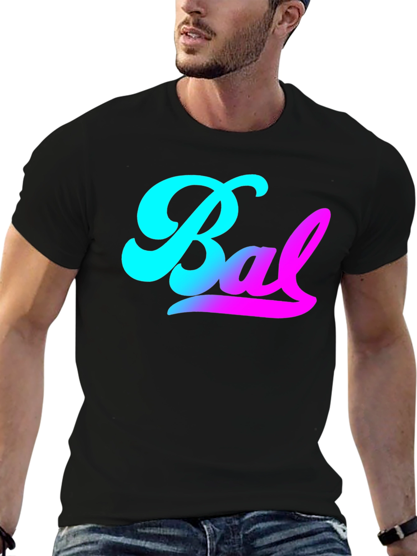 Luce esta moderna camiseta negra con un llamativo diseño 'Bal' en degradado de turquesa a rosa. Confeccionada en un tejido suave y cómodo, esta camiseta de manga corta es ideal para un look casual y a la moda. Perfecta para combinar con jeans, pantalones cortos o faldas, esta prenda te permitirá destacar con estilo en cualquier ocasión. Su diseño único y vibrante la convierte en una excelente opción para expresar tu personalidad y agregar un toque de color a tu guardarropa. ¡Atrévete a lucir diferente y marca tendencia con esta original camiseta!