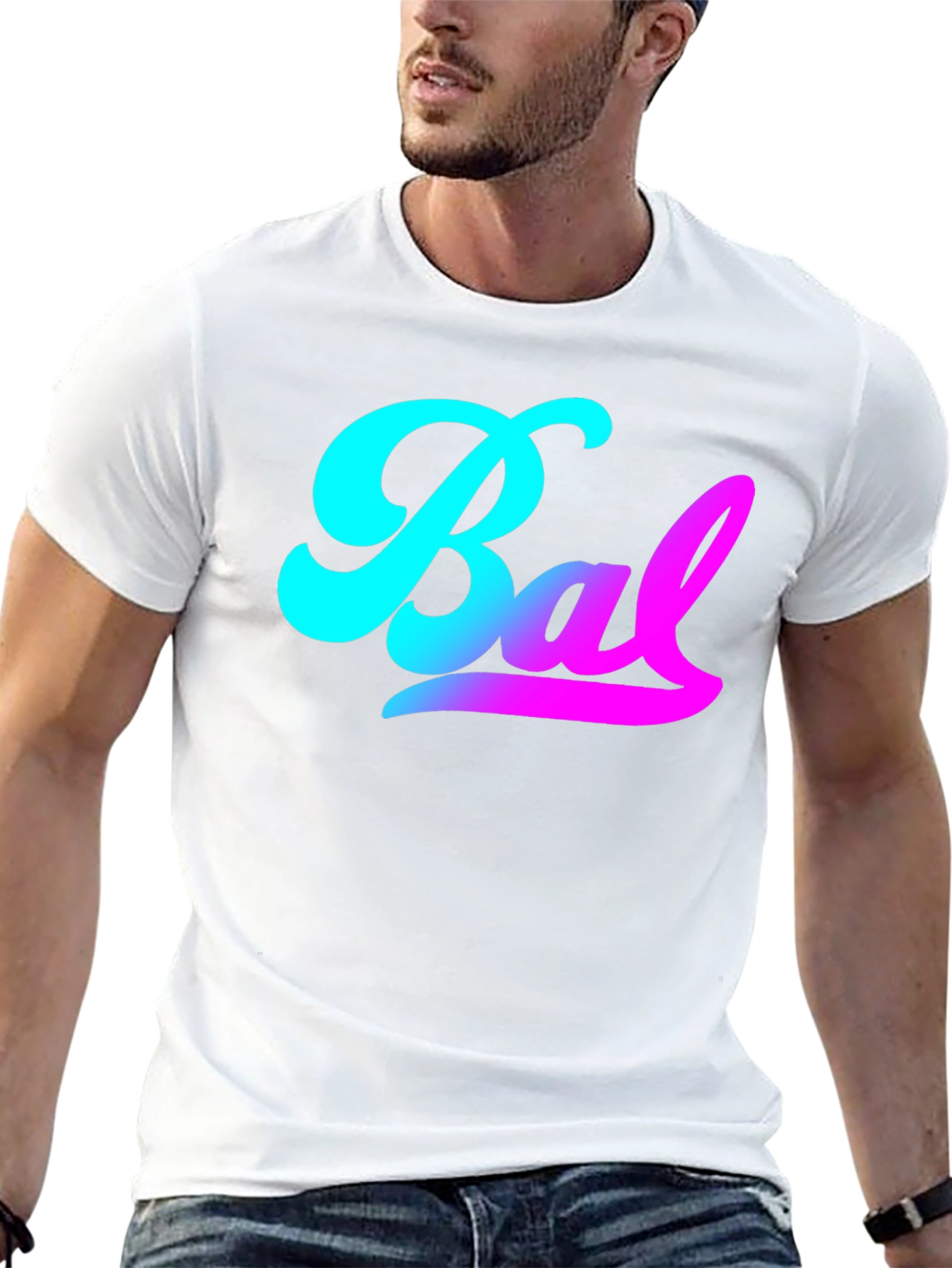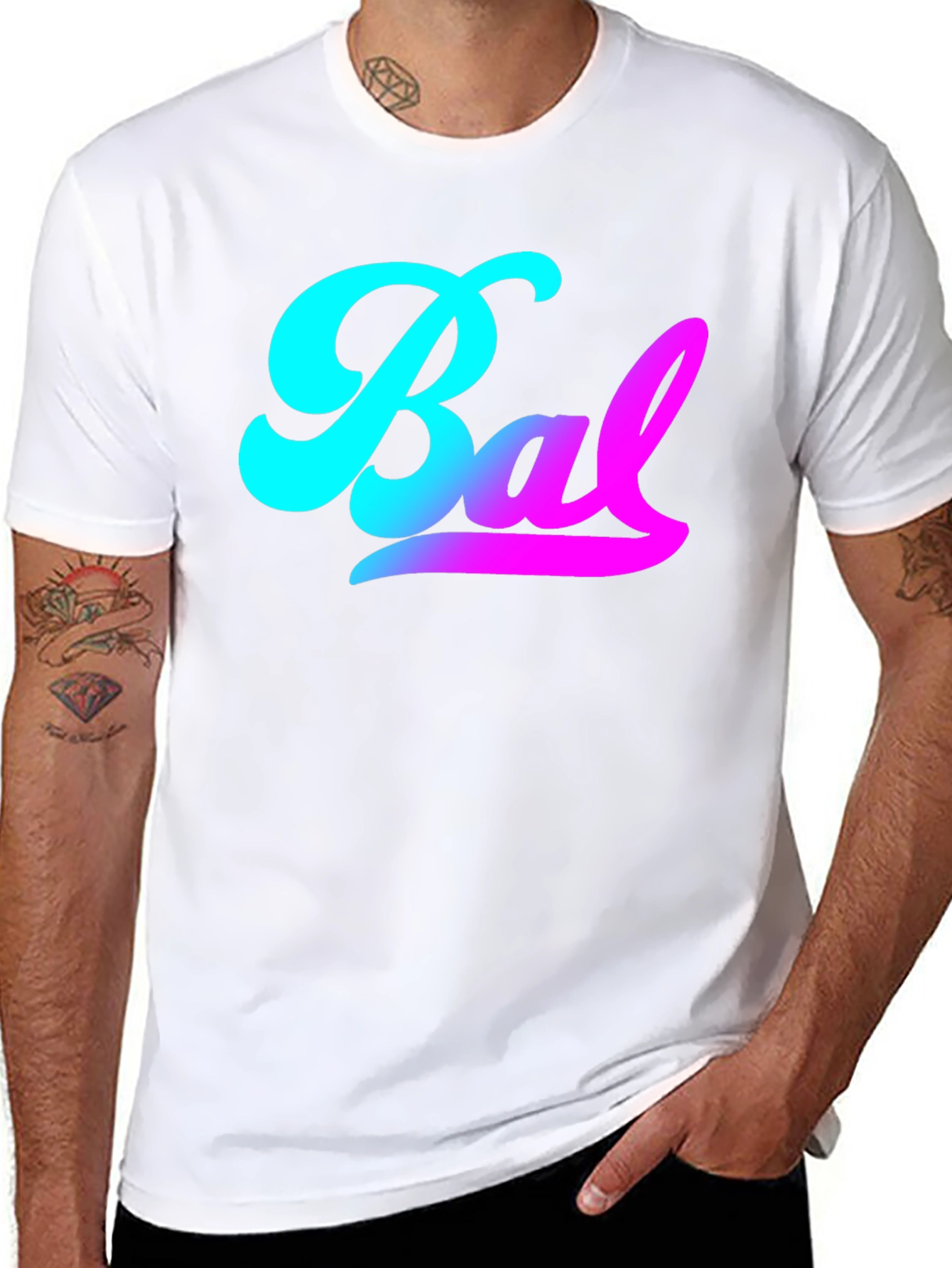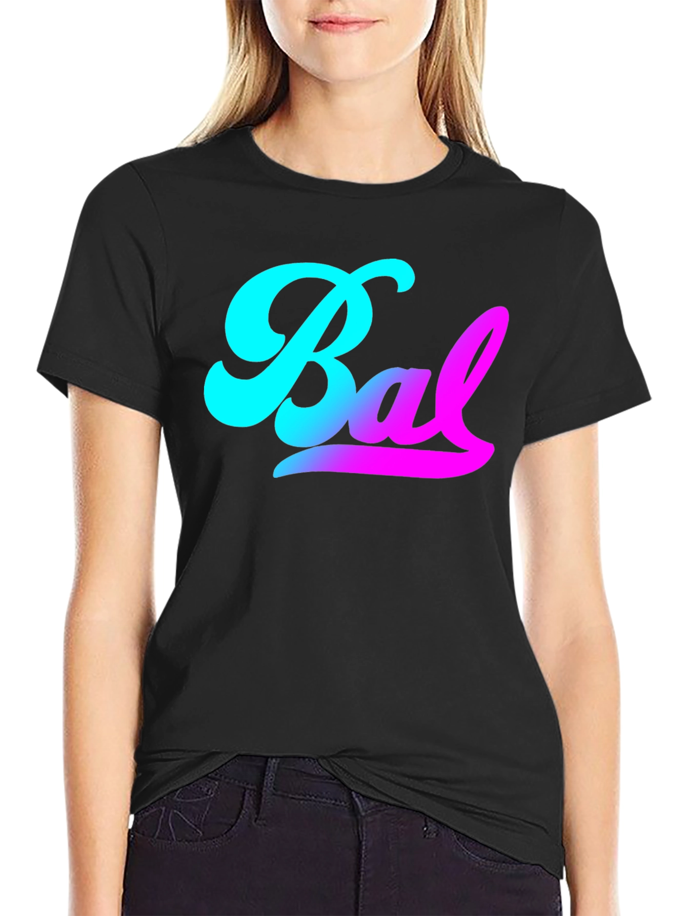 Luce esta moderna camiseta negra con un llamativo diseño 'Bal' en degradado de turquesa a rosa. Confeccionada en un tejido suave y cómodo, esta camiseta de manga corta es ideal para un look casual y a la moda. Perfecta para combinar con jeans, pantalones cortos o faldas, esta prenda te permitirá destacar con estilo en cualquier ocasión. Su diseño único y vibrante la convierte en una excelente opción para expresar tu personalidad y agregar un toque de color a tu guardarropa. ¡Atrévete a lucir diferente y marca tendencia con esta original camiseta!