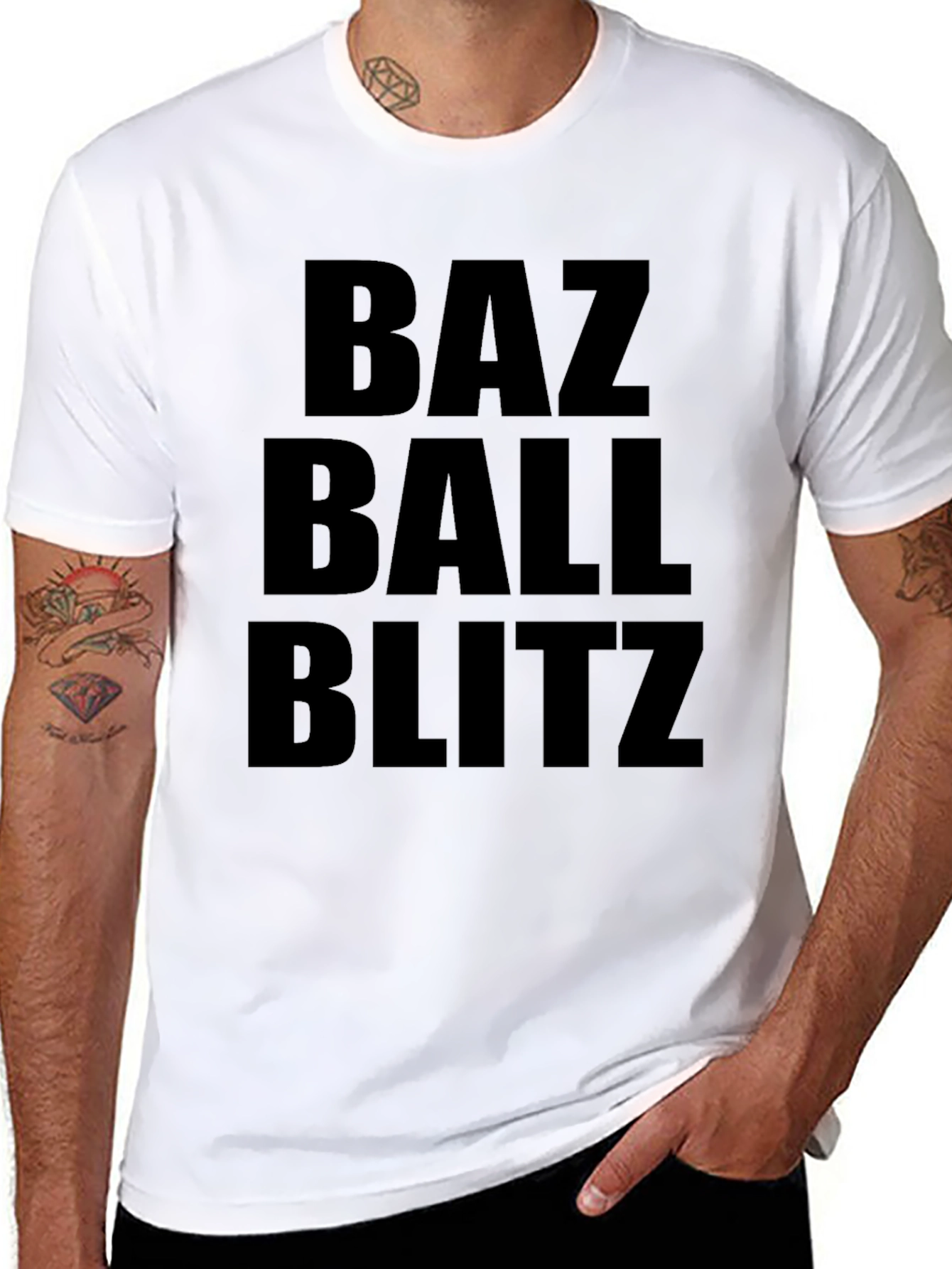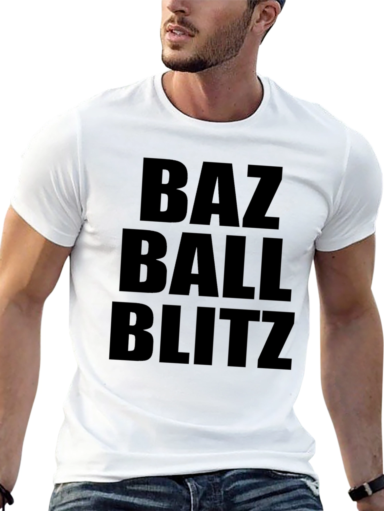 Luce un estilo audaz con esta camiseta negra para hombre. Presenta un diseño llamativo con las palabras 'Baz Ball Blitz' impresas en letras grandes y en negrita en la parte delantera. Fabricada con un tejido suave y cómodo, esta camiseta es perfecta para usar a diario. Su corte clásico la hace ideal para combinar con jeans, pantalones cortos o cualquier atuendo casual. Muestra tu actitud con esta prenda única y moderna. Ideal para los amantes del deporte y aquellos que buscan expresar su individualidad. ¡Añade un toque de estilo a tu guardarropa con esta camiseta imprescindible!