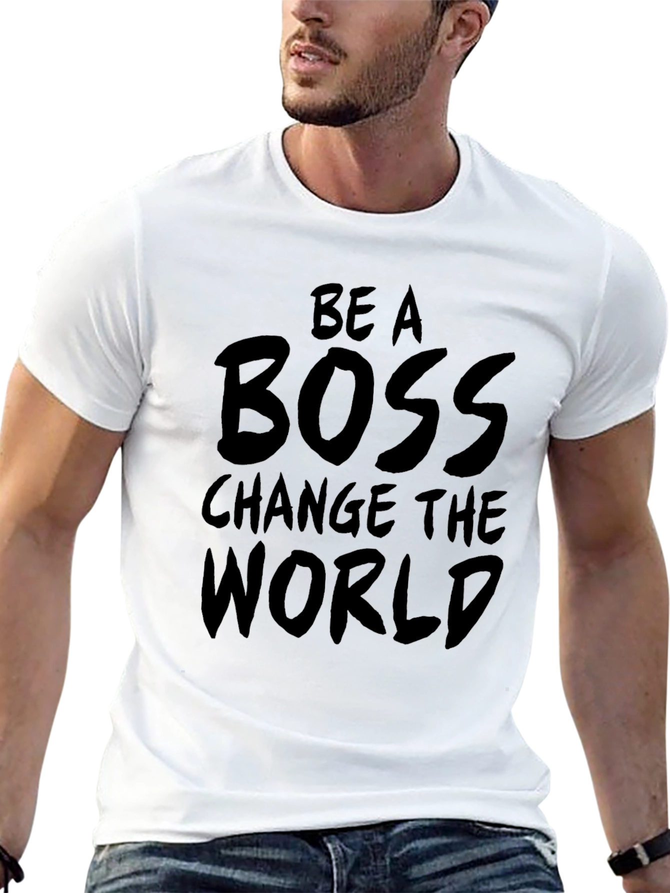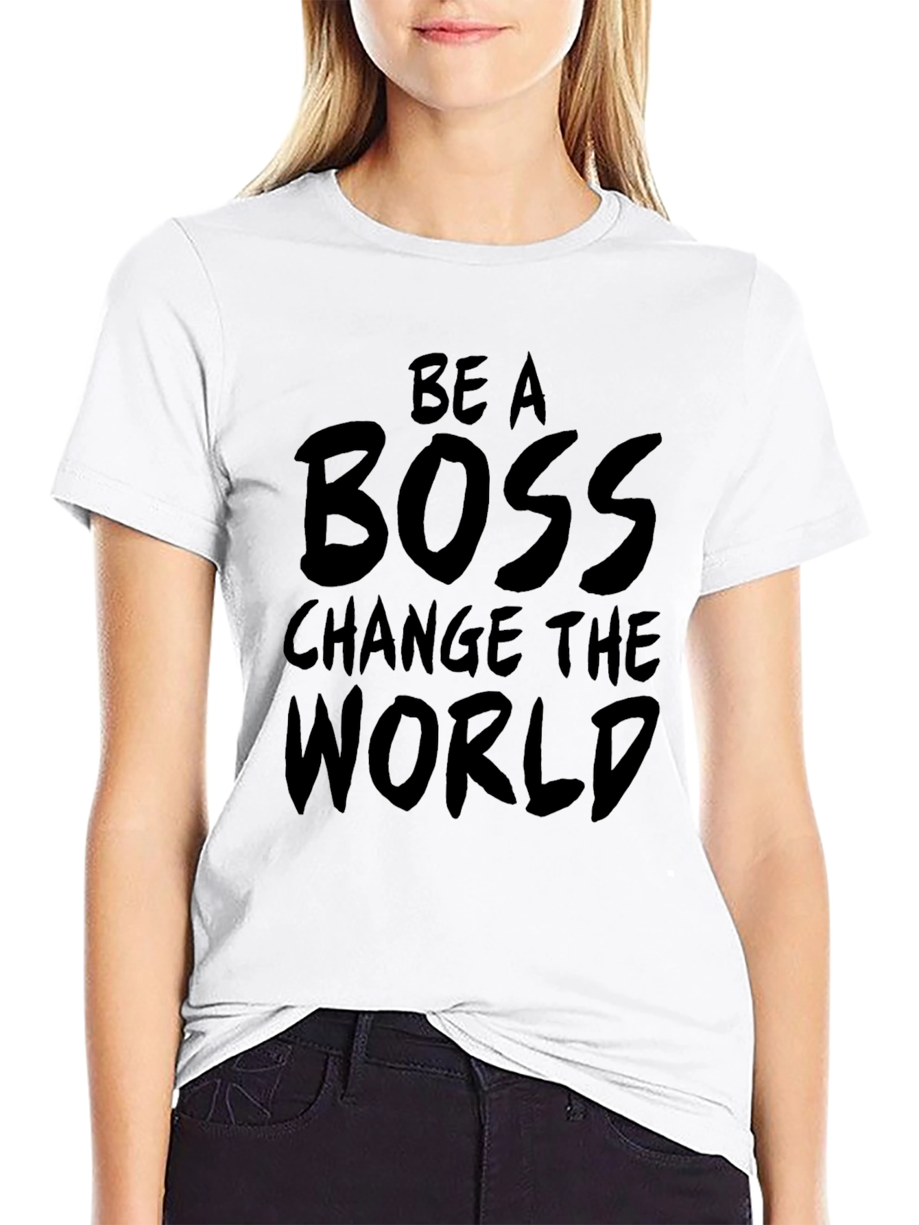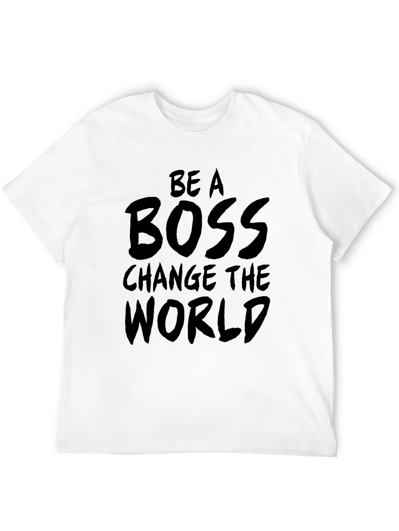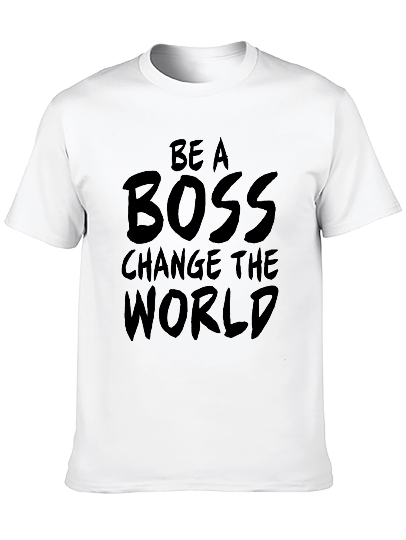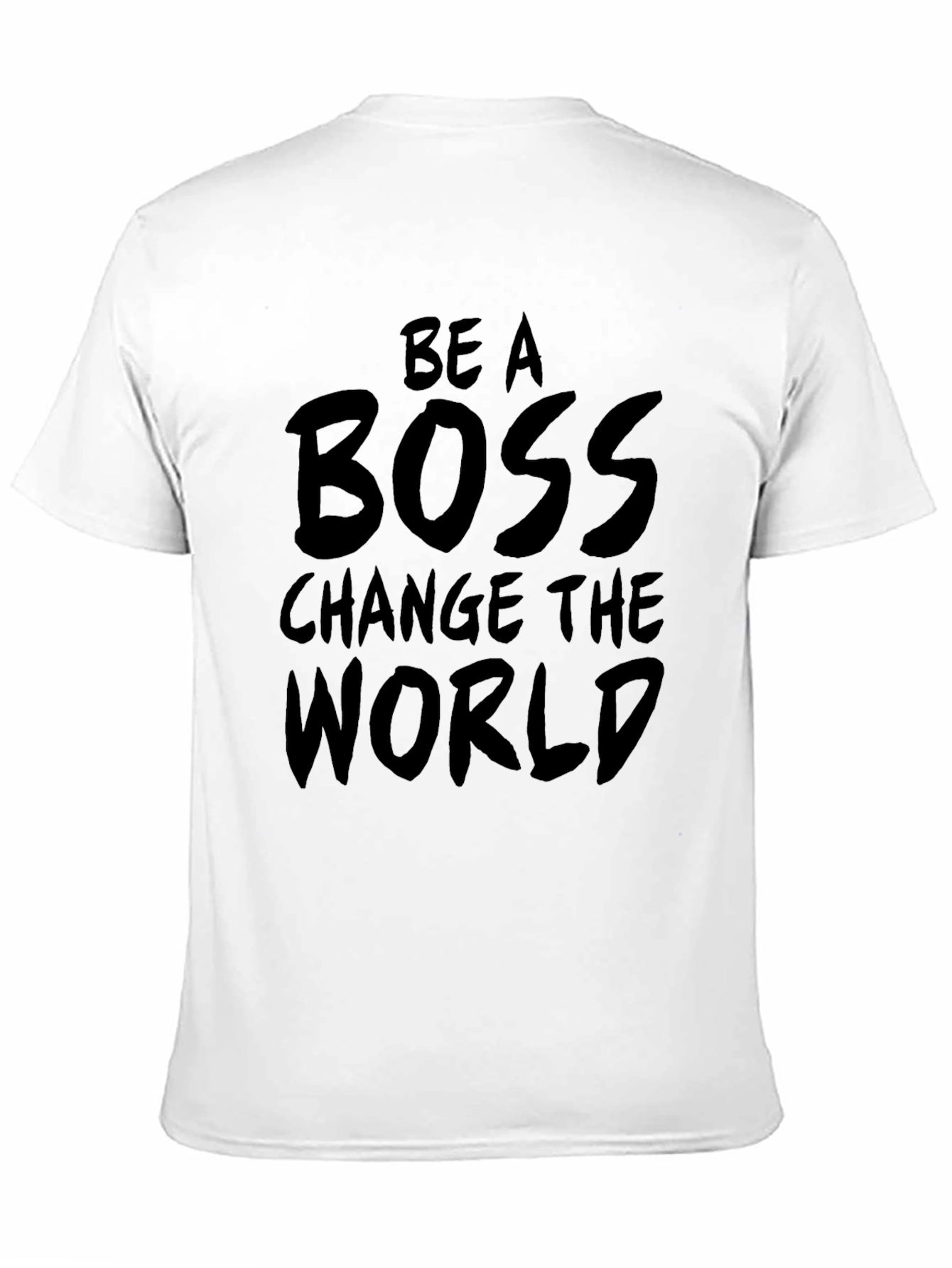 Muestra tu espíritu emprendedor con esta camiseta negra de manga corta. Fabricada en un tejido suave y cómodo, presenta un llamativo mensaje impreso en la parte delantera: 'Be A Boss Change The World'. Su diseño simple pero impactante la convierte en la prenda perfecta para expresar tu ambición y motivación. Ideal para usar en el gimnasio, en reuniones informales o simplemente para mostrar tu actitud positiva en el día a día. Combínala con jeans, pantalones deportivos o cualquier otra prenda casual para un look relajado pero con estilo. ¡Inspira a otros a alcanzar sus metas con esta camiseta única!