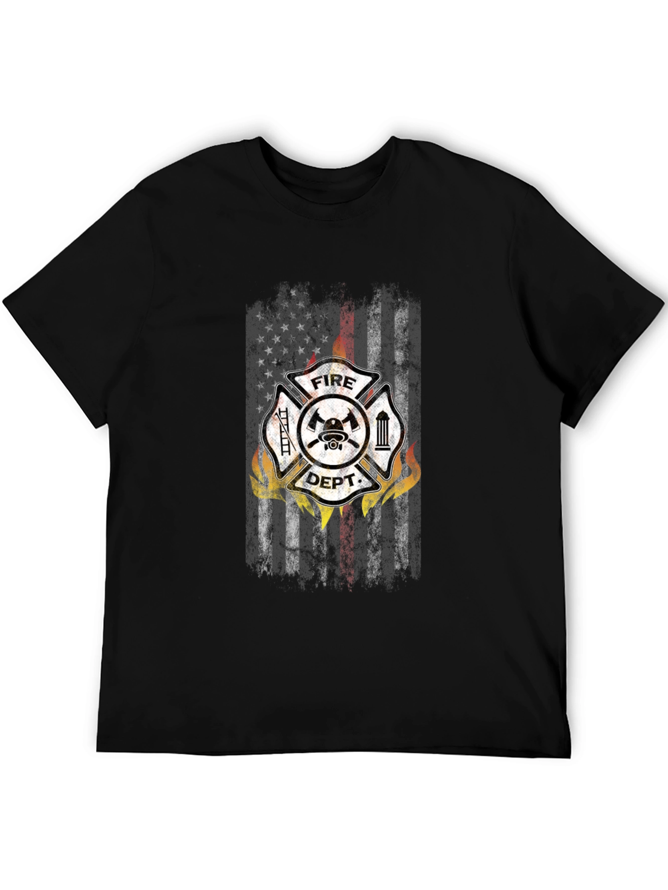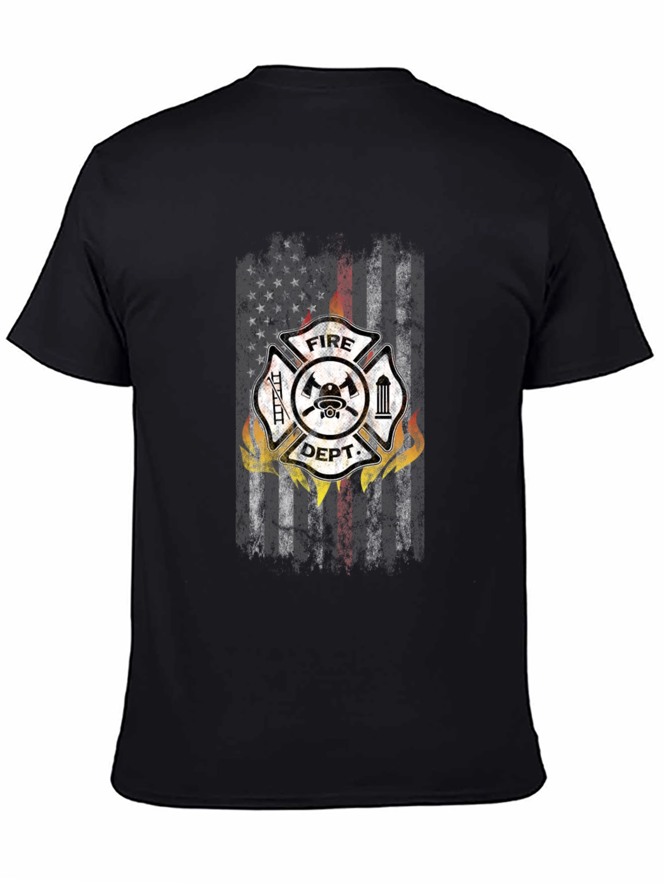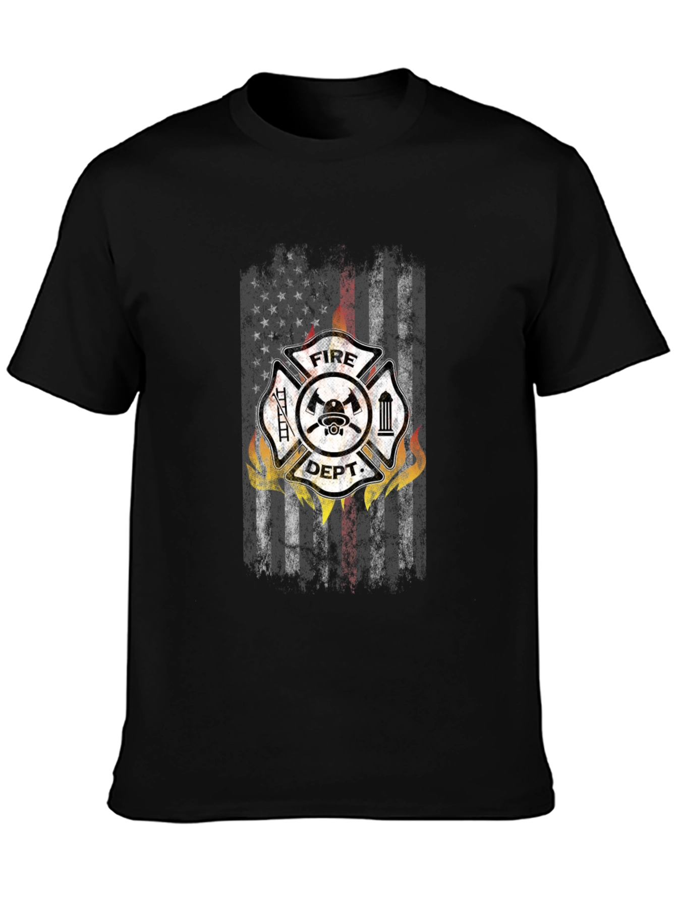 Muestra tu apoyo con esta camiseta negra de alta calidad. Presenta un diseño audaz con la bandera de Estados Unidos y el emblema de los bomberos en llamas. Ideal para bomberos, entusiastas y patriotas. Perfecta para uso diario, eventos especiales o como un regalo significativo. Su tejido suave y cómodo asegura un ajuste perfecto. ¡Lleva con orgullo este símbolo de valentía y servicio!