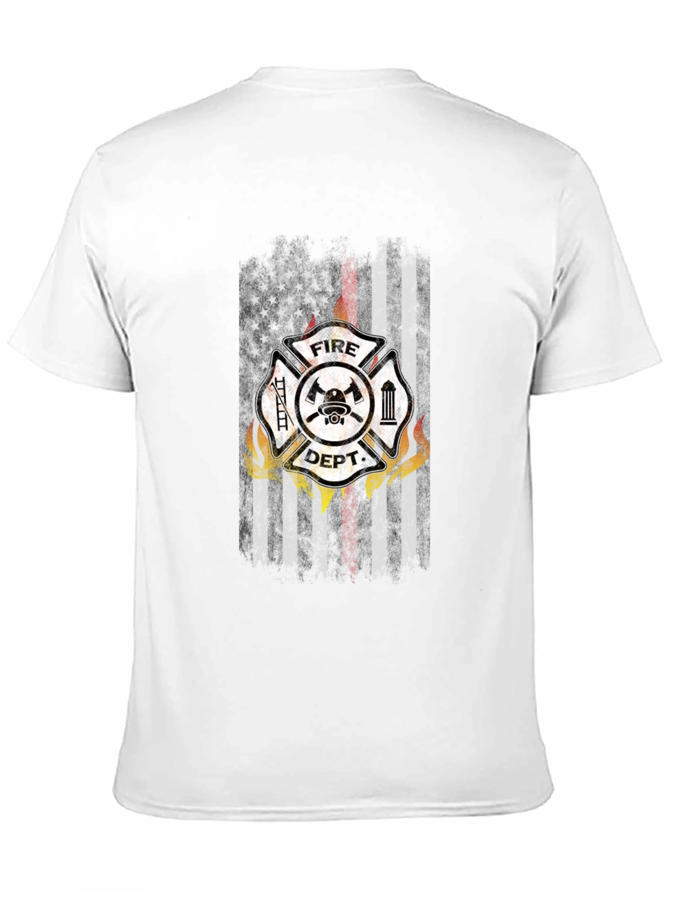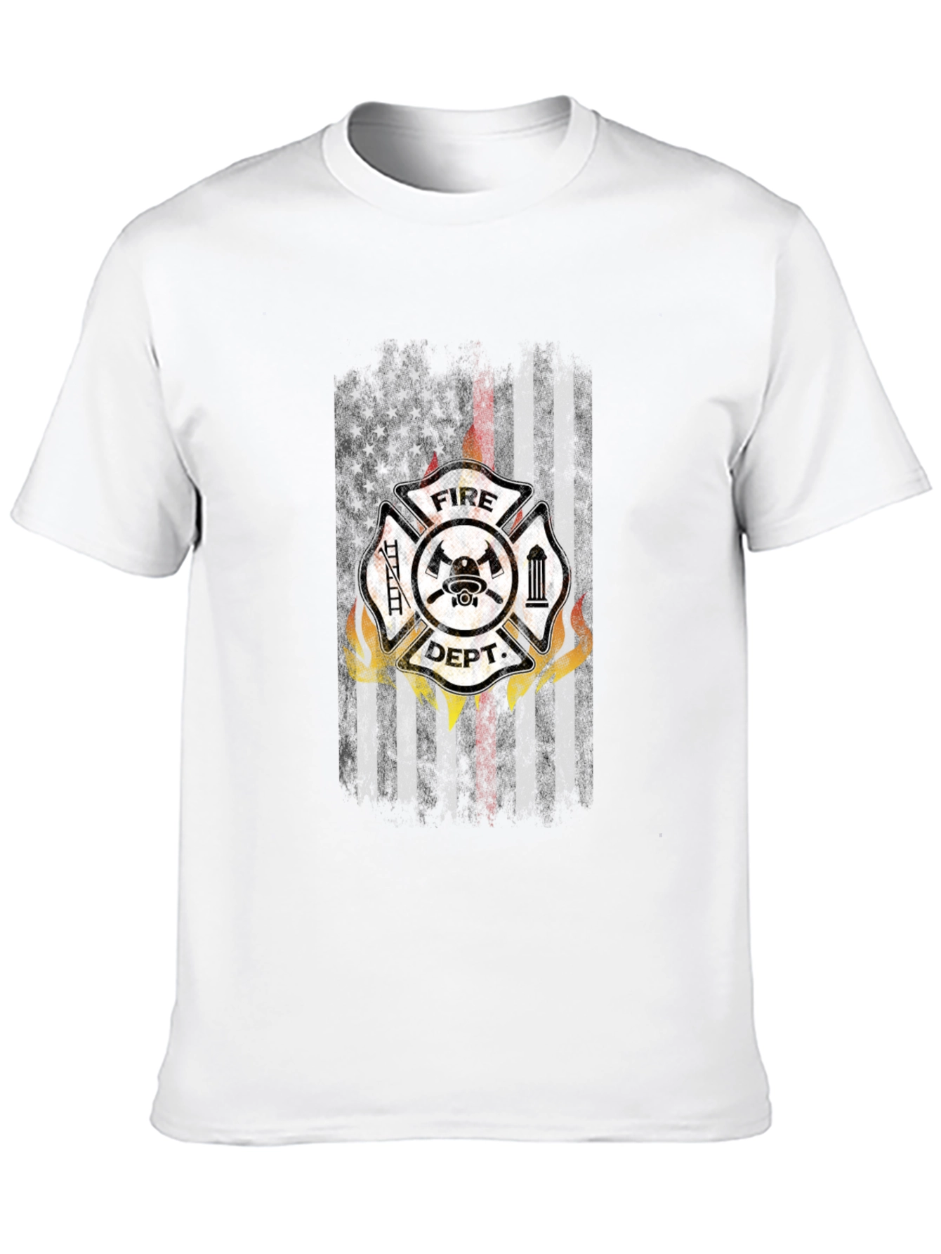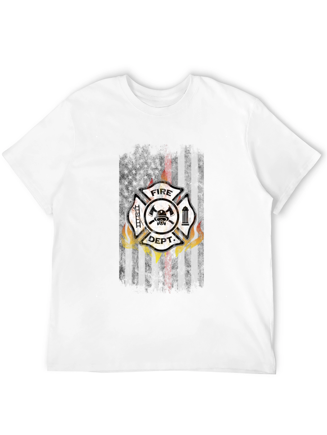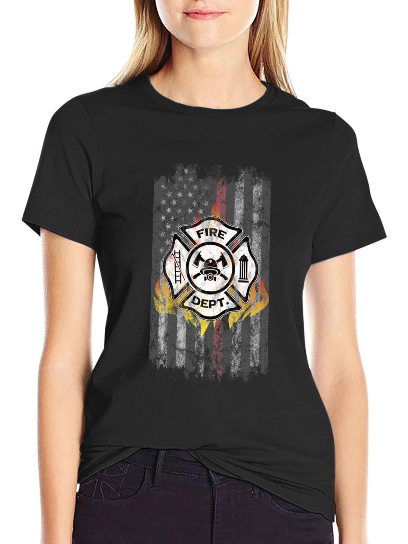 Muestra tu apoyo con esta camiseta negra de alta calidad. Presenta un diseño audaz con la bandera de Estados Unidos y el emblema de los bomberos en llamas. Ideal para bomberos, entusiastas y patriotas. Perfecta para uso diario, eventos especiales o como un regalo significativo. Su tejido suave y cómodo asegura un ajuste perfecto. ¡Lleva con orgullo este símbolo de valentía y servicio!