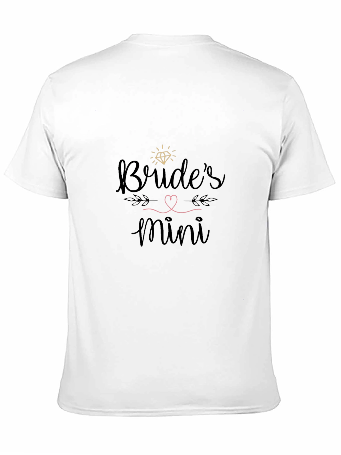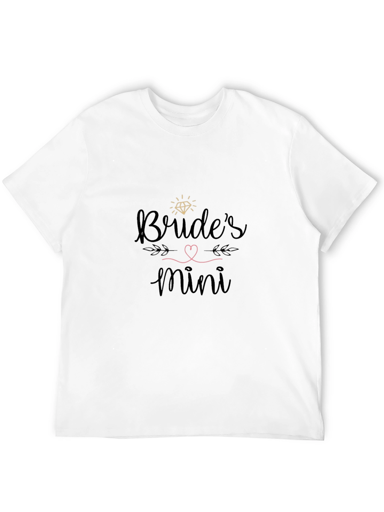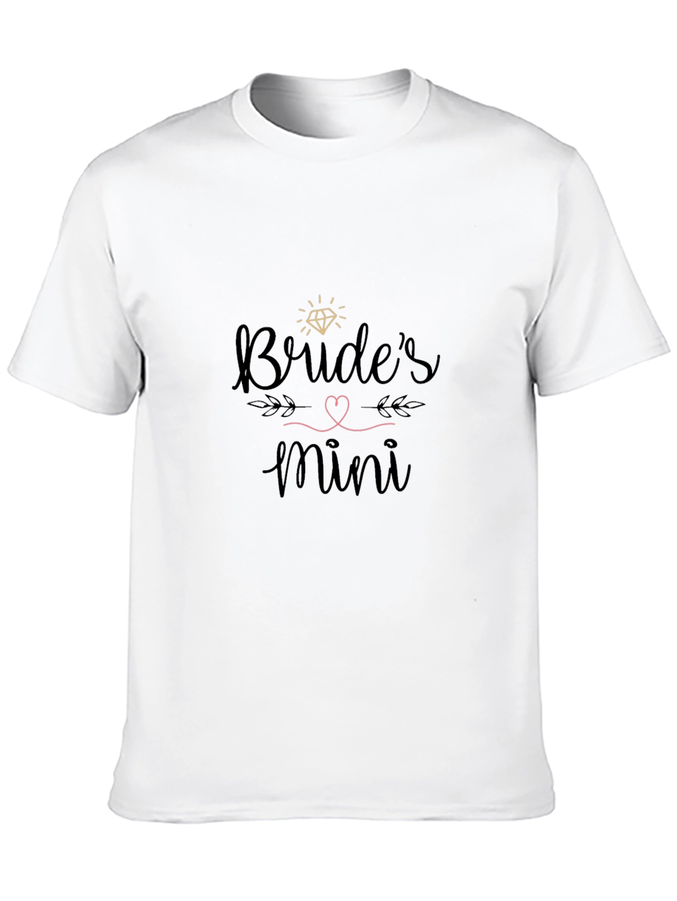Celebra la despedida de soltera con estilo con esta camiseta negra de manga corta. Presenta un diseño divertido y elegante con la frase "Bride's mini" en una tipografía moderna, adornada con un diamante brillante y un delicado corazón. Ideal para la futura novia y su equipo. El tejido suave y cómodo garantiza un ajuste perfecto para cualquier celebración. Combínala con jeans, faldas o pantalones cortos para crear un look casual y chic. Haz que la despedida de soltera sea inolvidable con esta prenda única y original. ¡Consigue la tuya ahora y únete a la fiesta!
