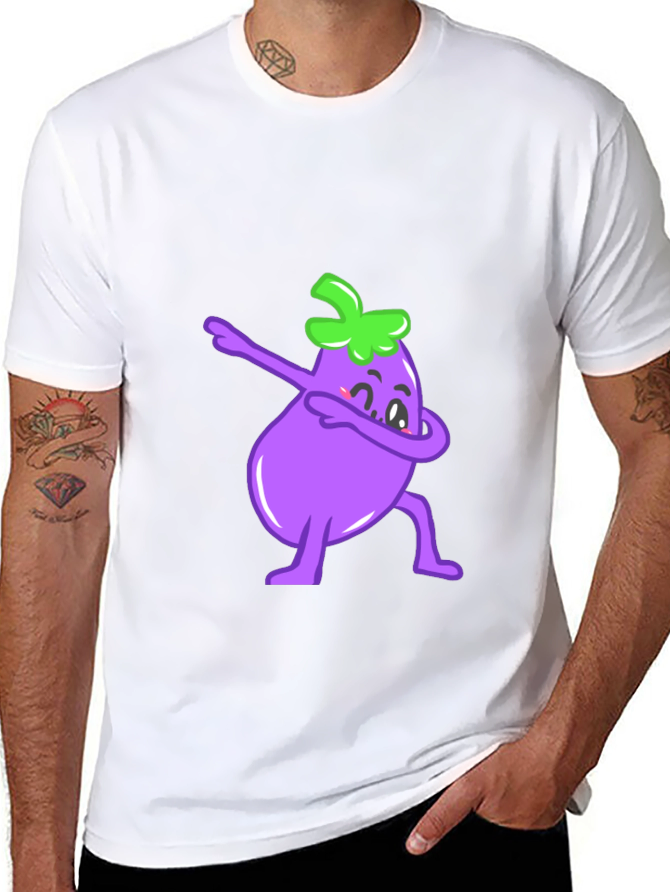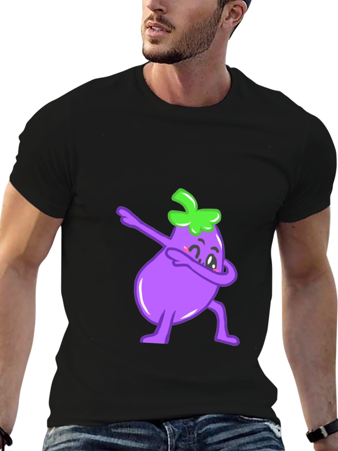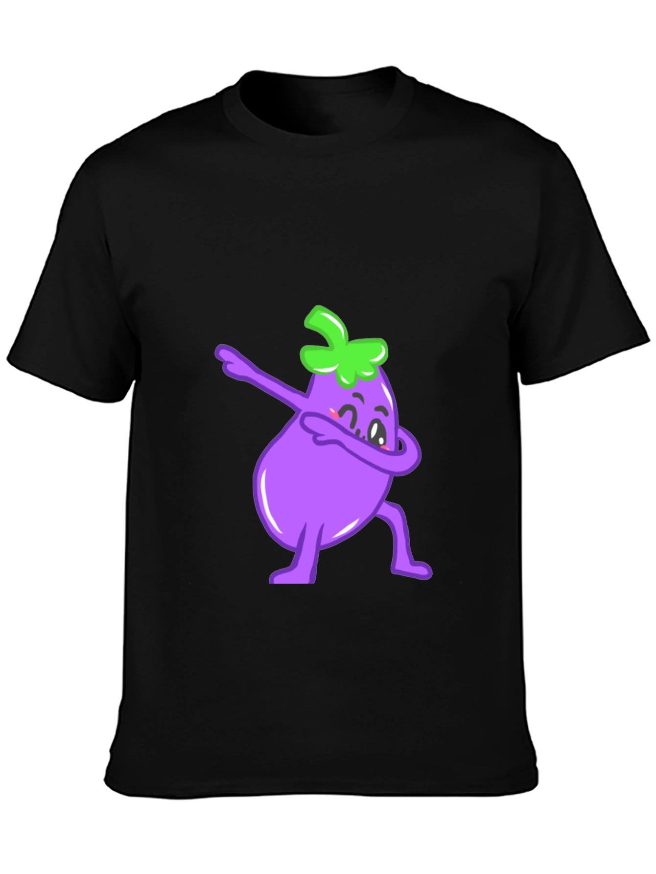 Esta camiseta negra de manga corta presenta un diseño divertido y original: una berenjena morada de dibujos animados haciendo el famoso movimiento de baile "dab". El diseño destaca sobre el fondo negro de la camiseta, creando un contraste llamativo y moderno. Fabricada en un material suave y cómodo, esta camiseta es perfecta para el uso diario y para expresar tu personalidad con un toque de humor. Ideal para jóvenes y adultos que buscan una prenda casual y con estilo. ¡Añade un toque divertido a tu guardarropa con esta camiseta única!