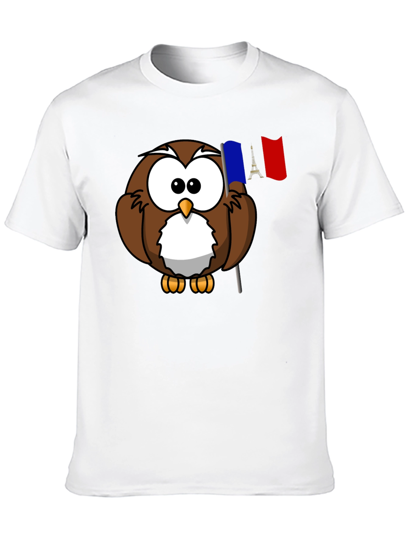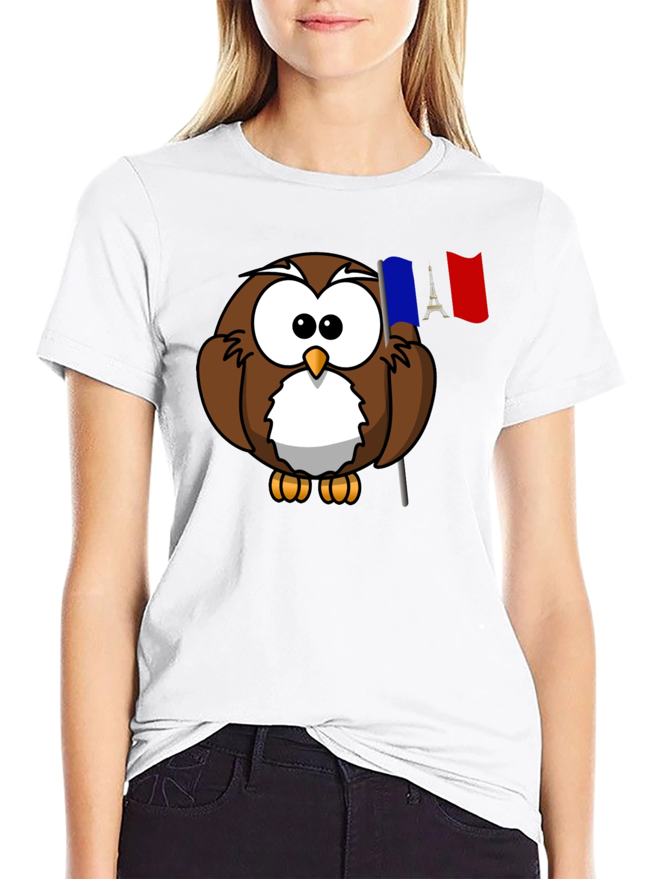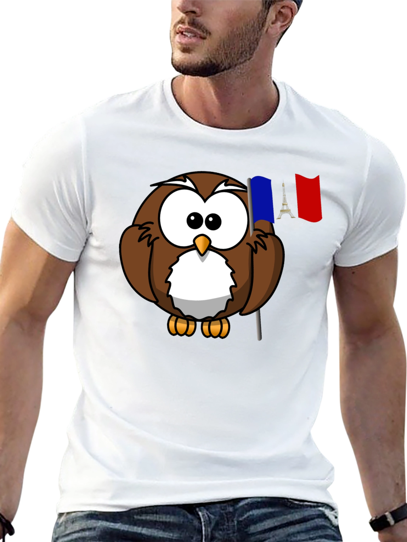 Luce esta original camiseta negra con un divertido diseño de un búho caricaturizado. El búho, en tonos marrones y blancos, sostiene una pequeña bandera francesa, aportando un toque único y cultural. Perfecta para expresar tu personalidad y amor por Francia con un estilo desenfadado. Fabricada con materiales suaves y cómodos, esta camiseta es ideal para el uso diario. Combina fácilmente con jeans, pantalones cortos o faldas, convirtiéndola en una prenda versátil para cualquier ocasión casual. Un regalo perfecto para amantes de los animales y la cultura francesa.