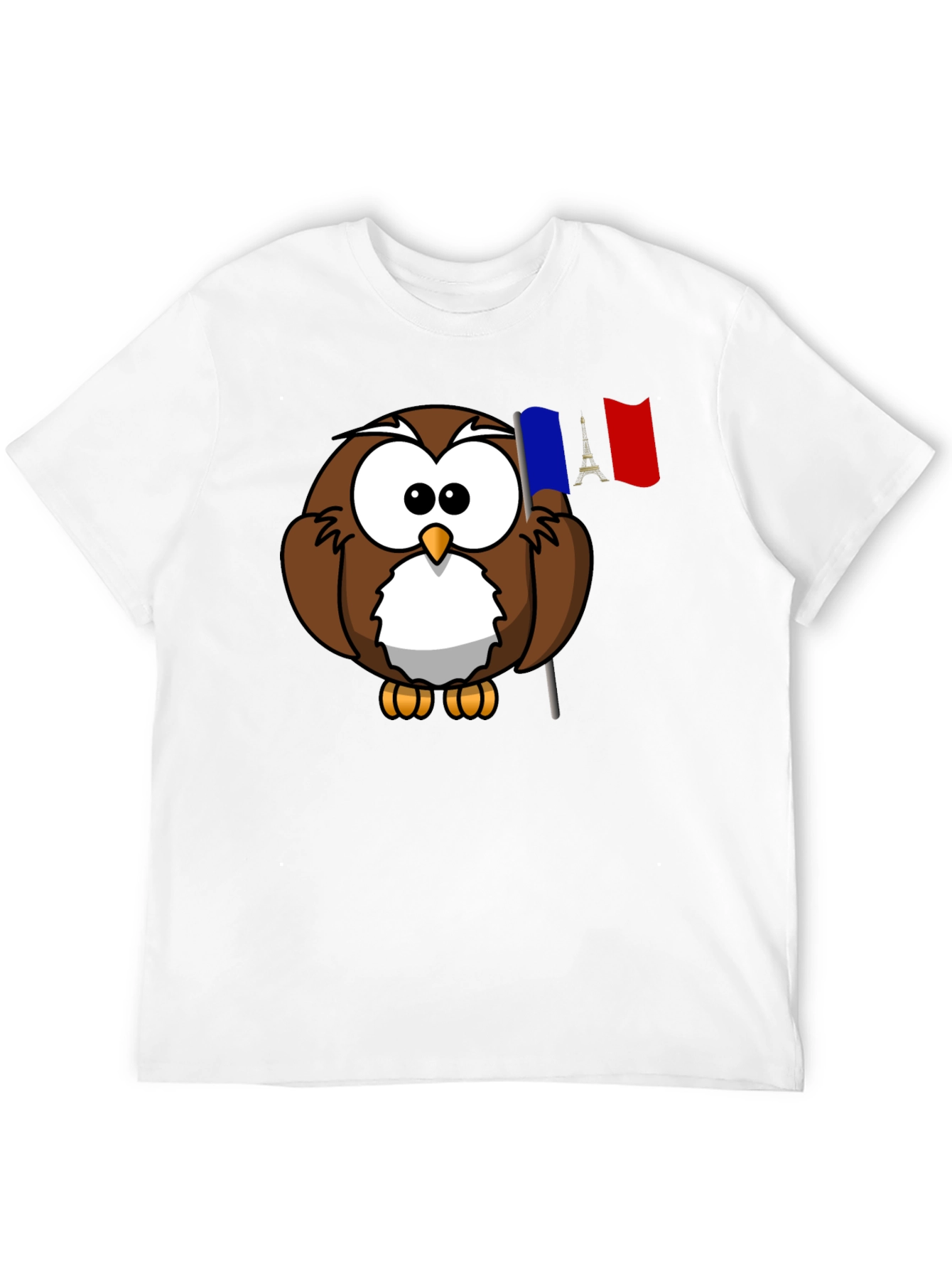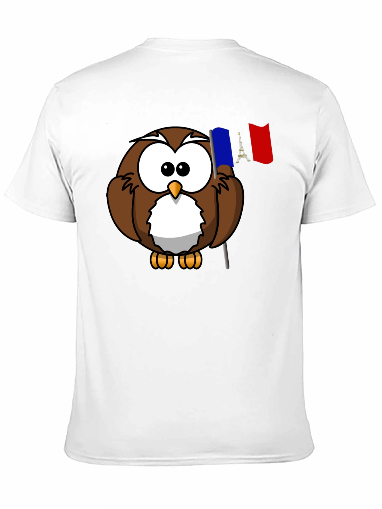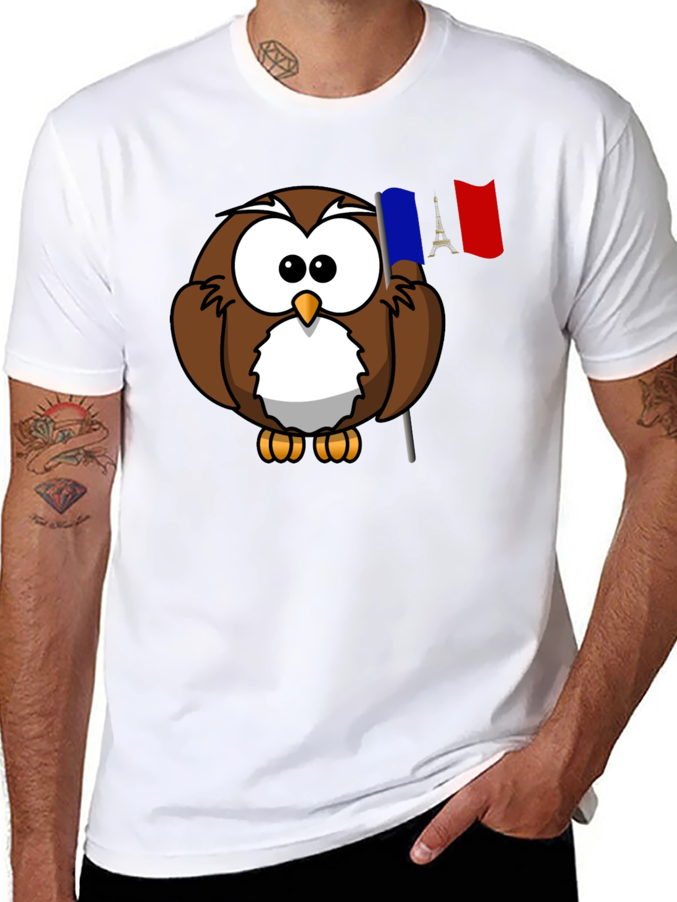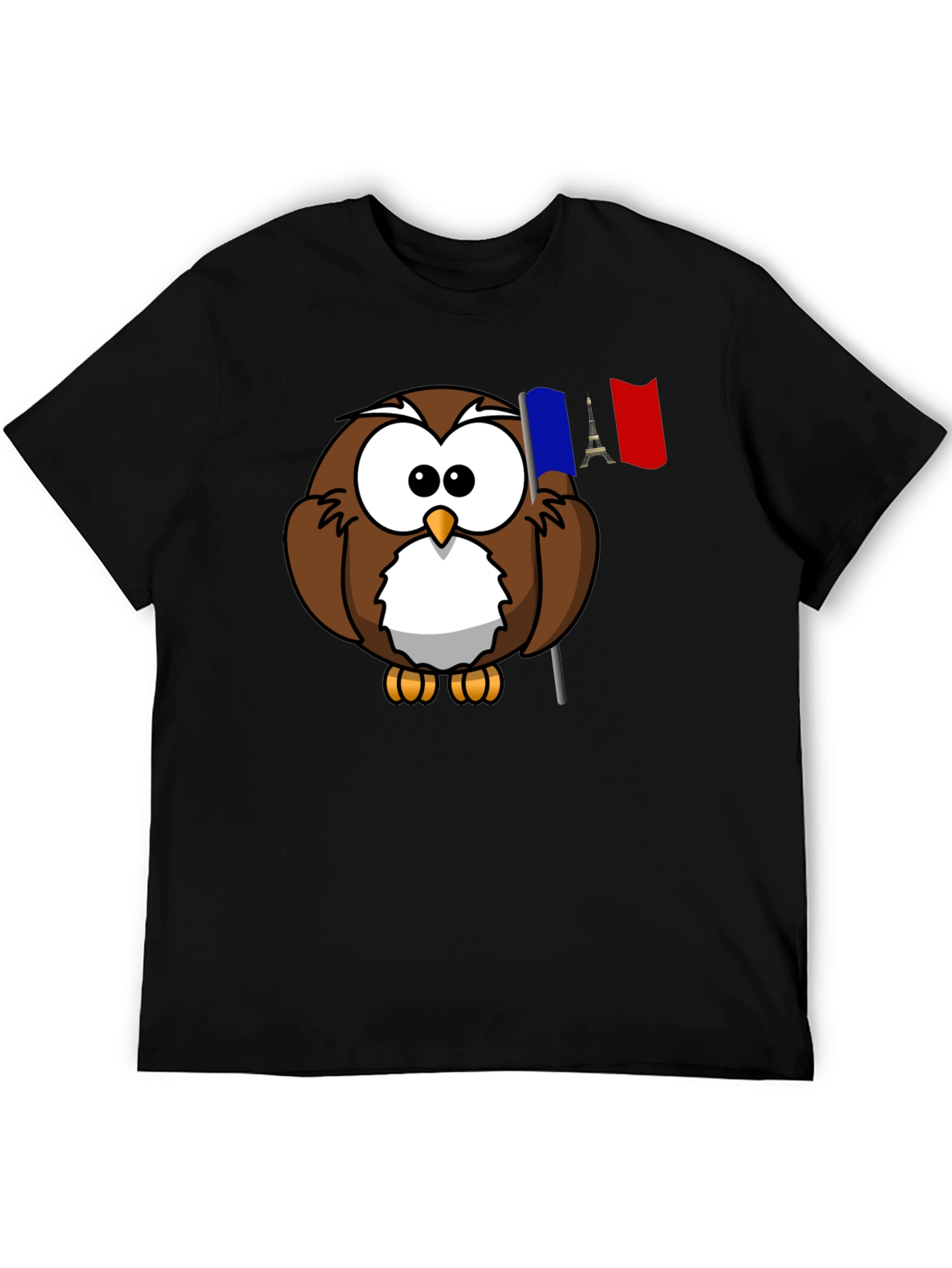 Luce esta original camiseta negra con un divertido diseño de un búho caricaturizado. El búho, en tonos marrones y blancos, sostiene una pequeña bandera francesa, aportando un toque único y cultural. Perfecta para expresar tu personalidad y amor por Francia con un estilo desenfadado. Fabricada con materiales suaves y cómodos, esta camiseta es ideal para el uso diario. Combina fácilmente con jeans, pantalones cortos o faldas, convirtiéndola en una prenda versátil para cualquier ocasión casual. Un regalo perfecto para amantes de los animales y la cultura francesa.