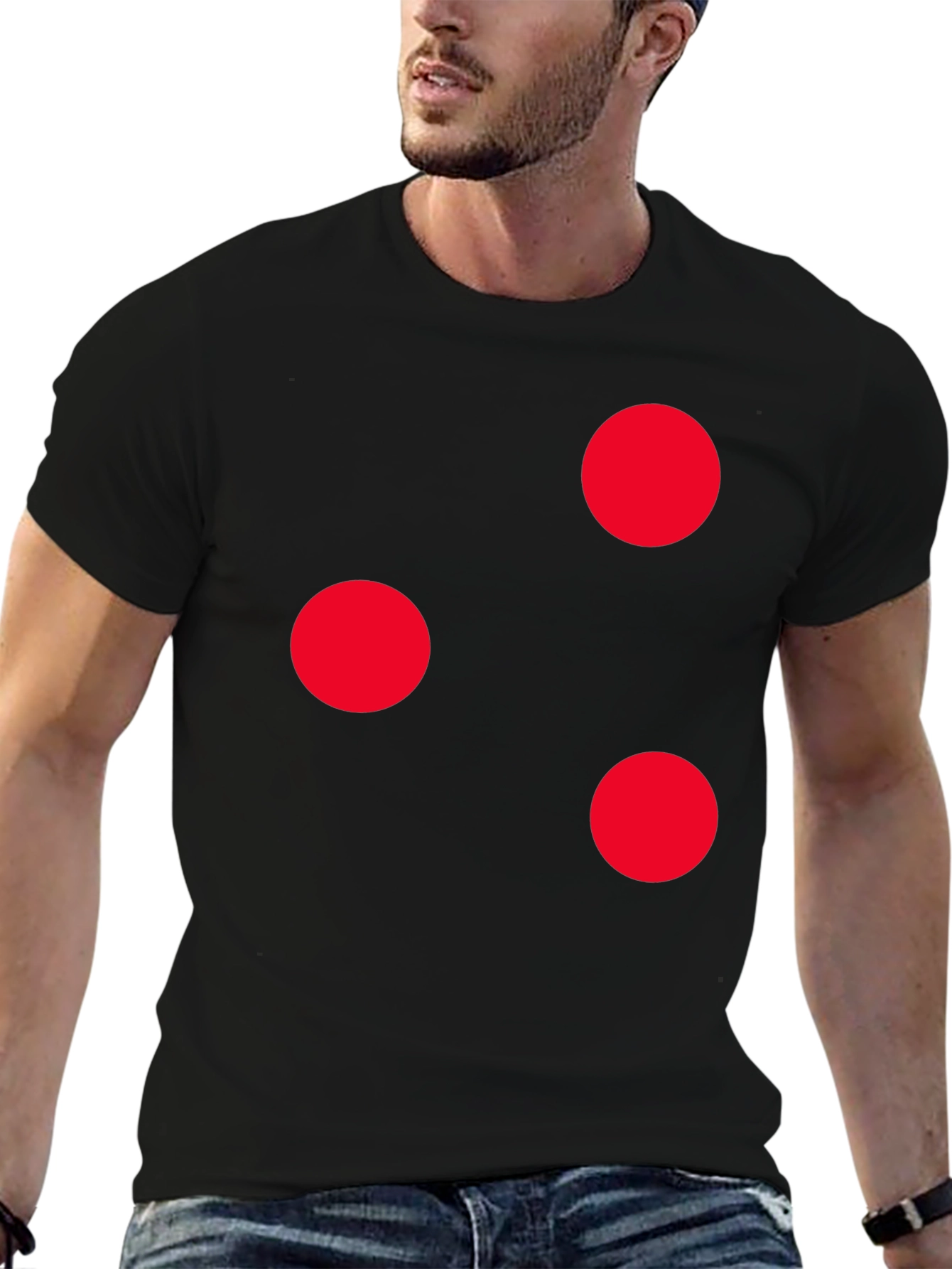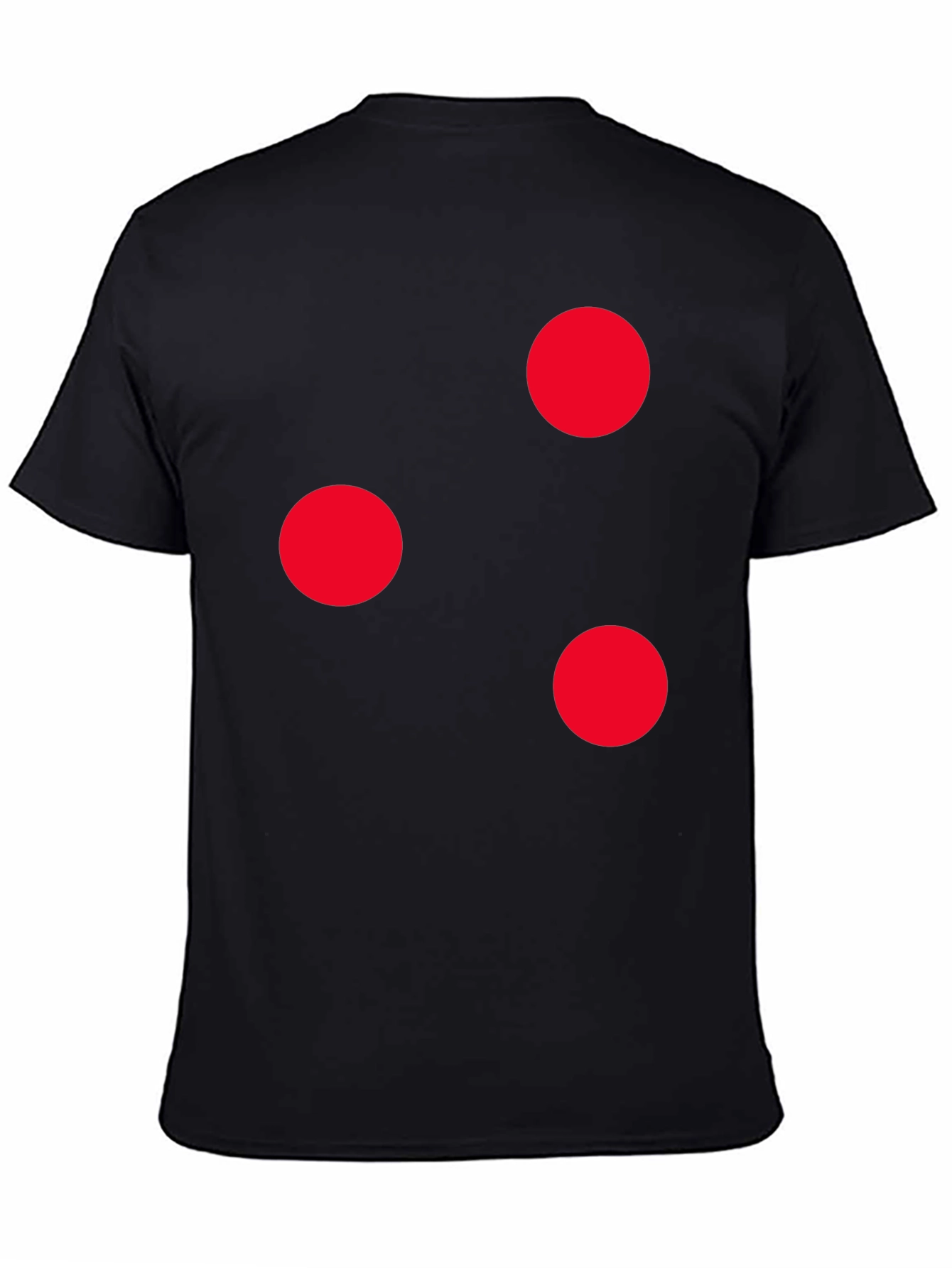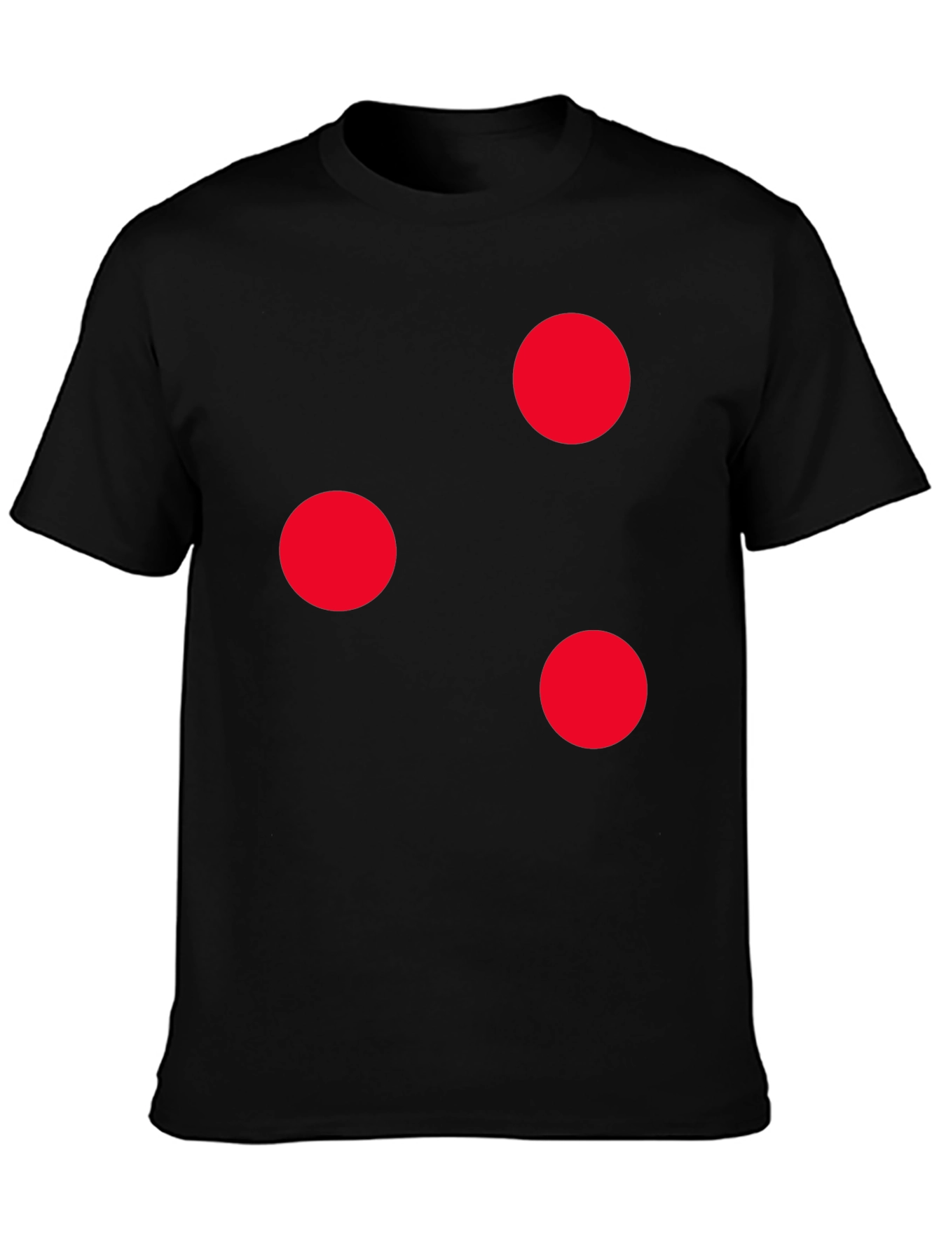 Luce un estilo moderno y minimalista con esta camiseta negra de manga corta. Su diseño presenta tres círculos rojos dispuestos de forma triangular en el pecho, creando un contraste llamativo y original. Confeccionada en un tejido suave y cómodo, esta camiseta es perfecta para el uso diario, ya sea para salir con amigos, ir al gimnasio o simplemente relajarte en casa. Combina esta camiseta con tus jeans, pantalones cortos o joggers favoritos para un look casual y desenfadado que te hará destacar. Es una prenda versátil que se adapta a cualquier ocasión informal, añadiendo un toque de personalidad a tu estilo.