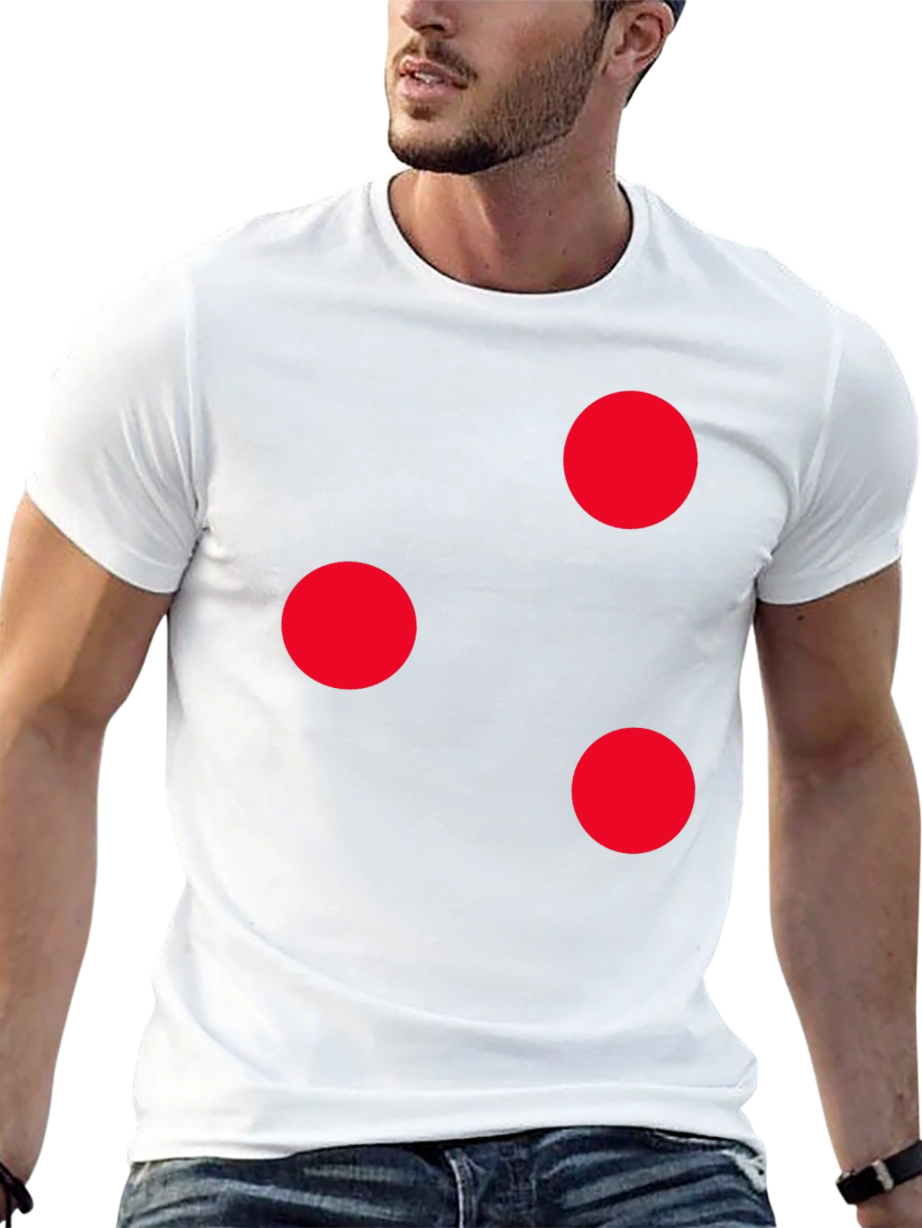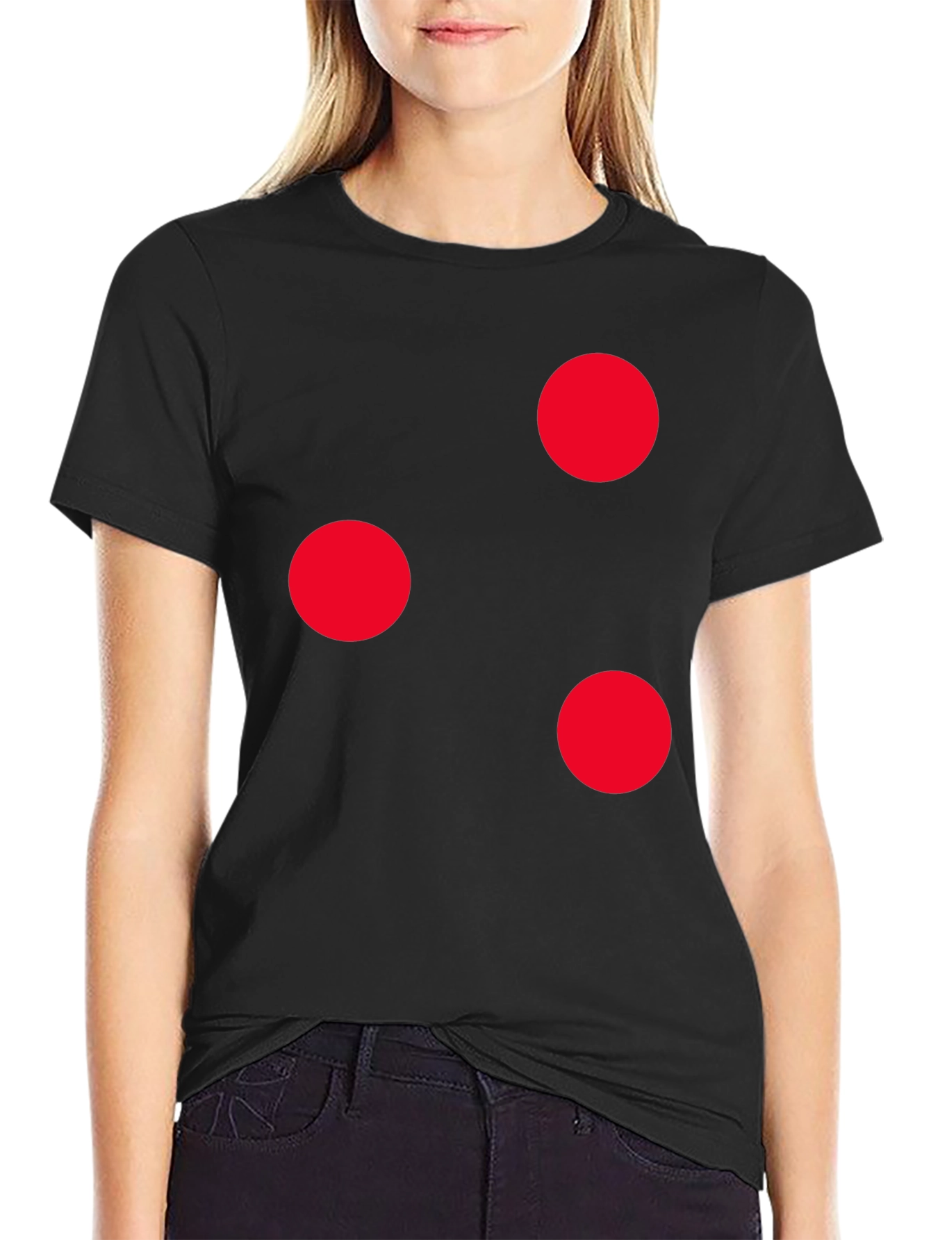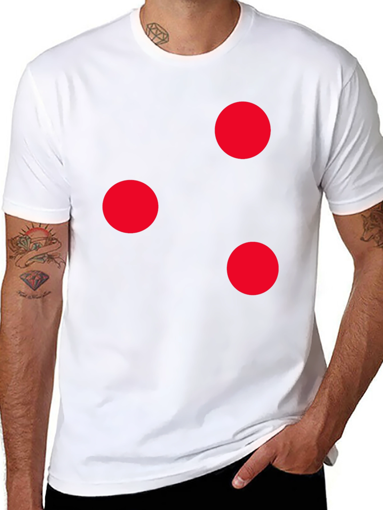 Luce un estilo moderno y minimalista con esta camiseta negra de manga corta. Su diseño presenta tres círculos rojos dispuestos de forma triangular en el pecho, creando un contraste llamativo y original. Confeccionada en un tejido suave y cómodo, esta camiseta es perfecta para el uso diario, ya sea para salir con amigos, ir al gimnasio o simplemente relajarte en casa. Combina esta camiseta con tus jeans, pantalones cortos o joggers favoritos para un look casual y desenfadado que te hará destacar. Es una prenda versátil que se adapta a cualquier ocasión informal, añadiendo un toque de personalidad a tu estilo.