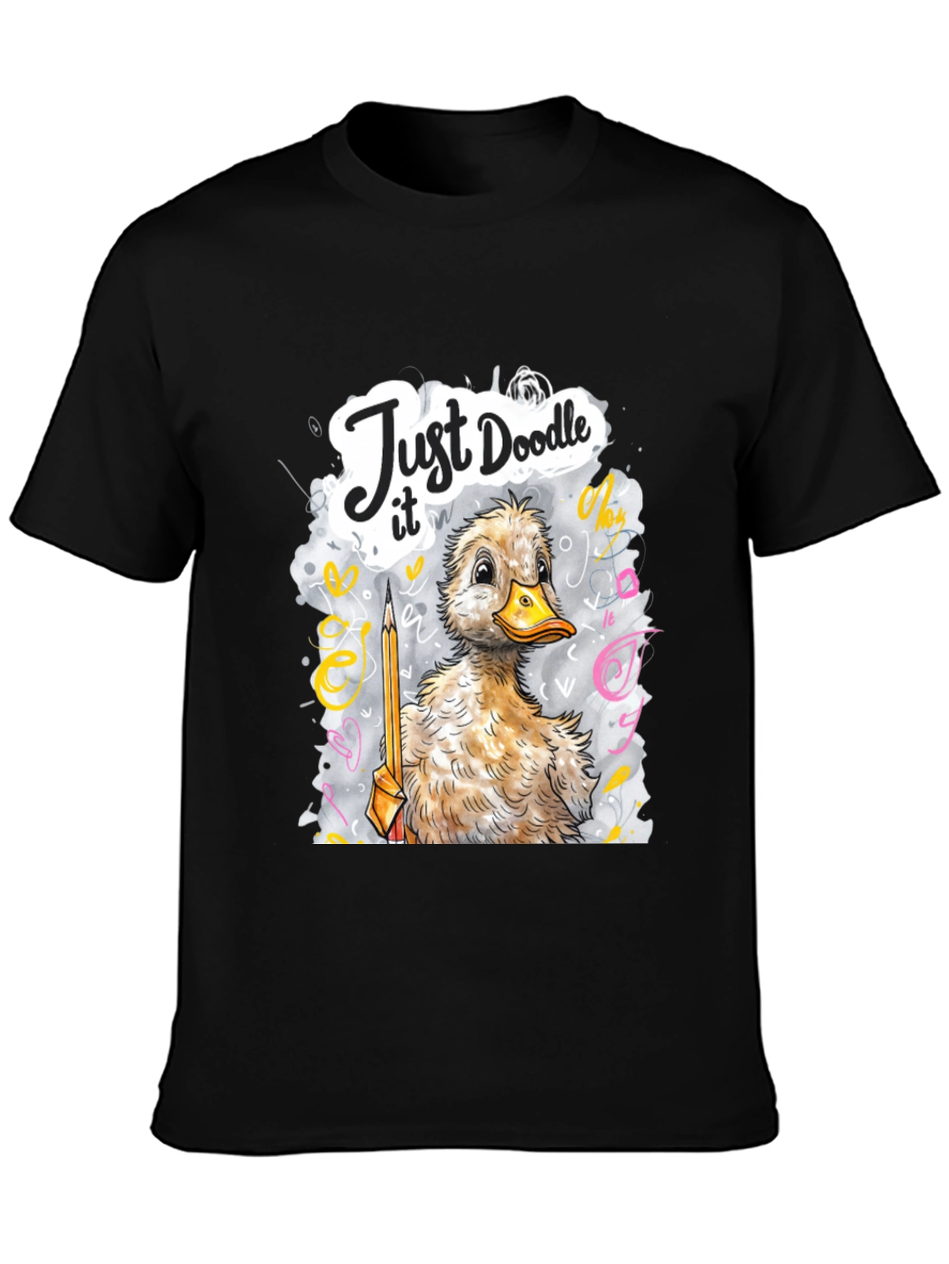 Luce esta original camiseta negra con un diseño único. Presenta un adorable patito con un lápiz, sobre un fondo de garabatos coloridos que le da un toque artístico y divertido. Ideal para amantes del arte, la creatividad y los diseños originales. Fabricada con materiales cómodos y duraderos, perfecta para el día a día, eventos casuales o como un regalo especial para alguien con un estilo único y juvenil. Destaca con esta prenda que expresa tu personalidad y pasión por el diseño. ¡Hazte con la tuya y muestra tu lado más creativo!