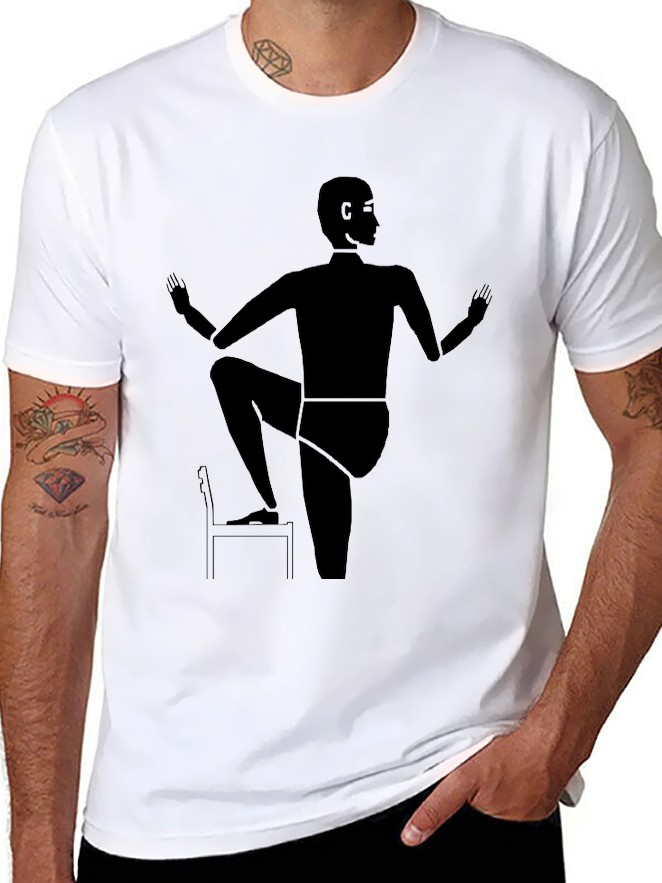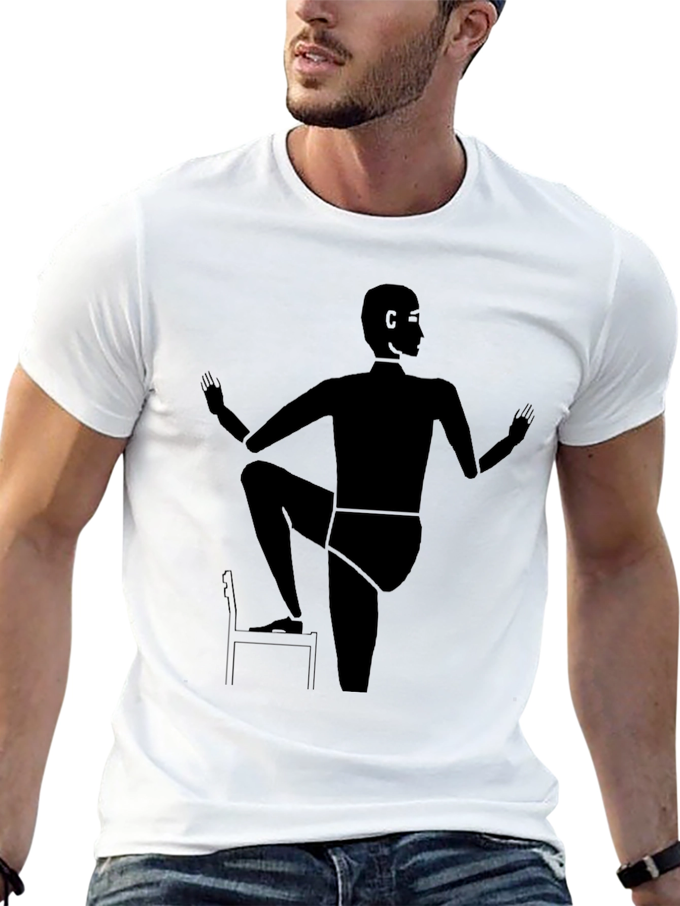 Esta camiseta negra presenta un diseño abstracto único que captura la esencia del yoga. La silueta estilizada de una figura en una postura de yoga sobre una silla, impresa en la parte frontal, le da un toque artístico y moderno. Ideal para los amantes del yoga, el arte abstracto y aquellos que buscan una prenda original para expresar su estilo. Fabricada con materiales suaves y cómodos, esta camiseta es perfecta para el uso diario o para sesiones relajadas de yoga. Combínala con tus pantalones favoritos para un look casual y sofisticado.