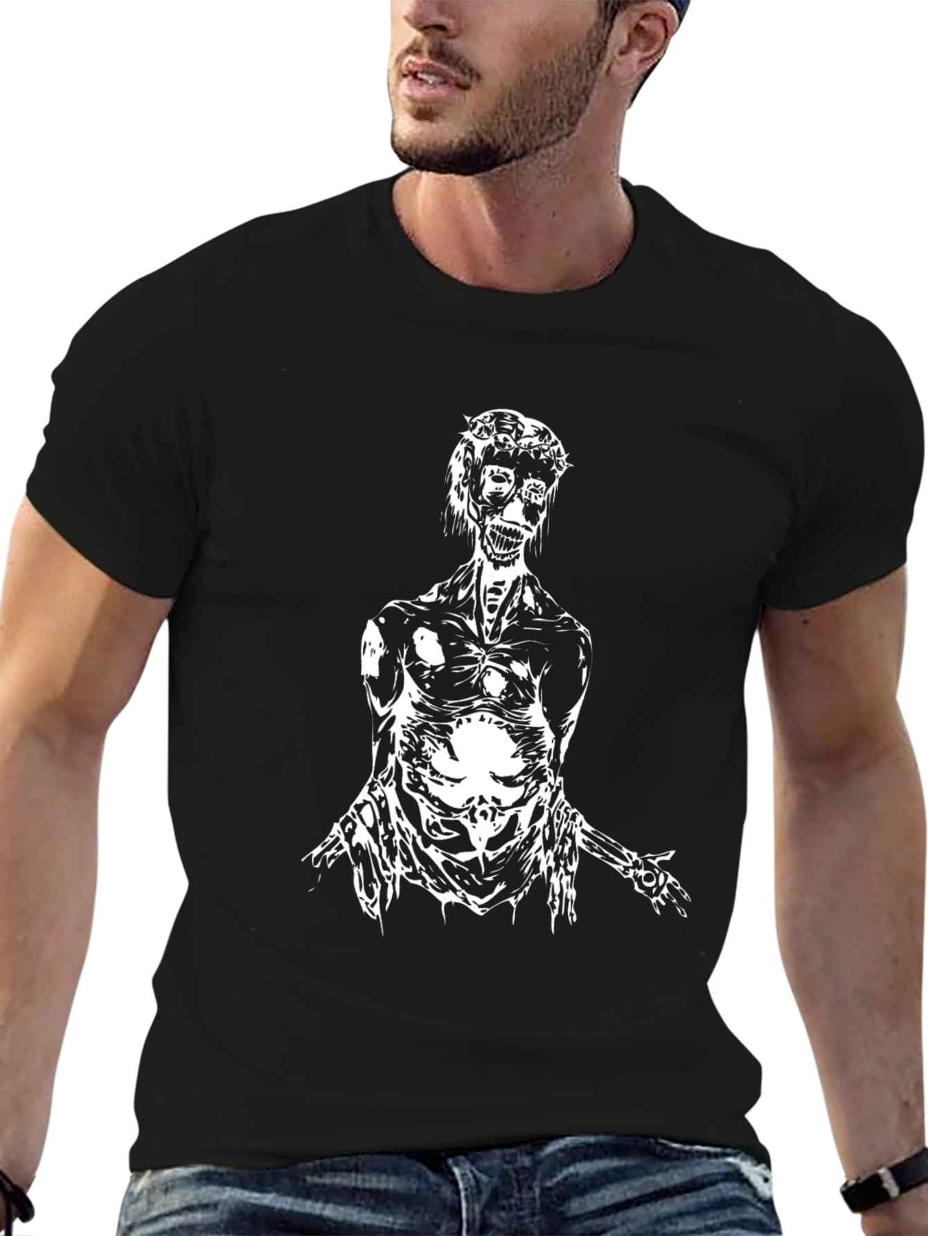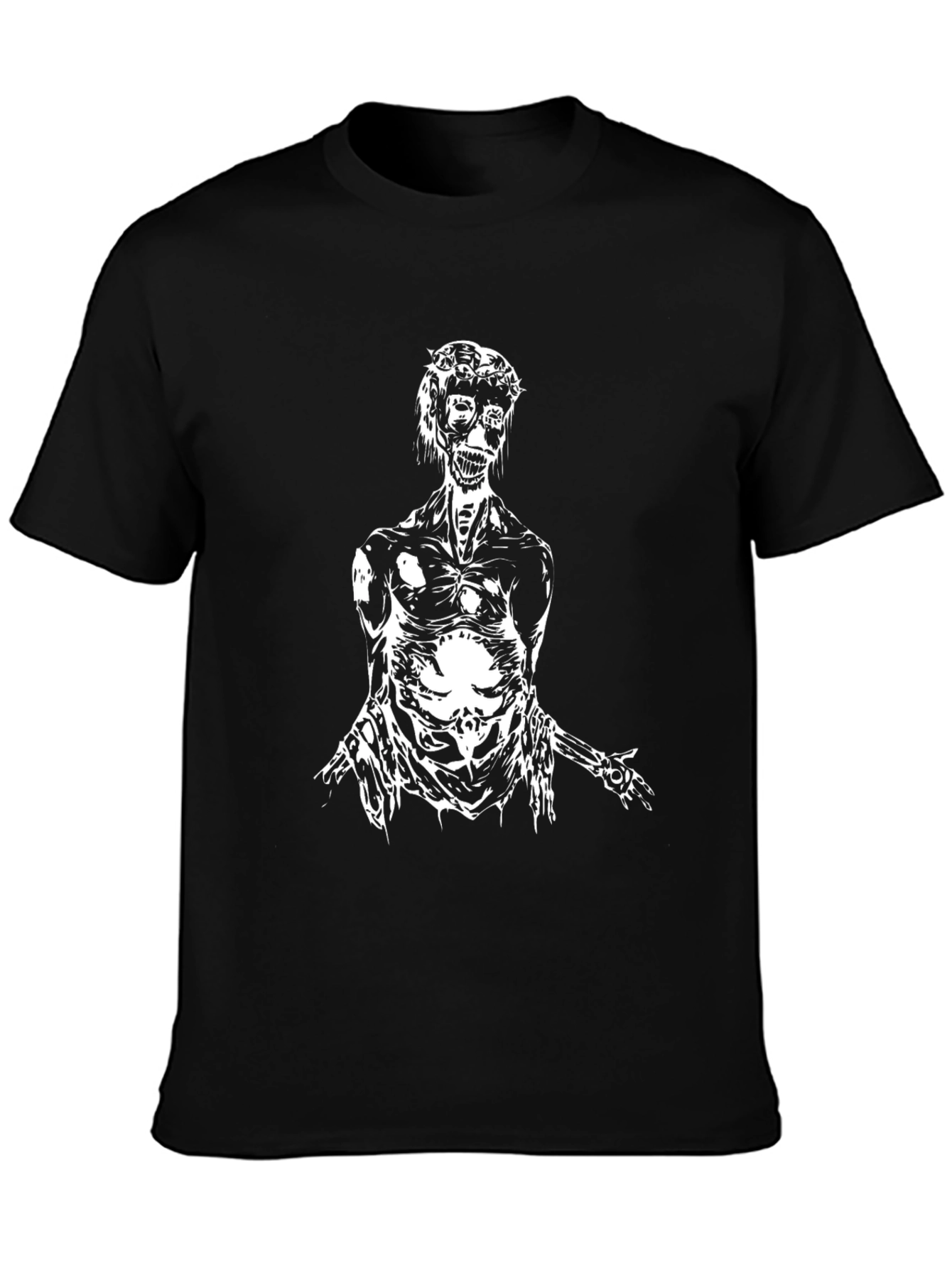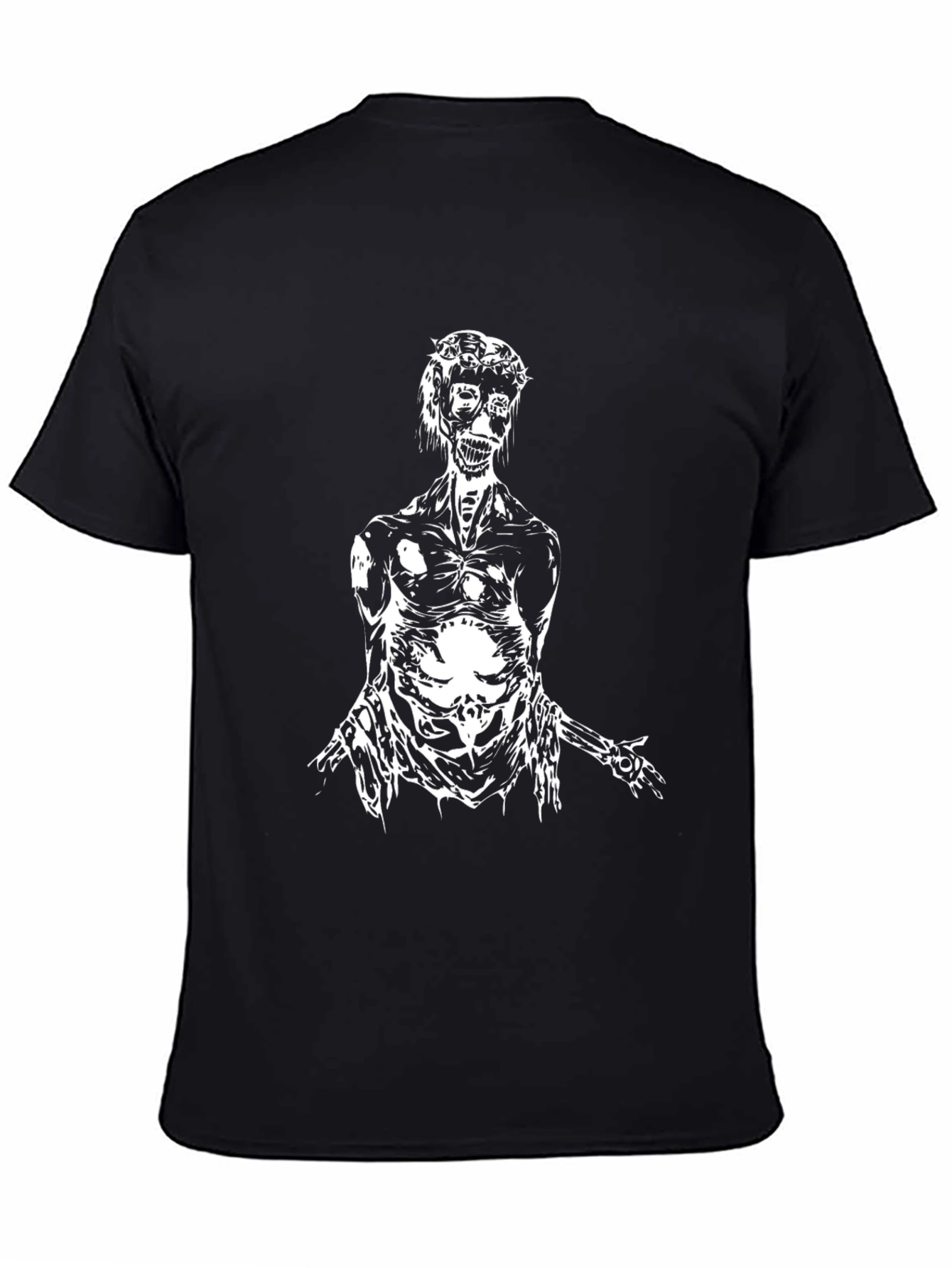 Luce un estilo único con esta camiseta negra de corte clásico. Confeccionada en un material suave y cómodo, esta prenda presenta un llamativo diseño artístico en color blanco que representa una figura esquelética con detalles intrincados. El diseño vanguardista la convierte en una opción ideal para expresar tu individualidad y destacar en cualquier ocasión. Perfecta para combinar con jeans, pantalones casuales o faldas, esta camiseta es una adición audaz a cualquier guardarropa. Ideal para conciertos, eventos sociales o simplemente para un look diario con un toque distintivo. ¡Atrévete a marcar la diferencia!