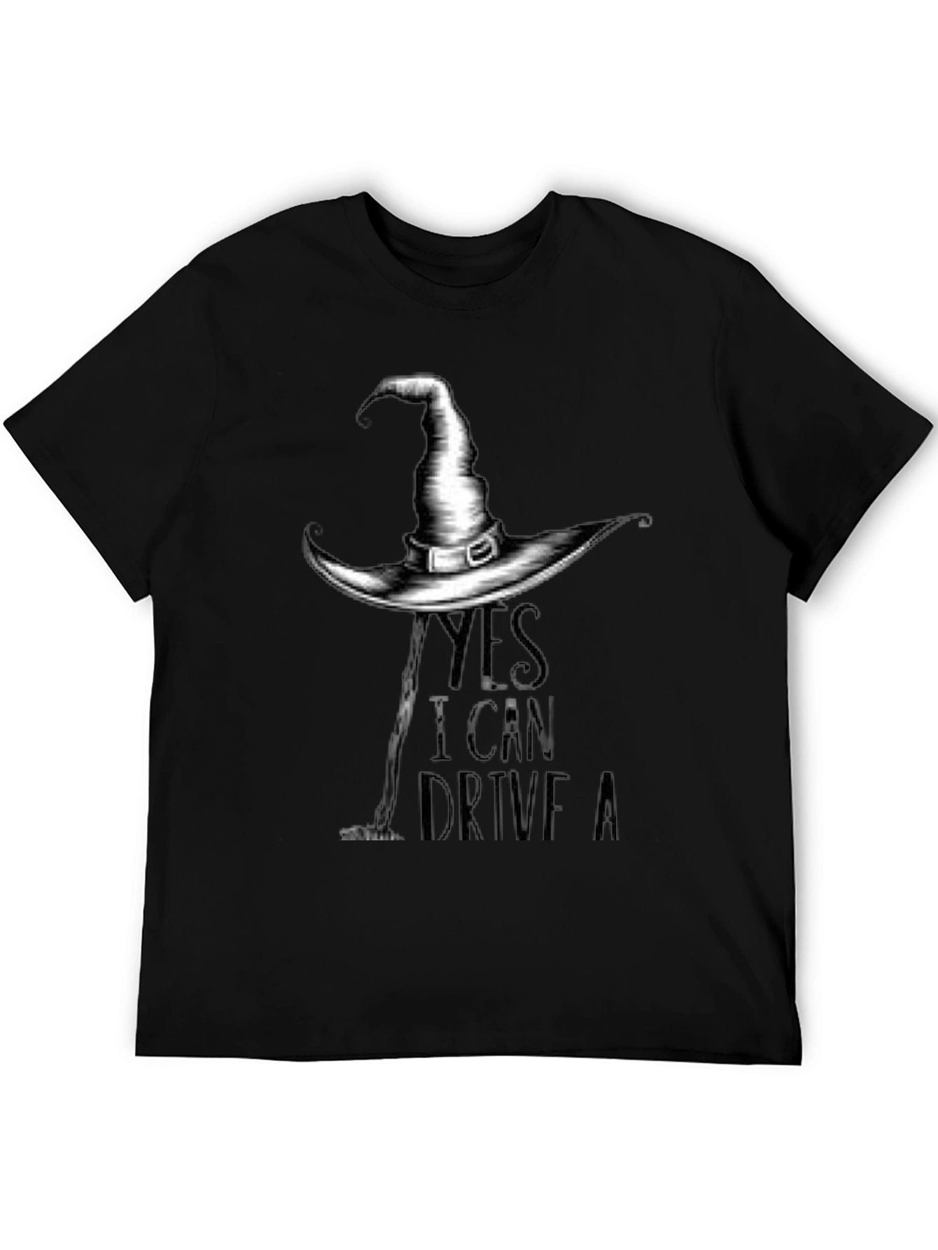 Celebra Halloween con estilo con esta camiseta negra de manga corta. Presenta un diseño gráfico de un sombrero de bruja con texto que dice "YES I CAN DRIVE A", ideal para los amantes de esta festividad. Su tela suave y cómoda la hace perfecta para usar en fiestas, eventos temáticos o simplemente para mostrar tu espíritu de Halloween en el día a día. Combina fácilmente con jeans, leggings o faldas, esta camiseta versátil es una adición imprescindible para tu guardarropa de temporada. Demuestra tu sentido del humor con este diseño único y divertido. ¡Consigue la tuya y prepárate para la noche de brujas!