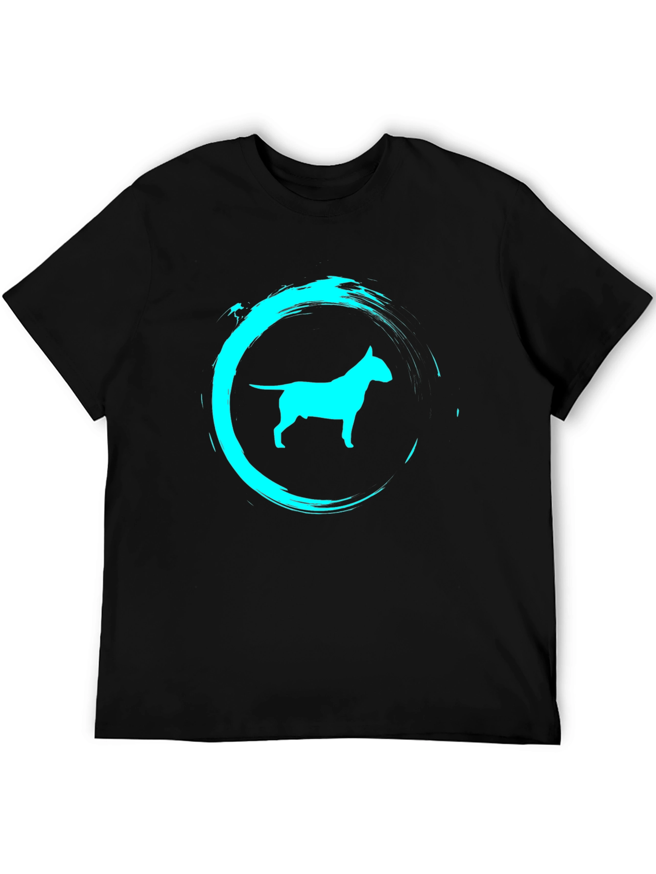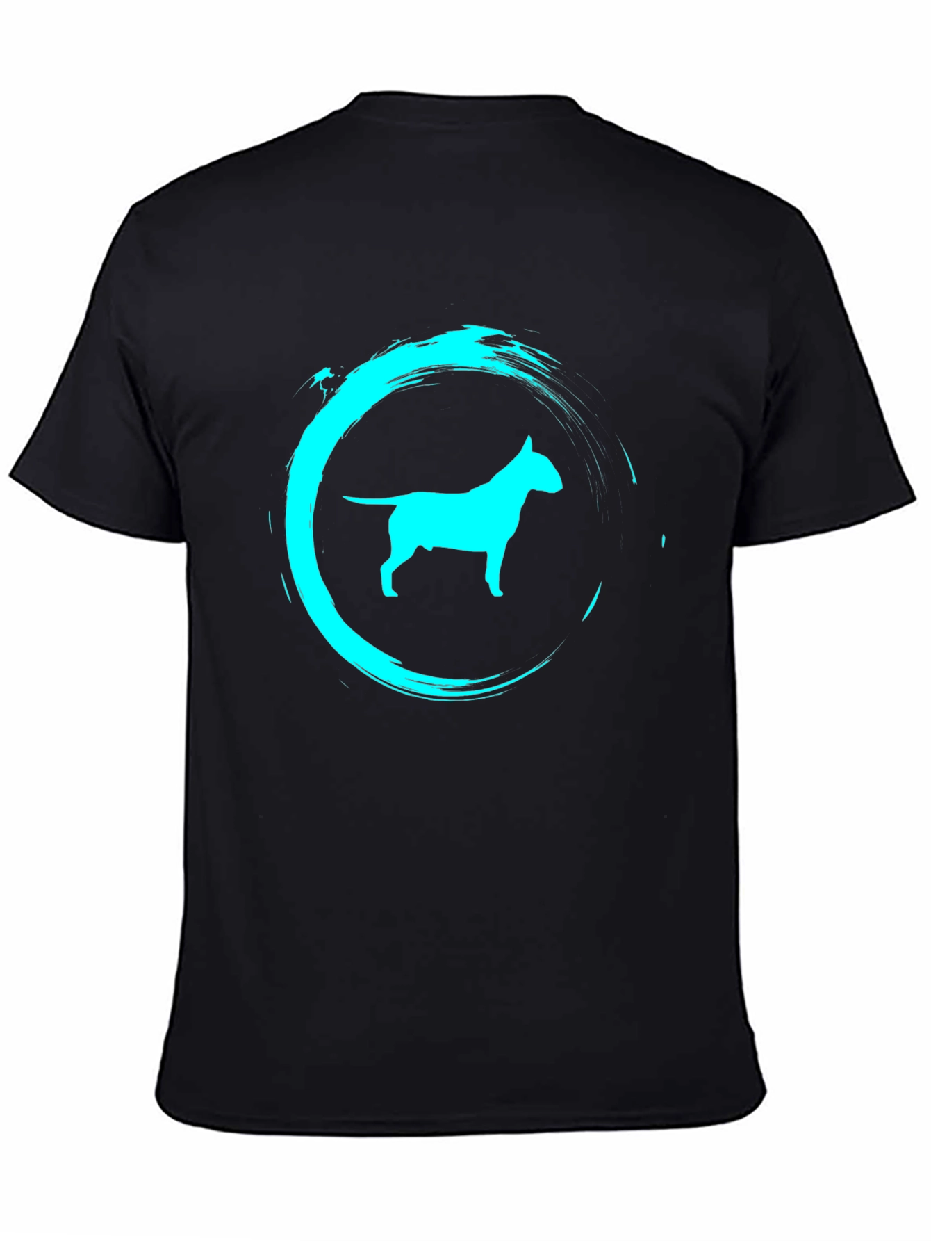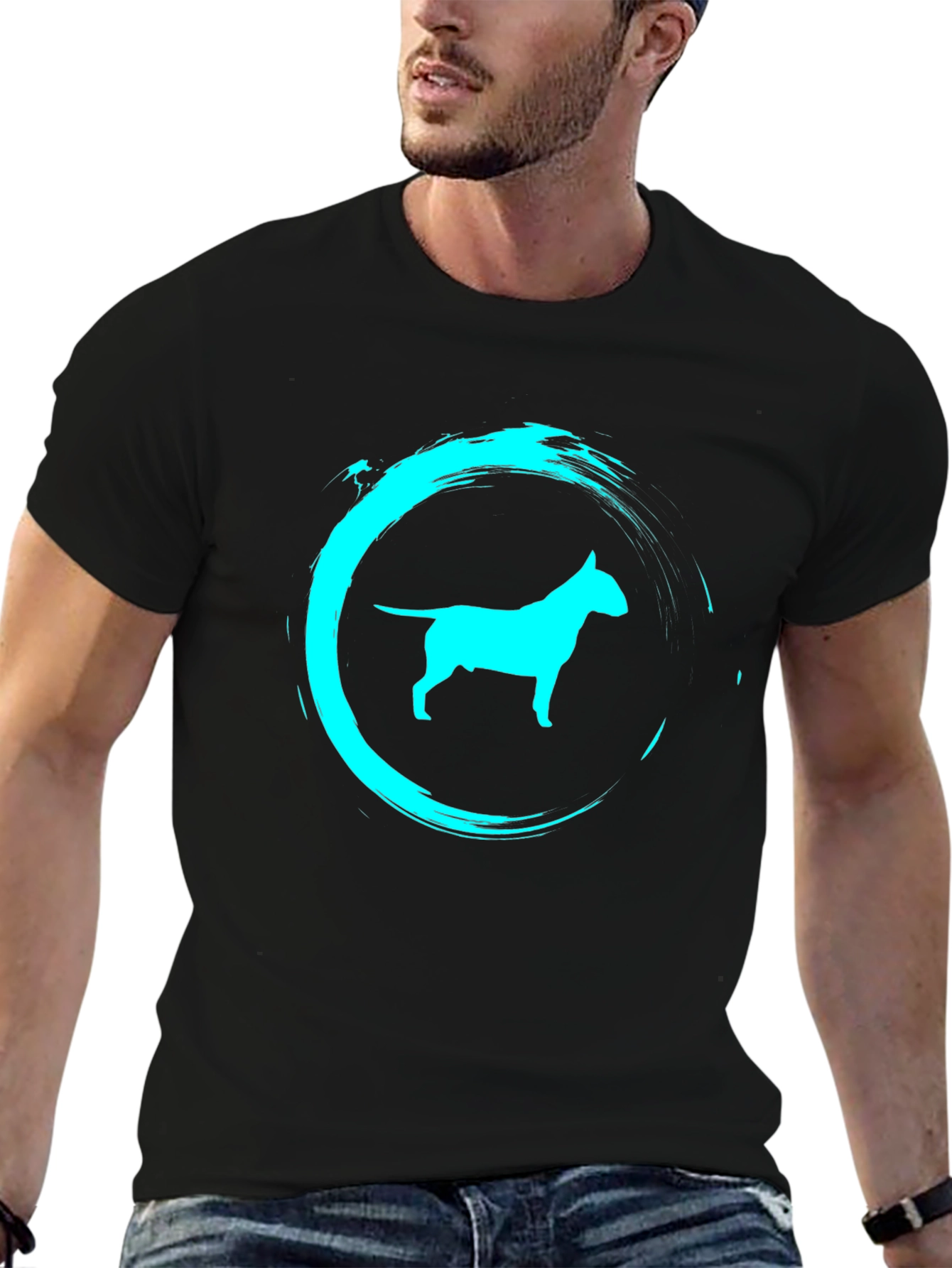 Luce un estilo único con esta moderna camiseta negra de manga corta. Presenta un llamativo diseño de un Bull Terrier en color turquesa, enmarcado en un círculo de trazos artísticos que le da un toque original y llamativo. Fabricada en un tejido suave y cómodo, esta camiseta es ideal para el uso diario. Perfecta para amantes de los perros y aquellos que buscan una prenda con personalidad. Combínala con tus jeans favoritos para un look casual y relajado, o úsala para destacar en tus actividades al aire libre. ¡Añade un toque de color y estilo a tu armario con esta camiseta!