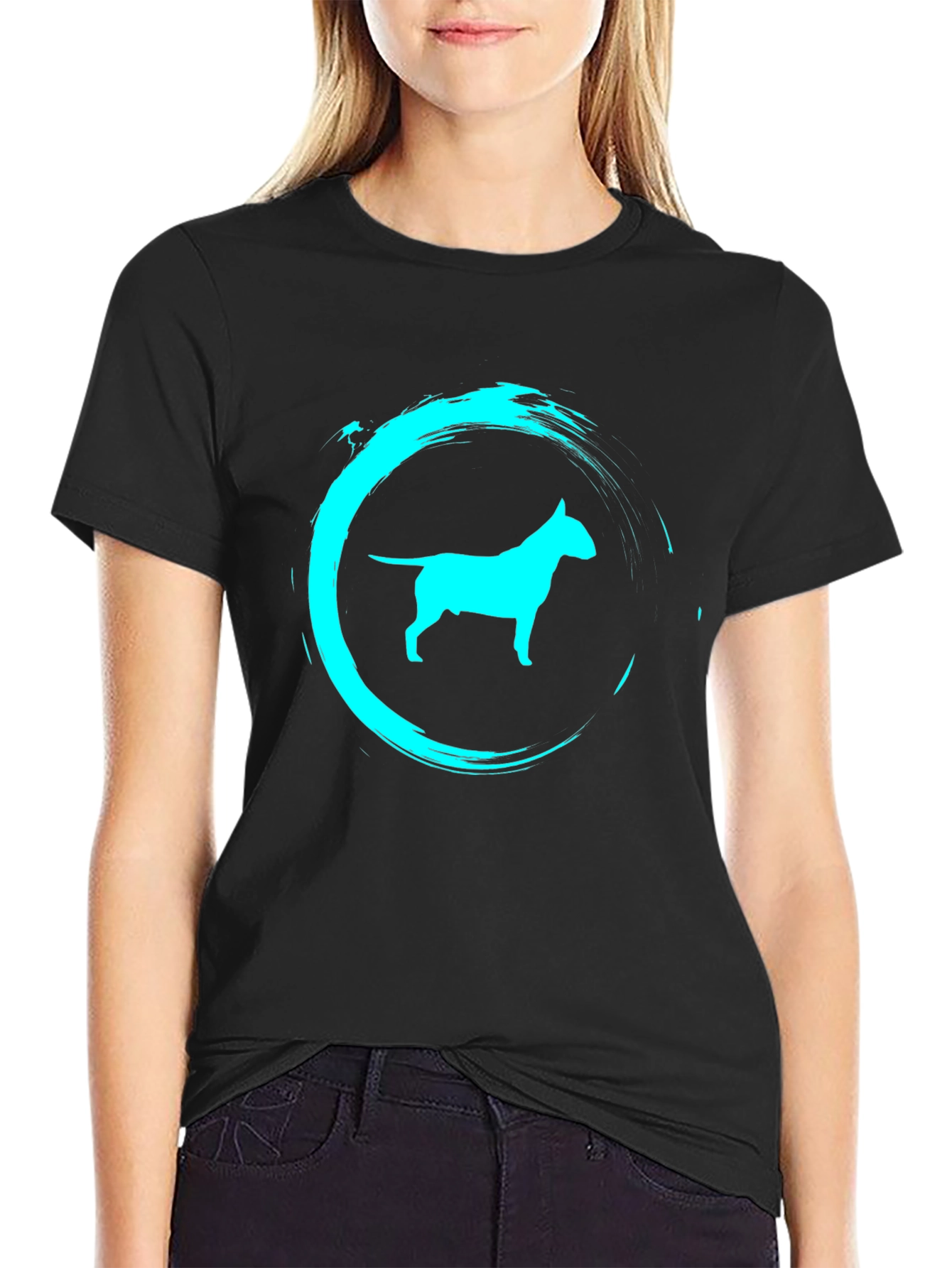 Camiseta Negra con Diseño de Bull Terrier Turquesa
