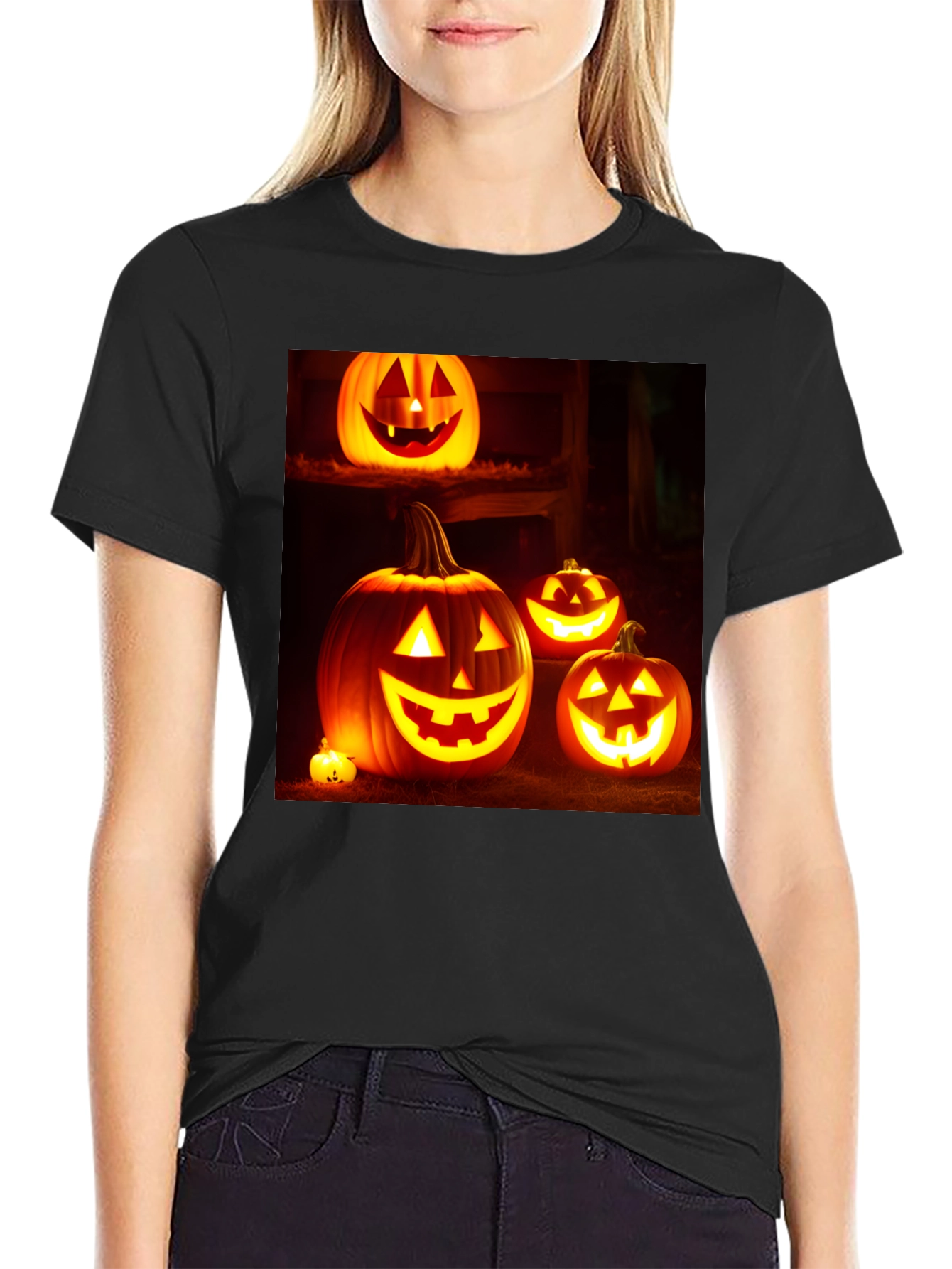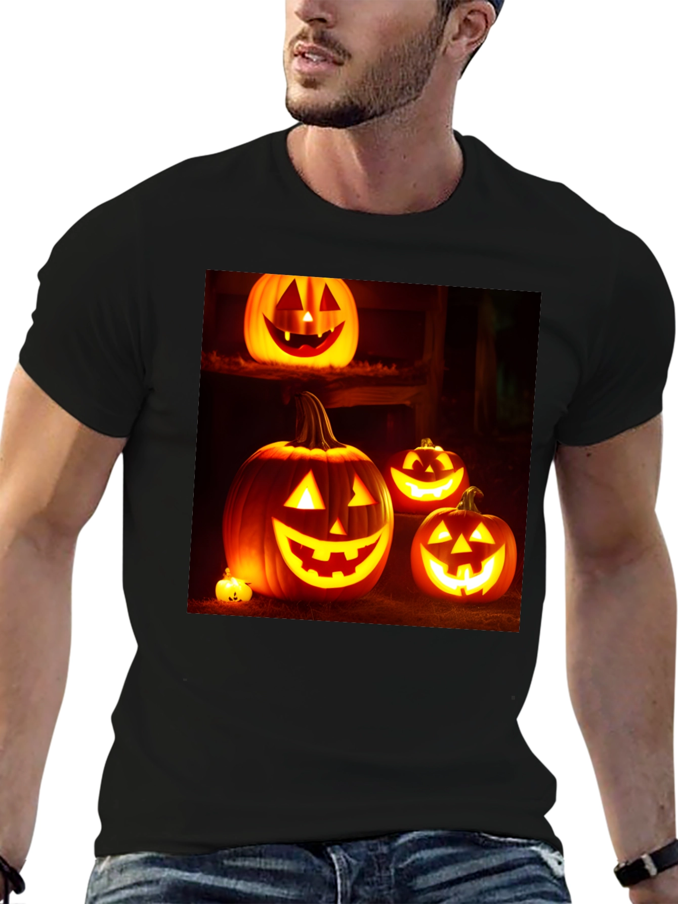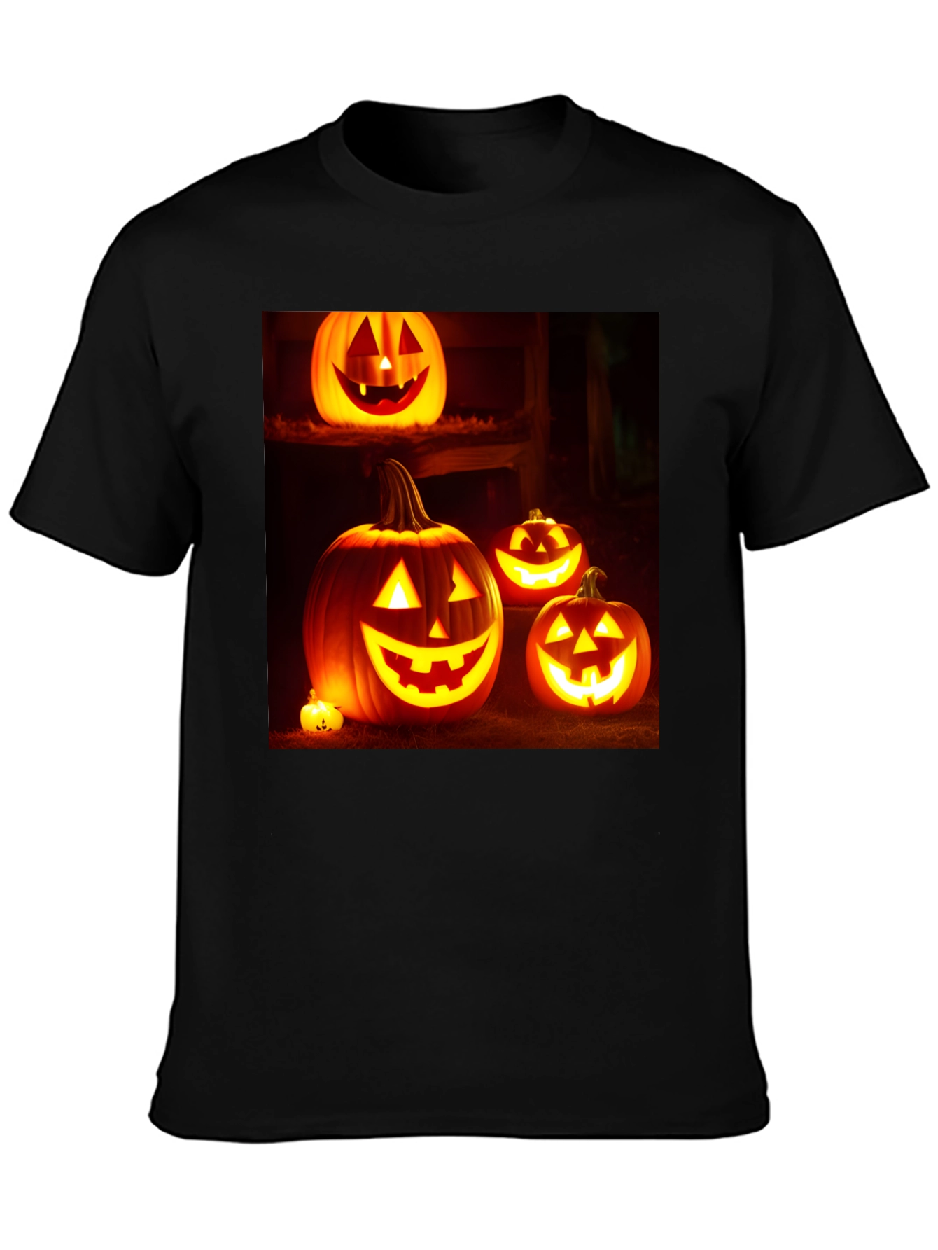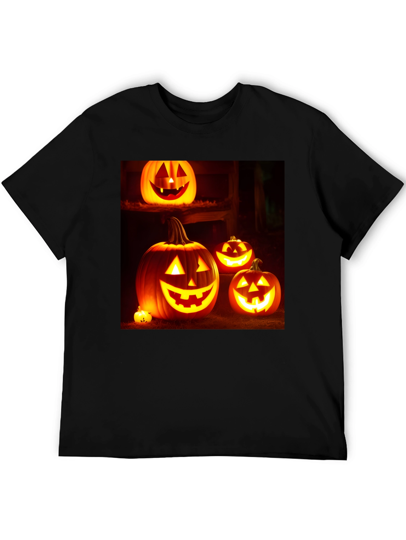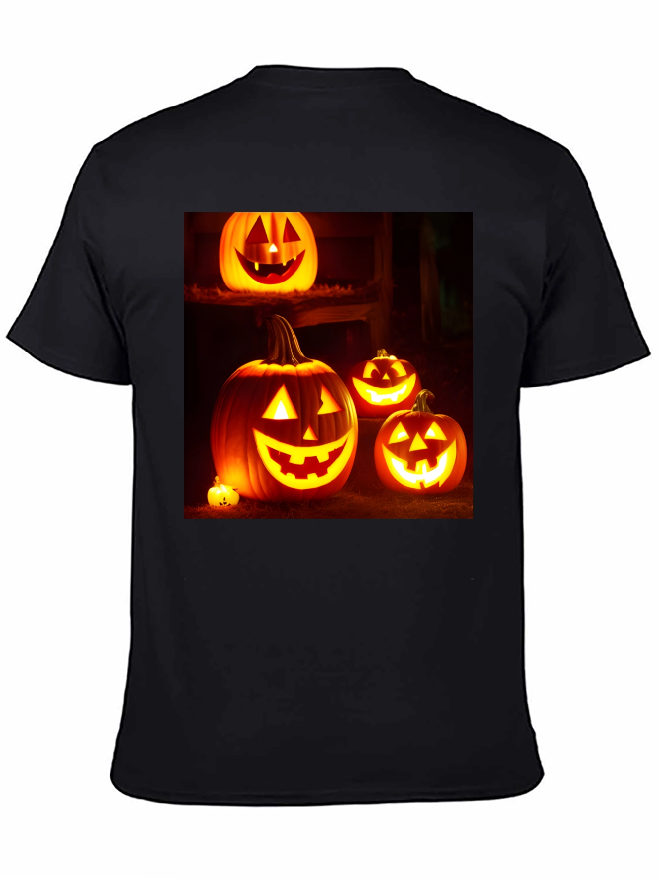 Camiseta Negra con Diseño de Calabazas Halloween