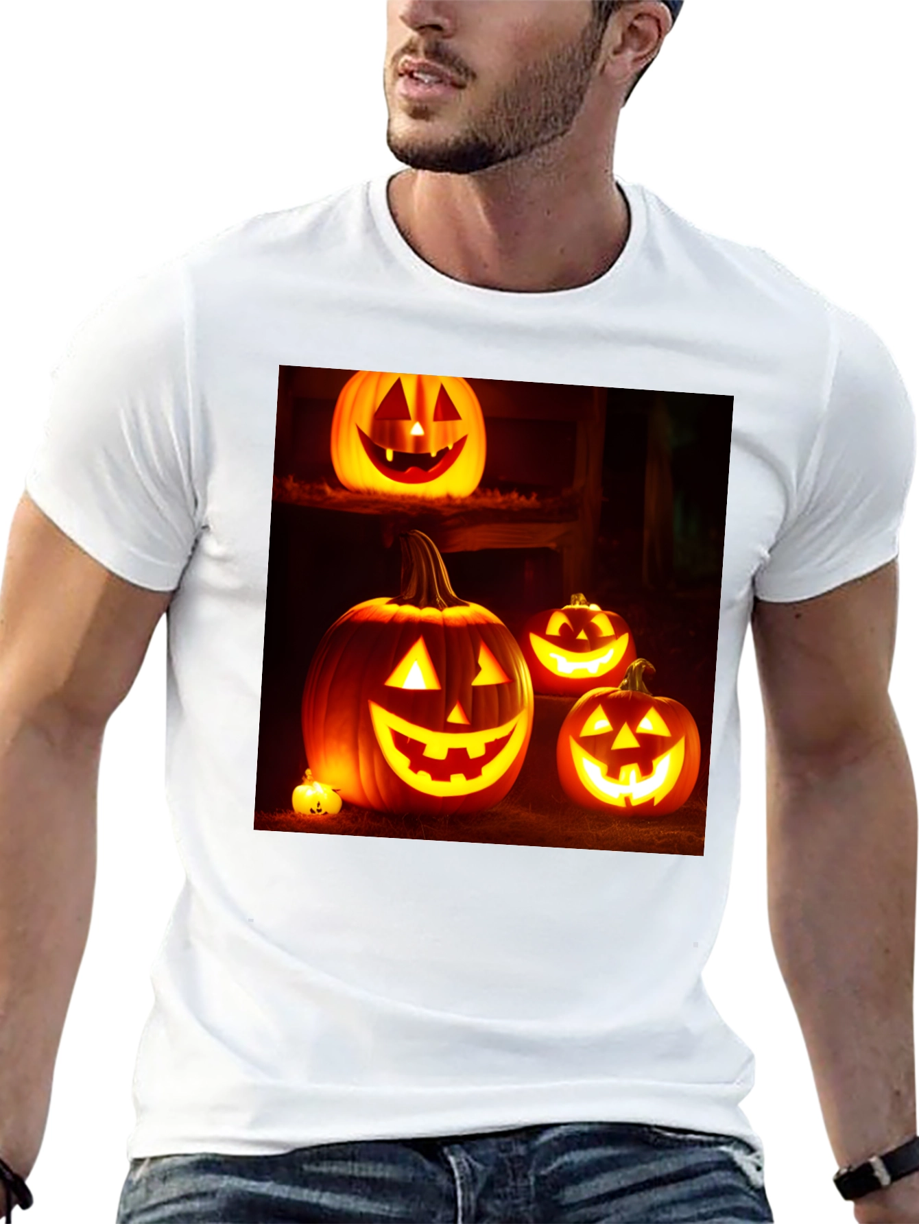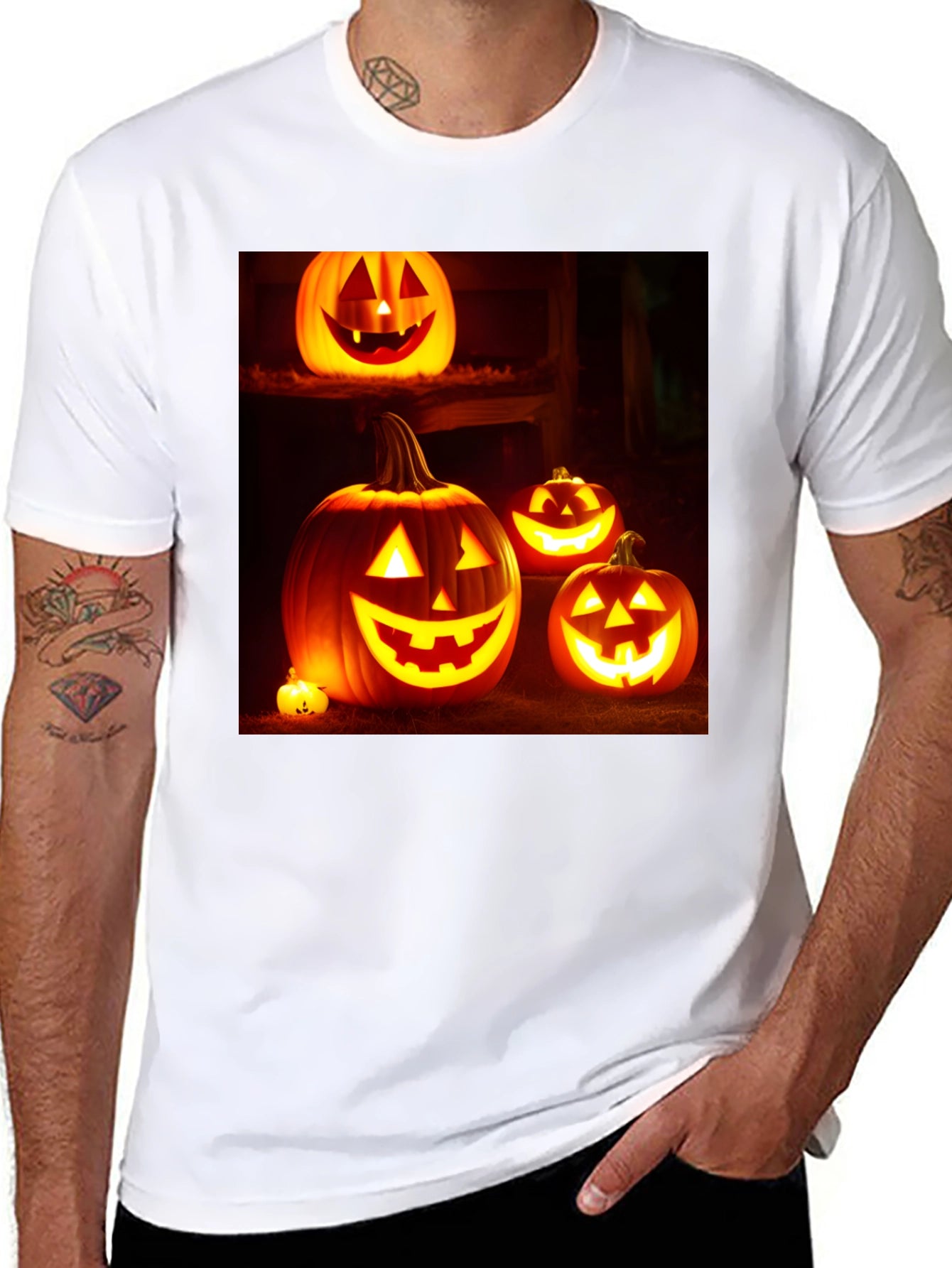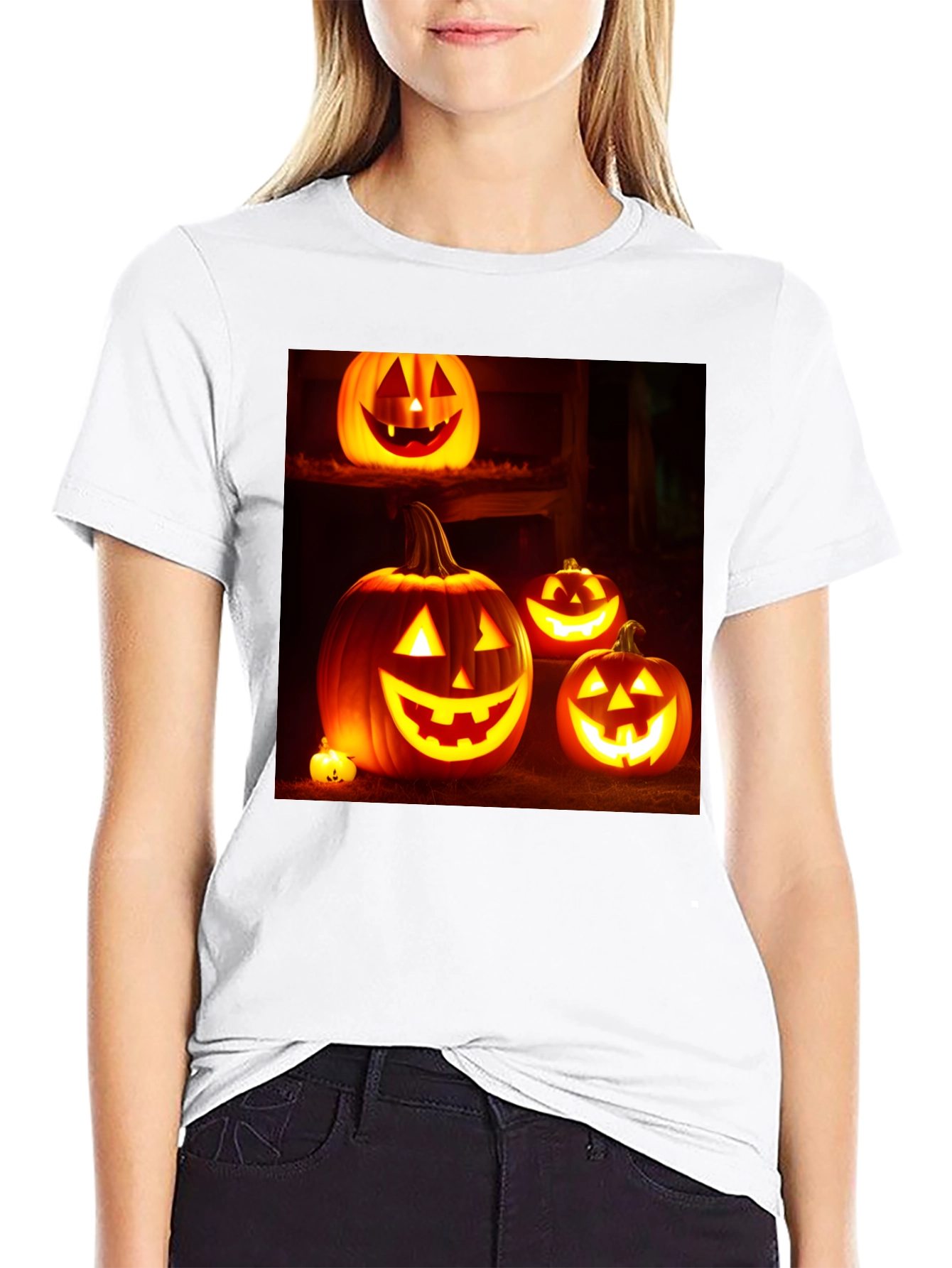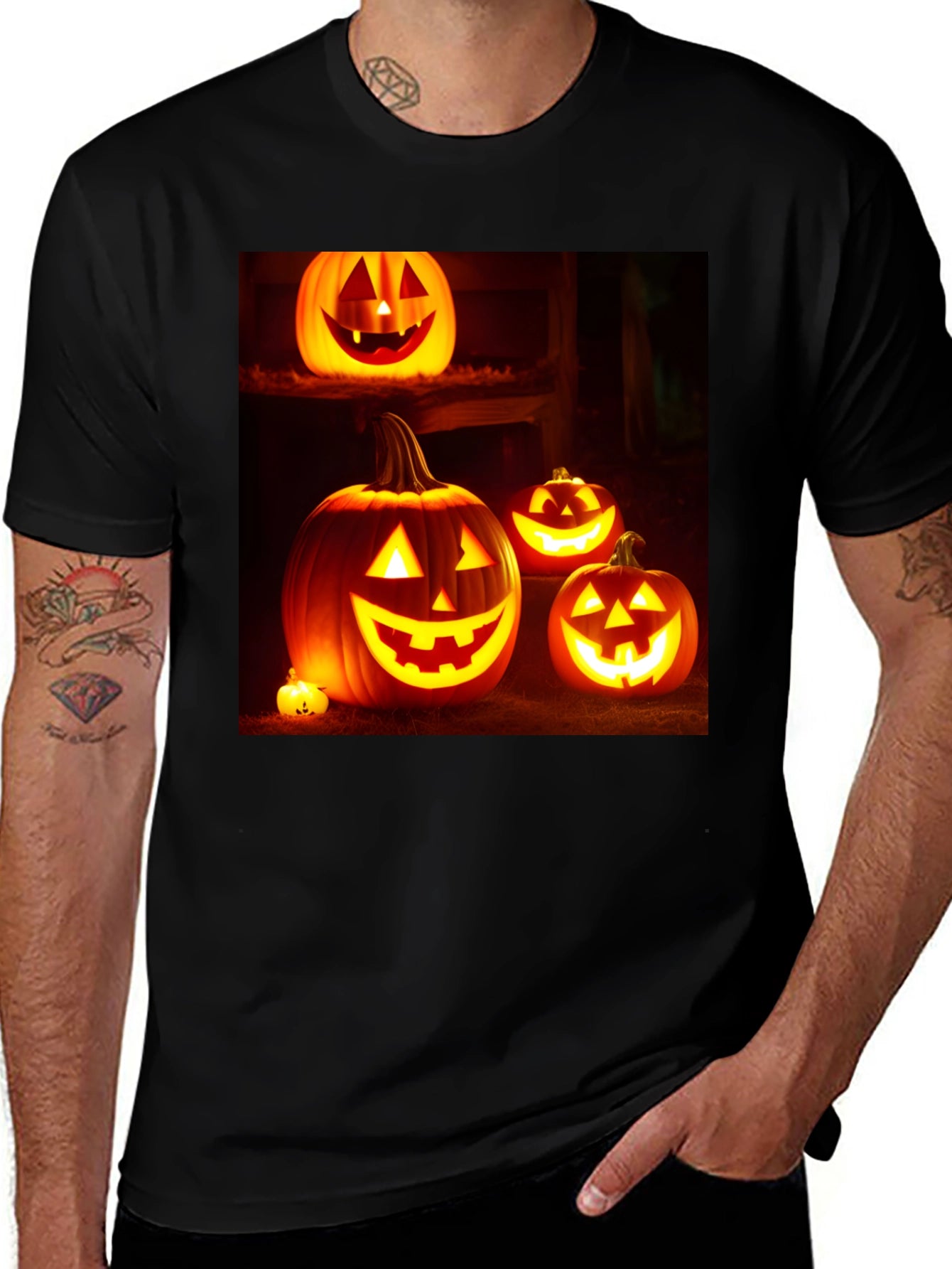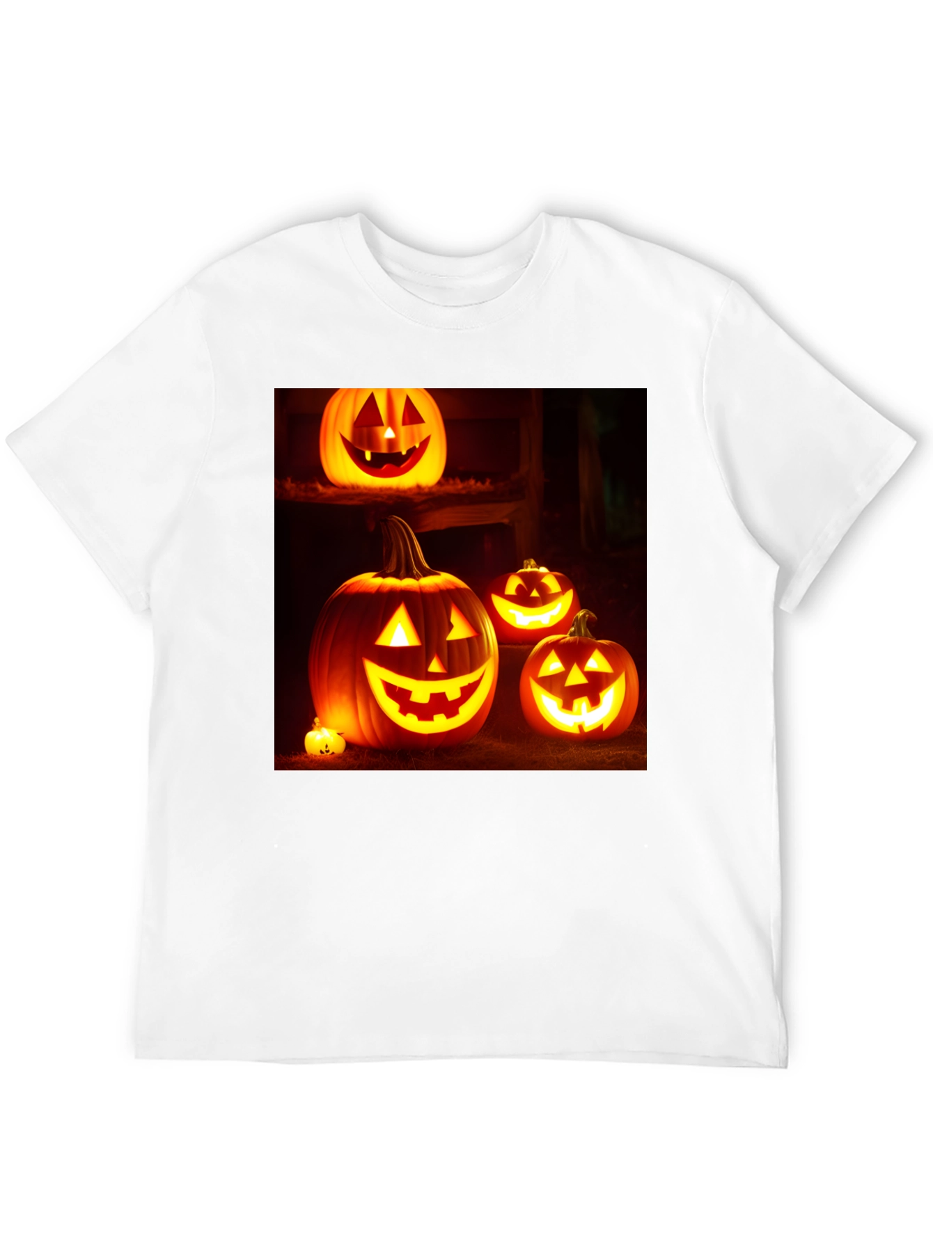 Prepárate para Halloween con esta llamativa camiseta negra. El diseño presenta un conjunto de calabazas iluminadas con expresiones festivas, perfectas para la noche de brujas. Fabricada con un tejido suave y cómodo, esta camiseta es ideal para llevar a fiestas, pedir dulces o simplemente para celebrar la temporada. Su diseño vibrante y oscuro la convierte en una prenda versátil para combinar con tus disfraces o para lucir un estilo casual con un toque espeluznante. Una excelente opción para los amantes de Halloween que buscan un atuendo cómodo y con estilo.