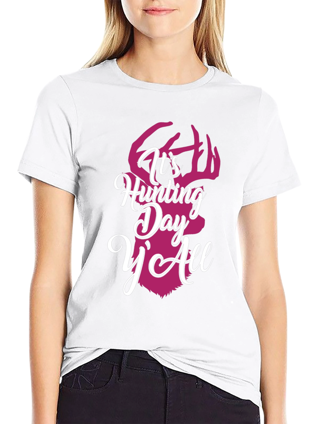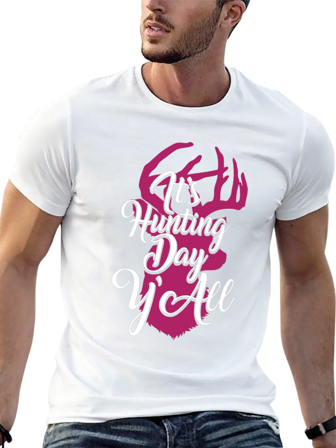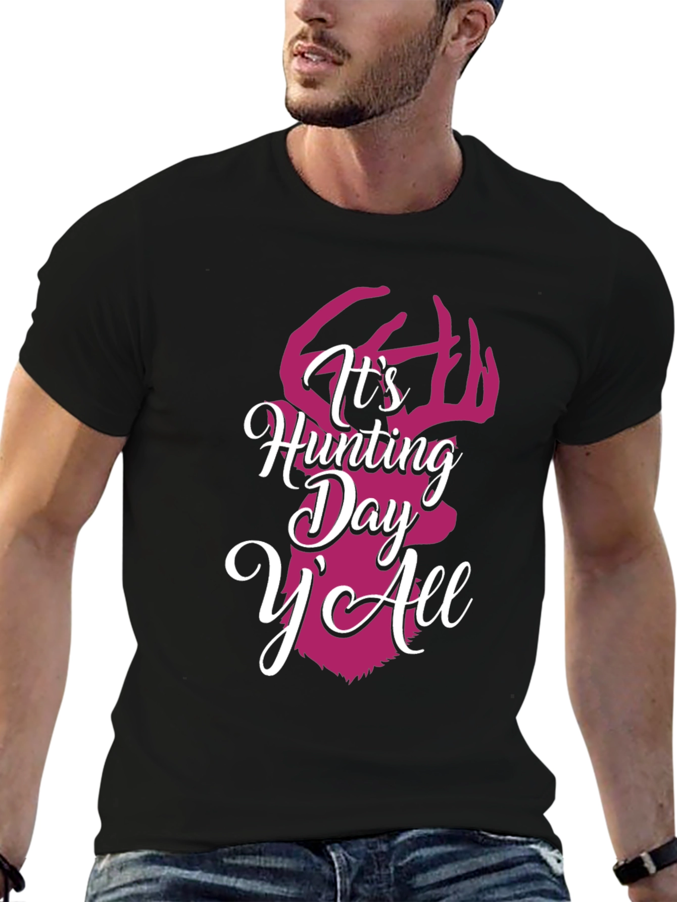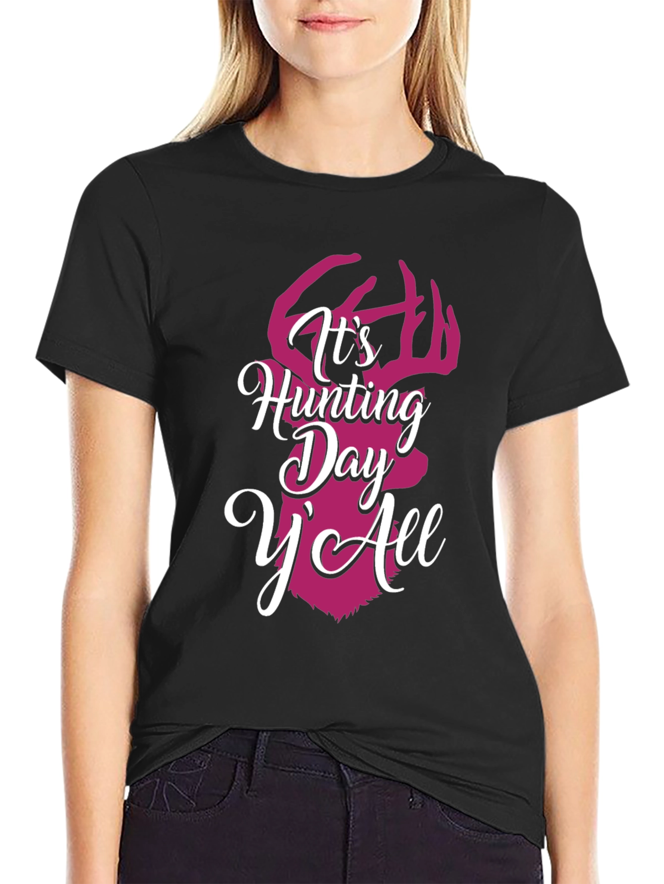 ¡Prepárate para la temporada de caza con esta camiseta de moda! Esta camiseta negra presenta un llamativo diseño con la frase "It's Hunting Day Y'All" sobre una silueta de cabeza de ciervo en color fucsia. El diseño elegante y divertido es perfecto para los amantes de la caza que quieren mostrar su pasión. La camiseta es ideal para usar durante las cacerías, en eventos al aire libre, o simplemente para el uso diario, esta camiseta seguramente llamará la atención. Confeccionada con materiales suaves y cómodos, esta camiseta es una excelente opción para cualquier aficionado a la caza.