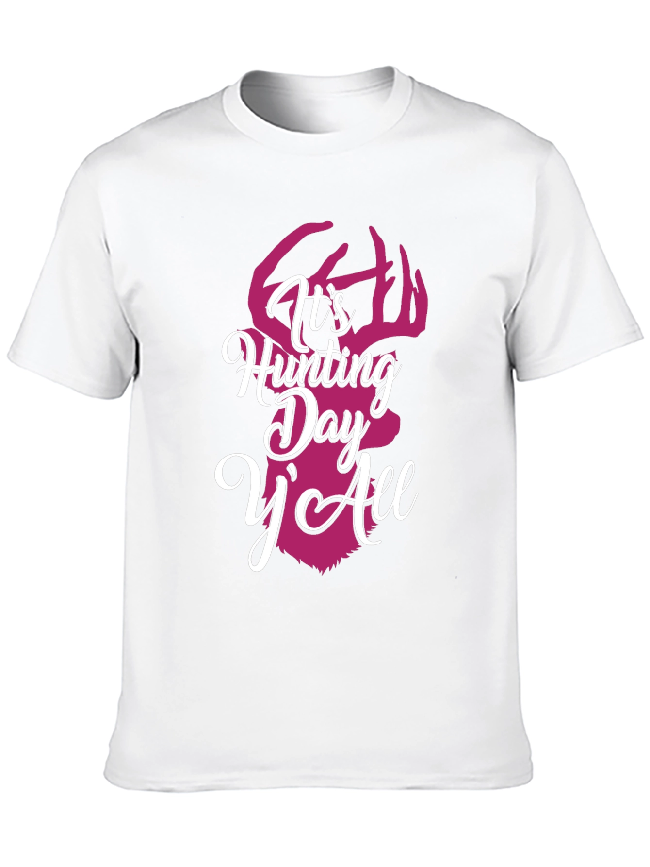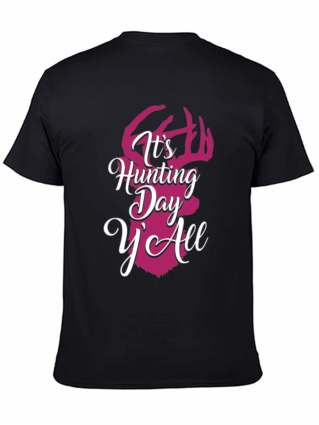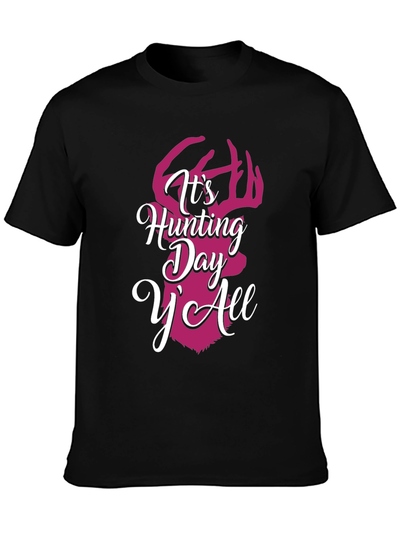 ¡Prepárate para la temporada de caza con esta camiseta de moda! Esta camiseta negra presenta un llamativo diseño con la frase "It's Hunting Day Y'All" sobre una silueta de cabeza de ciervo en color fucsia. El diseño elegante y divertido es perfecto para los amantes de la caza que quieren mostrar su pasión. La camiseta es ideal para usar durante las cacerías, en eventos al aire libre, o simplemente para el uso diario, esta camiseta seguramente llamará la atención. Confeccionada con materiales suaves y cómodos, esta camiseta es una excelente opción para cualquier aficionado a la caza.