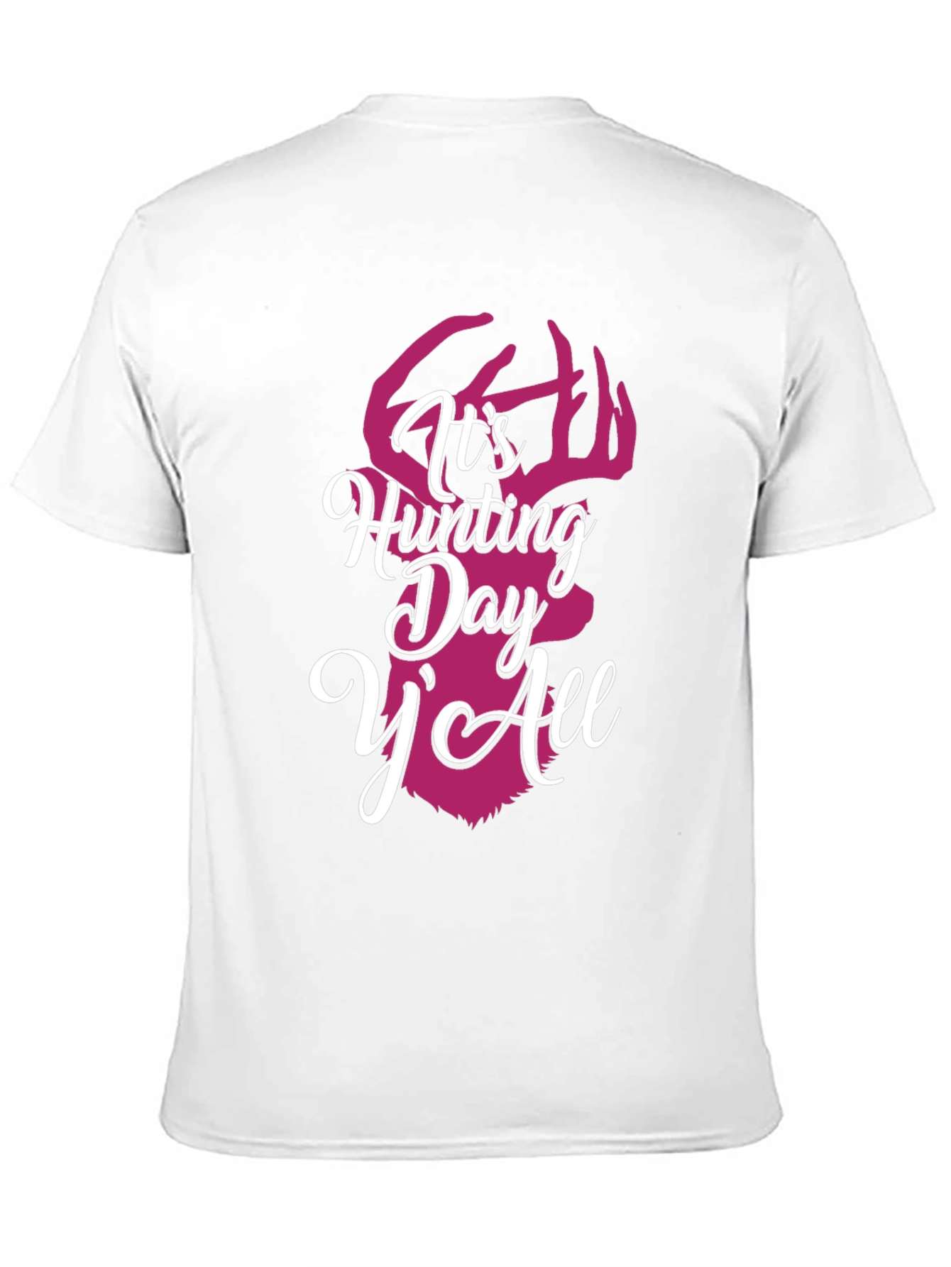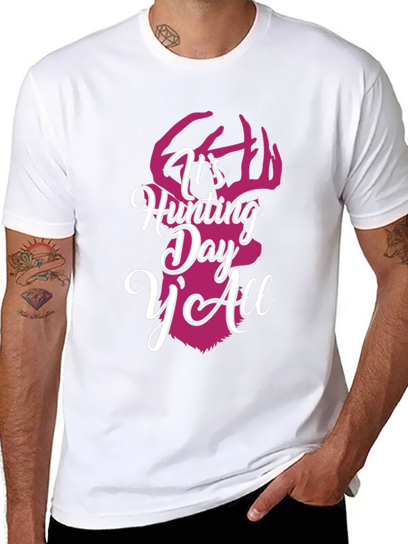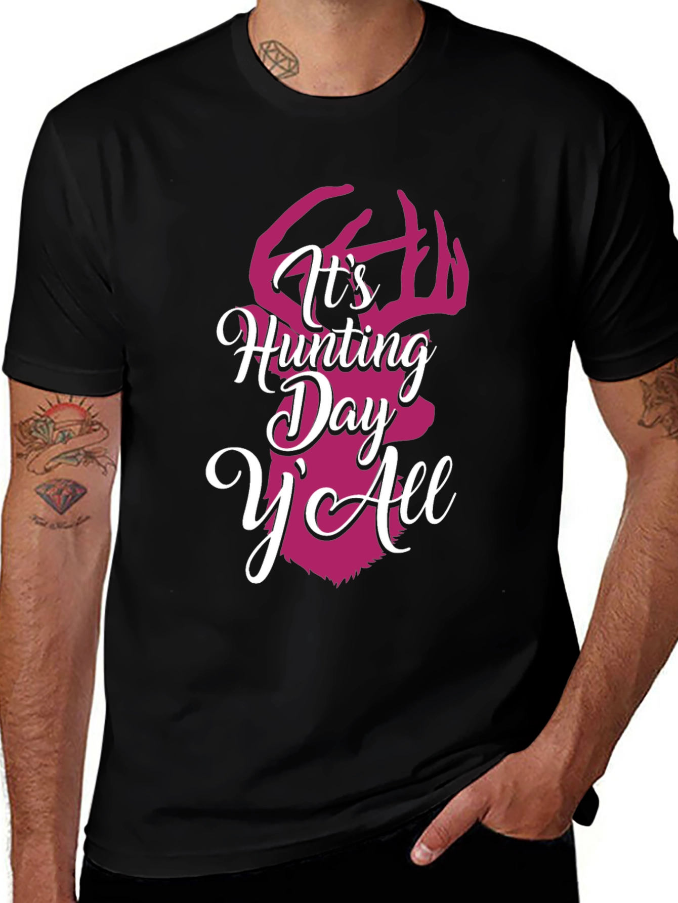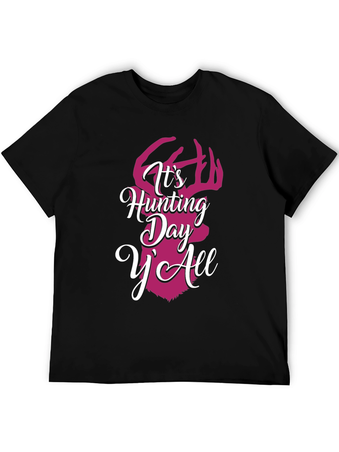 ¡Prepárate para la temporada de caza con esta camiseta de moda! Esta camiseta negra presenta un llamativo diseño con la frase "It's Hunting Day Y'All" sobre una silueta de cabeza de ciervo en color fucsia. El diseño elegante y divertido es perfecto para los amantes de la caza que quieren mostrar su pasión. La camiseta es ideal para usar durante las cacerías, en eventos al aire libre, o simplemente para el uso diario, esta camiseta seguramente llamará la atención. Confeccionada con materiales suaves y cómodos, esta camiseta es una excelente opción para cualquier aficionado a la caza.
