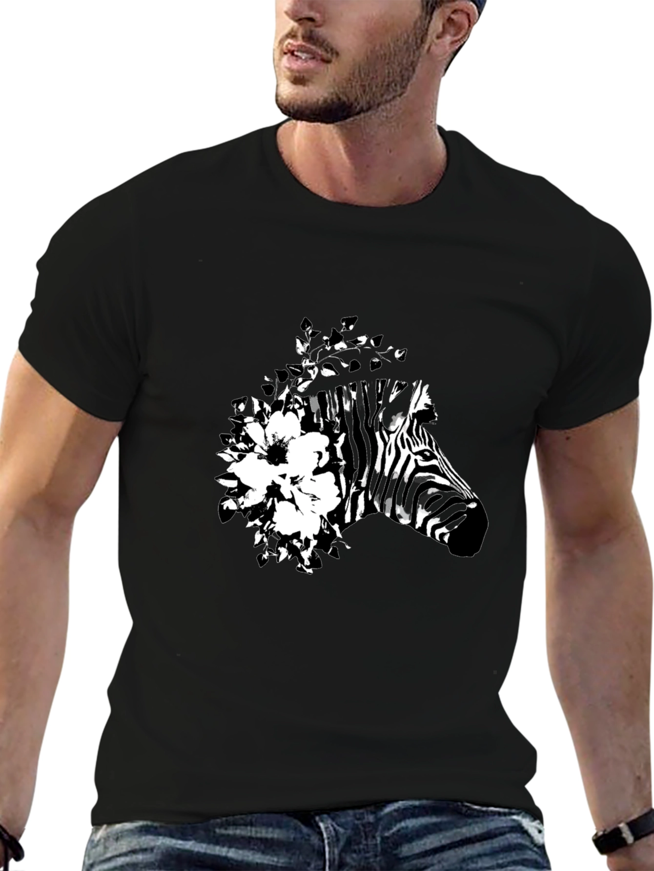 Luce un estilo único con esta moderna camiseta negra. Destaca un llamativo diseño de una cebra con detalles florales en blanco y negro. Confeccionada con un material suave y cómodo, esta camiseta de corte clásico es perfecta para el uso diario. Ideal para expresar tu personalidad y amor por la naturaleza. Combina esta camiseta con tus jeans favoritos para un look casual y relajado. Una prenda imprescindible en tu guardarropa para un toque de originalidad y estilo. ¡Atrévete a destacar con esta increíble camiseta de cebra floral!