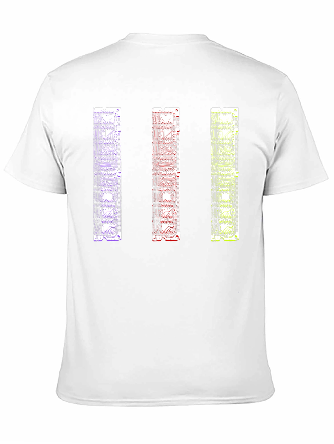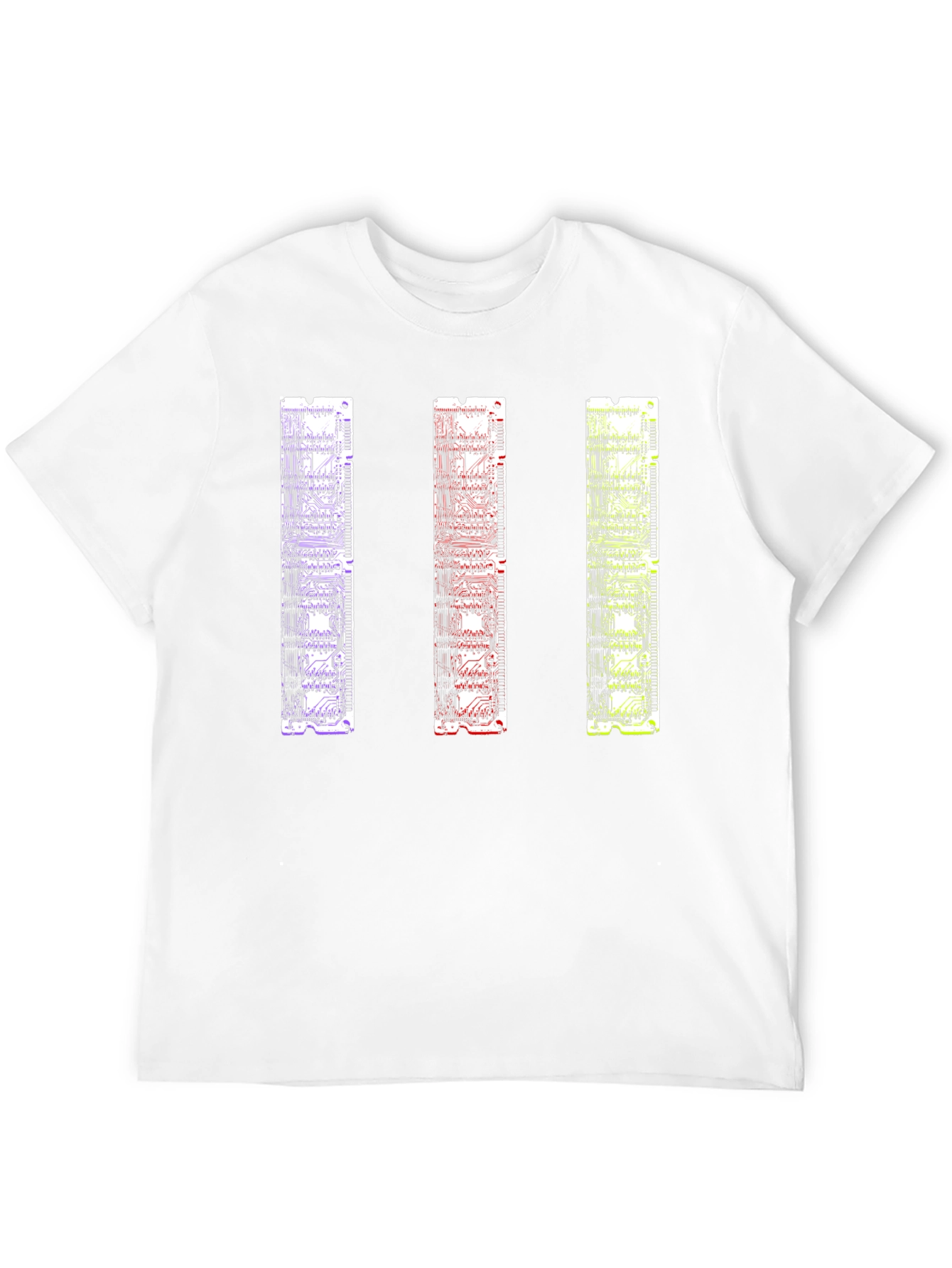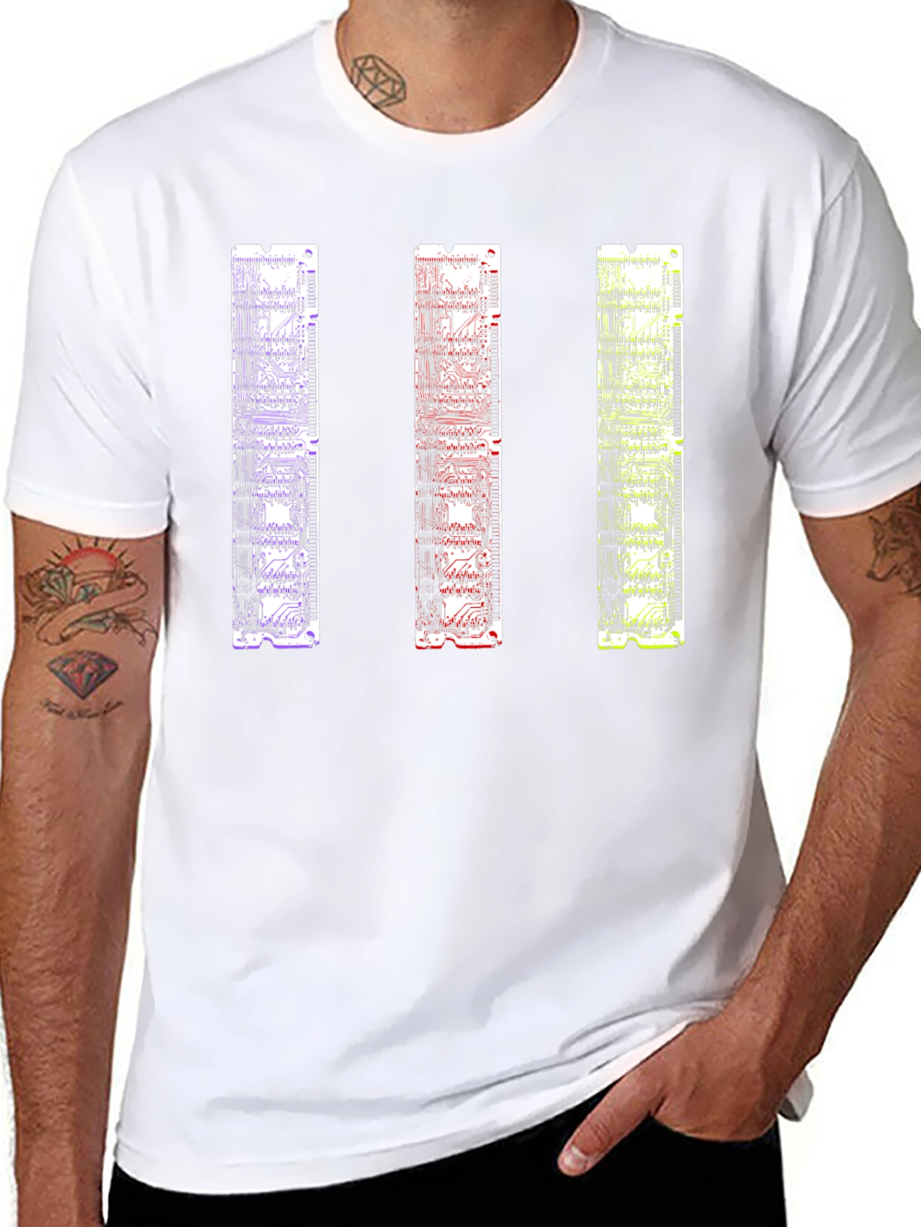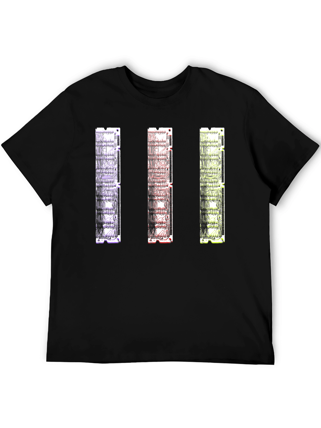 Esta camiseta negra presenta un diseño llamativo y moderno de tres módulos de memoria RAM abstractos y coloridos. Fabricada con un tejido suave y cómodo, esta camiseta de corte clásico es perfecta para el uso diario y es ideal para los amantes de la tecnología y la informática. Su diseño único la convierte en una prenda que llamará la atención y mostrará tu pasión por el mundo digital. Combínala con tus jeans favoritos o úsala para eventos informales. Un regalo perfecto para programadores, ingenieros y gamers.