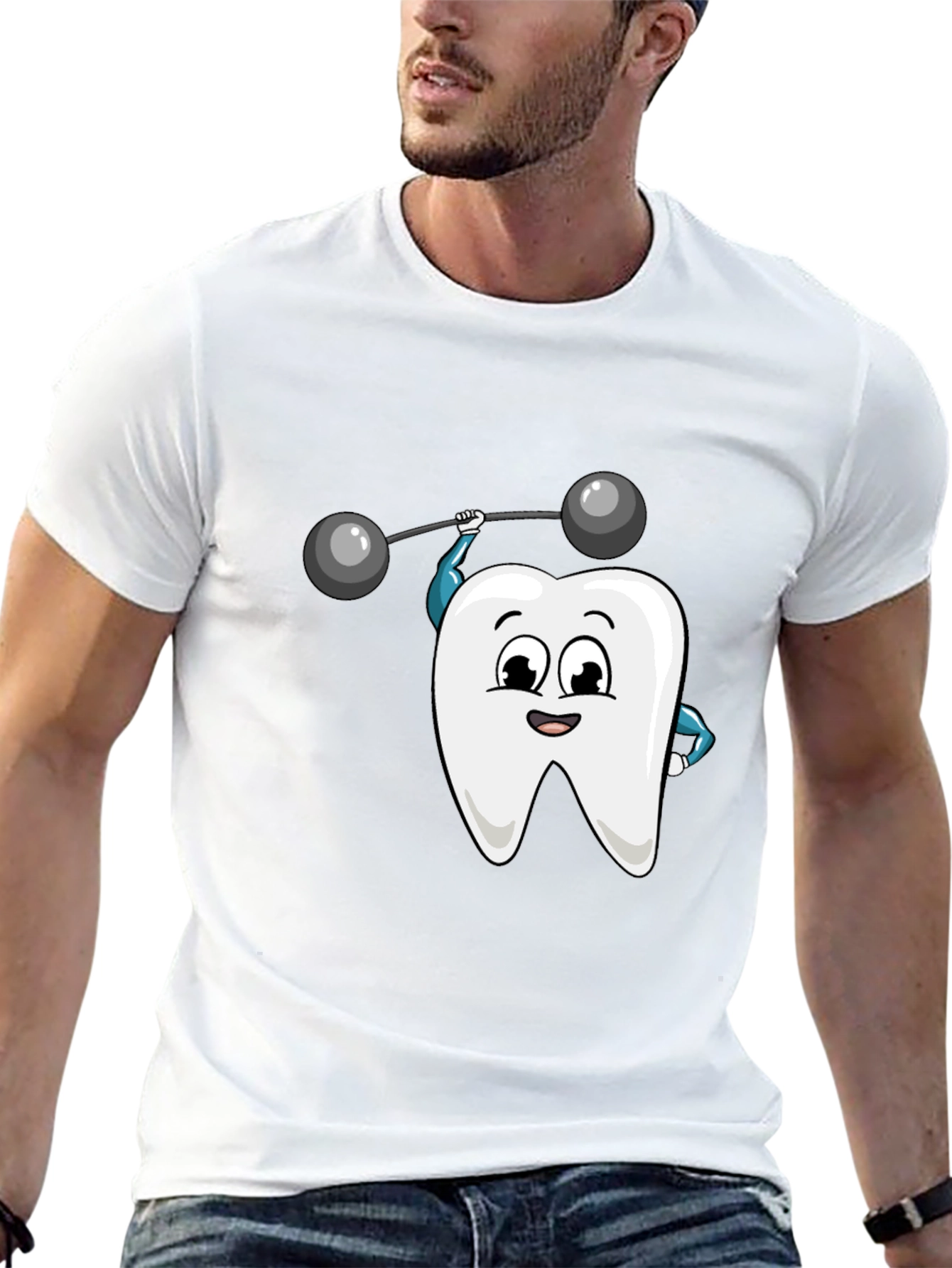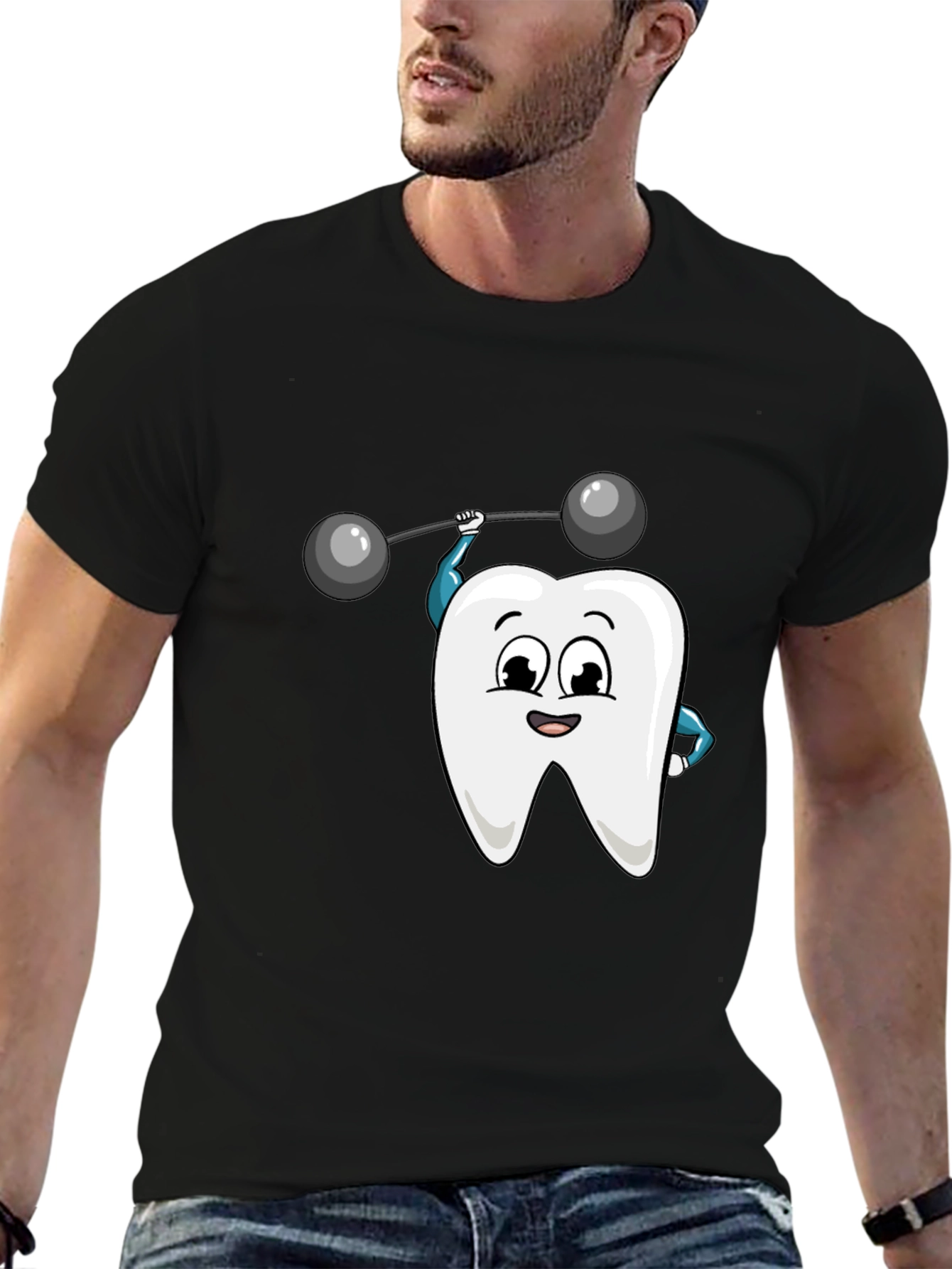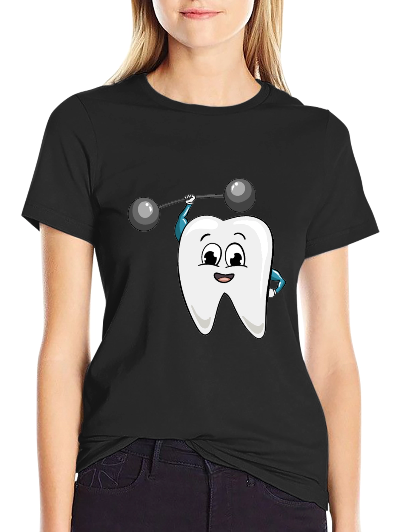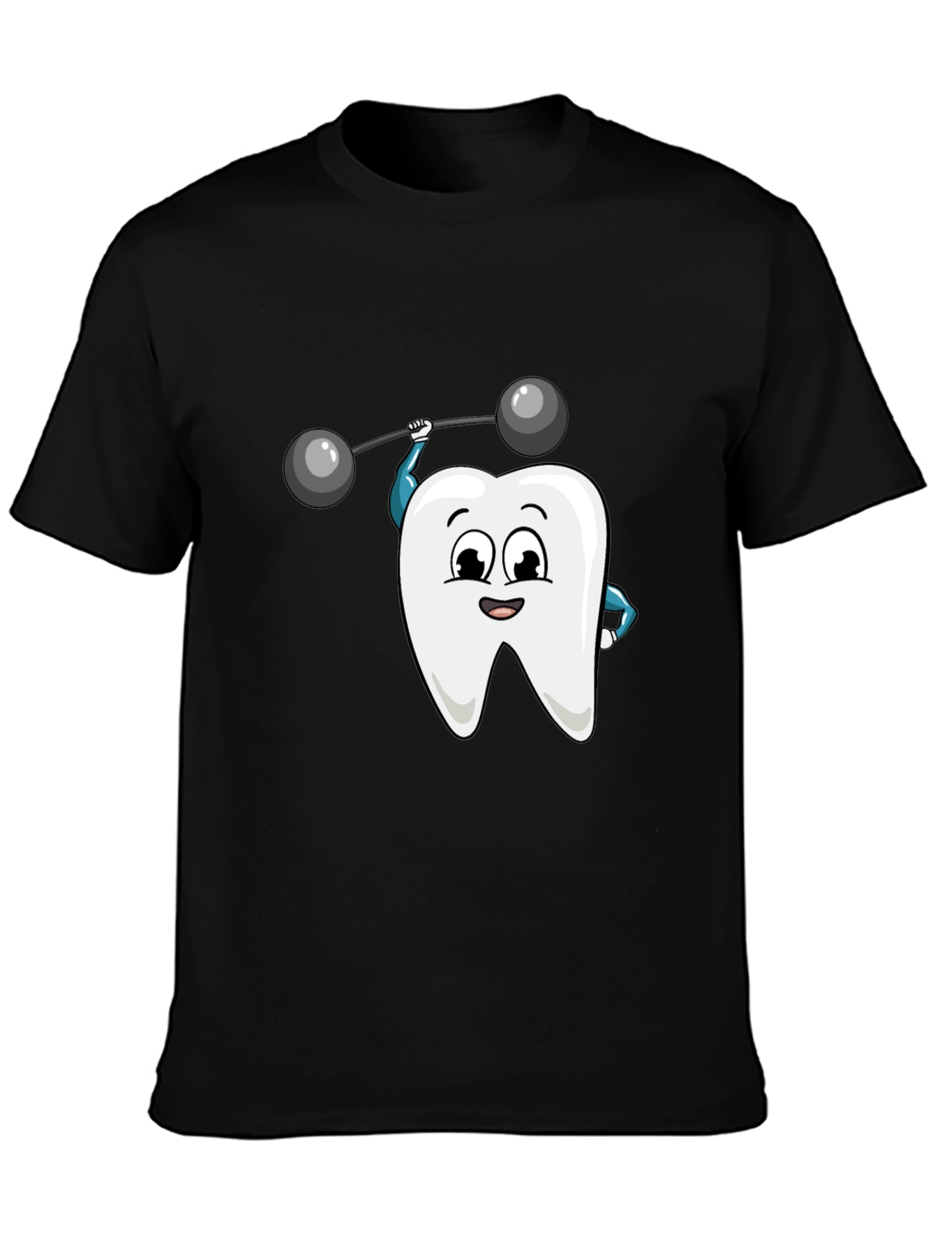 Luce un estilo divertido y original con esta camiseta negra de manga corta. El diseño presenta un simpático diente animado levantando pesas, perfecto para los amantes del fitness, odontólogos o cualquier persona con un sentido del humor único. Fabricada con un tejido suave y cómodo, esta camiseta es ideal para el uso diario, ya sea para ir al gimnasio, salir con amigos o simplemente relajarte en casa. Su diseño llamativo seguro atraerá miradas y generará conversaciones. Añade un toque de alegría a tu guardarropa con esta divertida y original camiseta.