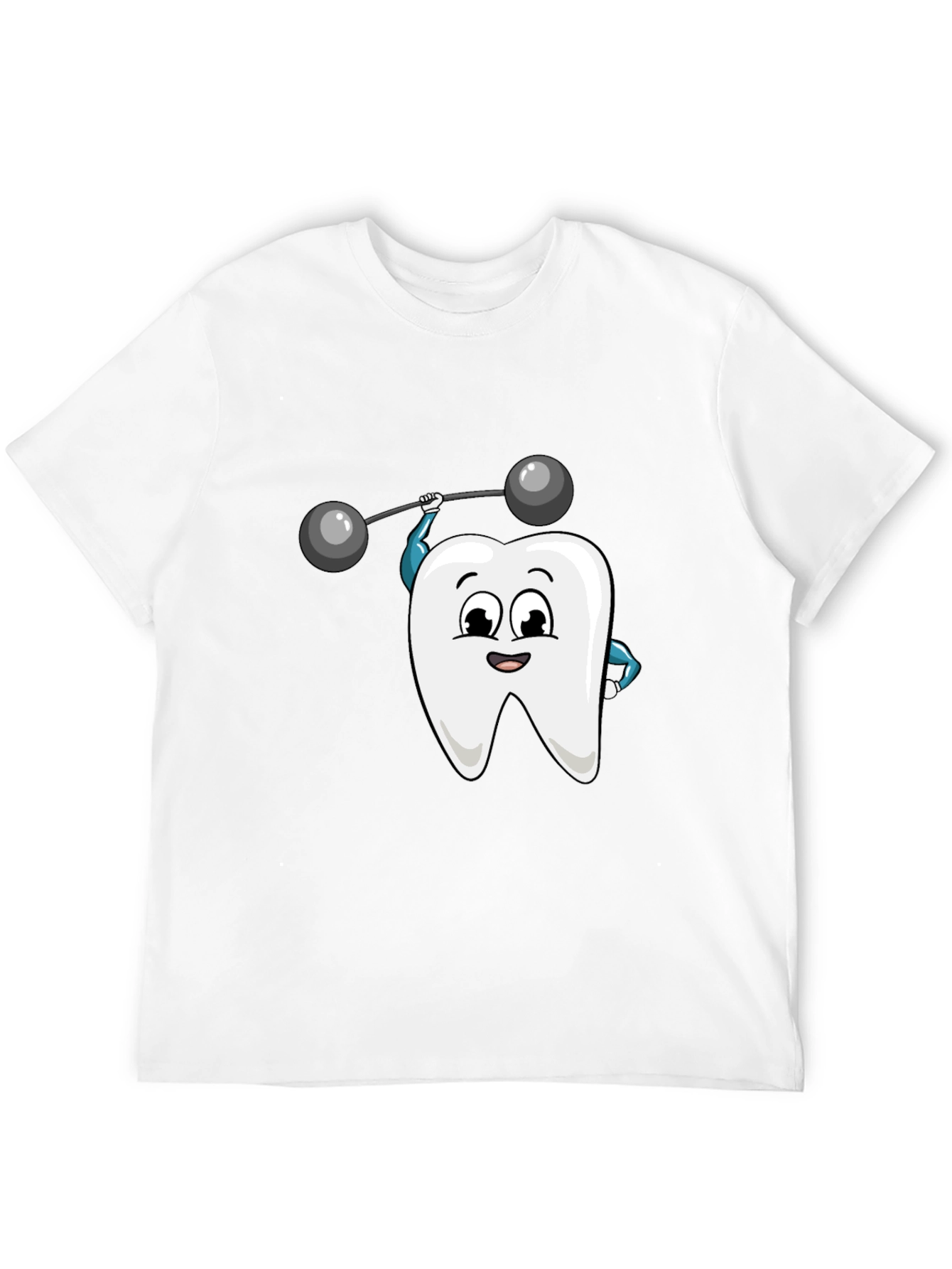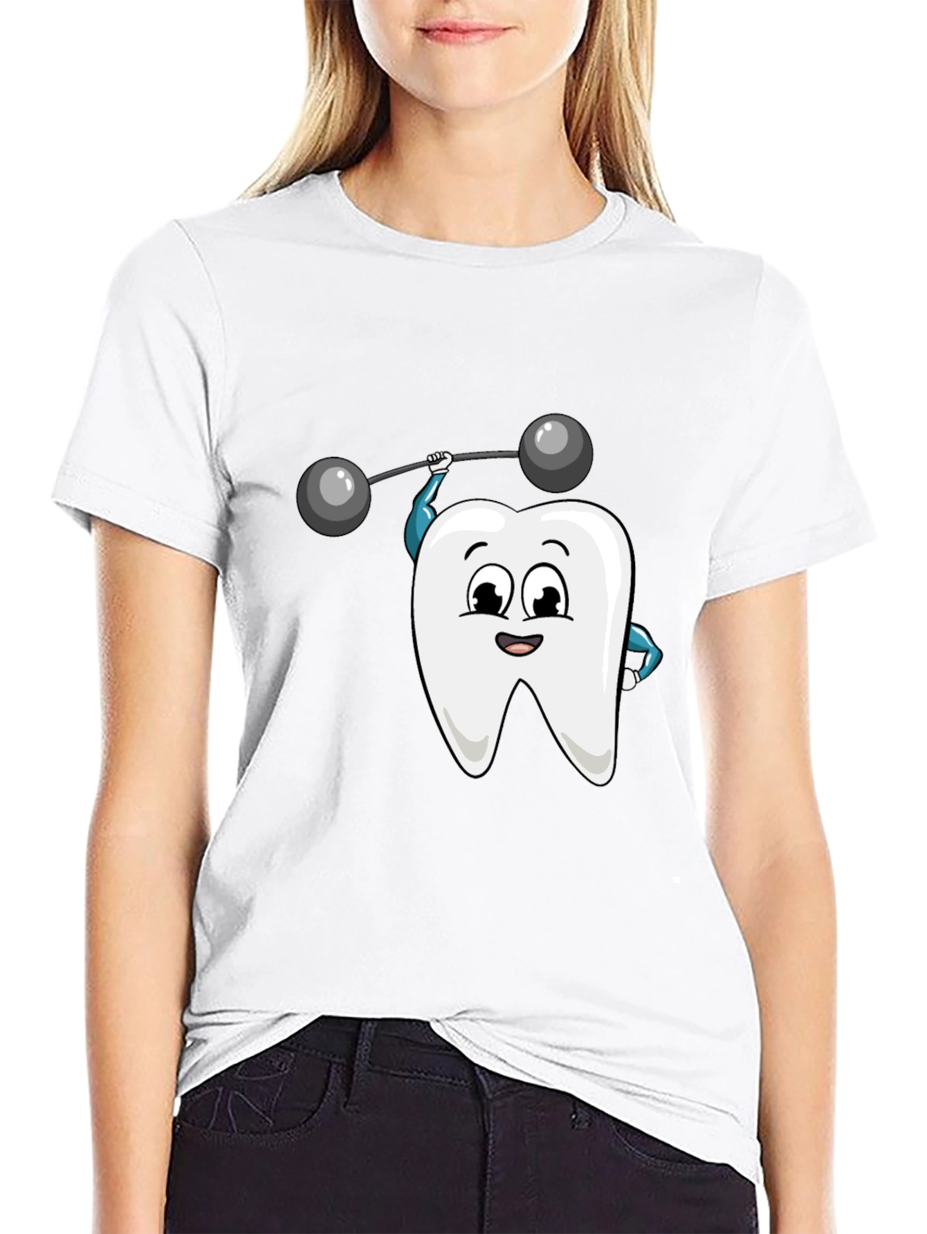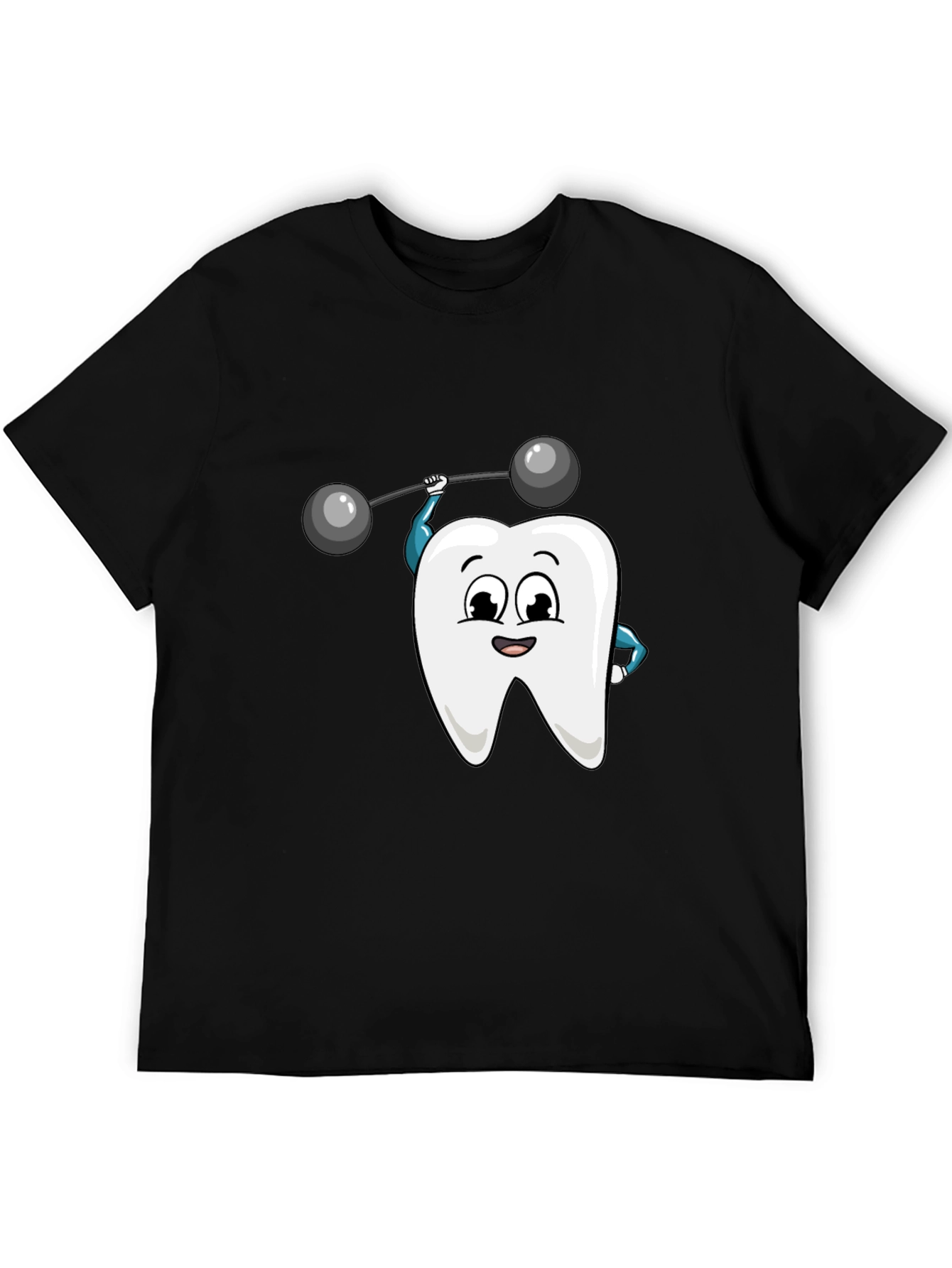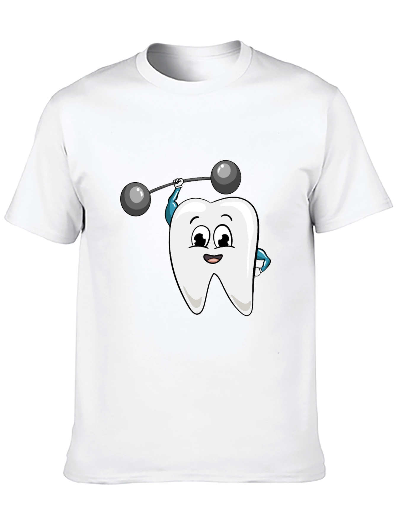 Luce un estilo divertido y original con esta camiseta negra de manga corta. El diseño presenta un simpático diente animado levantando pesas, perfecto para los amantes del fitness, odontólogos o cualquier persona con un sentido del humor único. Fabricada con un tejido suave y cómodo, esta camiseta es ideal para el uso diario, ya sea para ir al gimnasio, salir con amigos o simplemente relajarte en casa. Su diseño llamativo seguro atraerá miradas y generará conversaciones. Añade un toque de alegría a tu guardarropa con esta divertida y original camiseta.