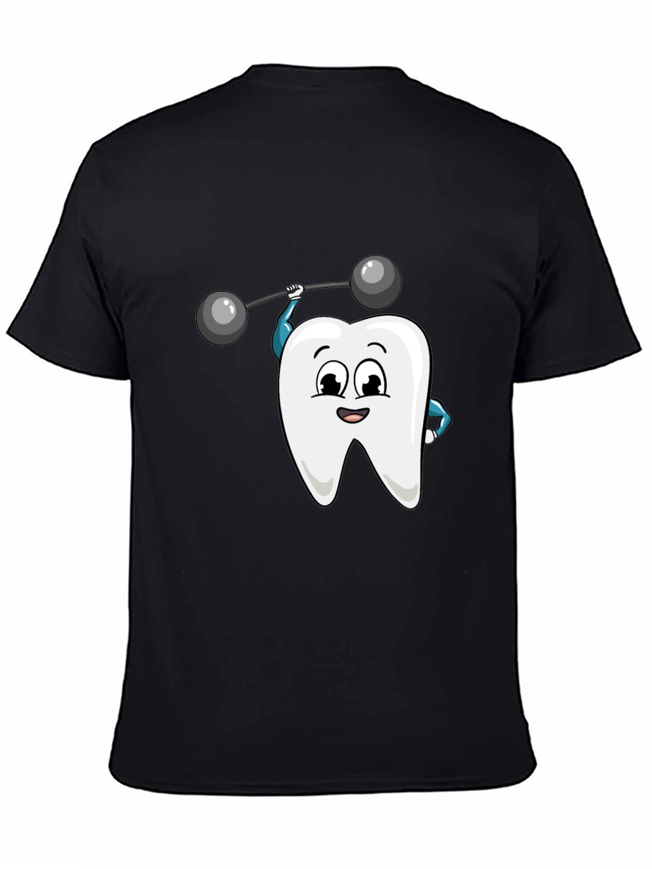 Camiseta Negra con Diseño de Diente Levantando Pesas