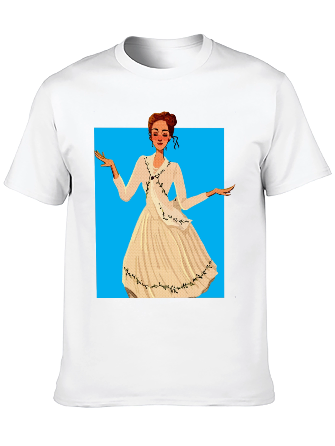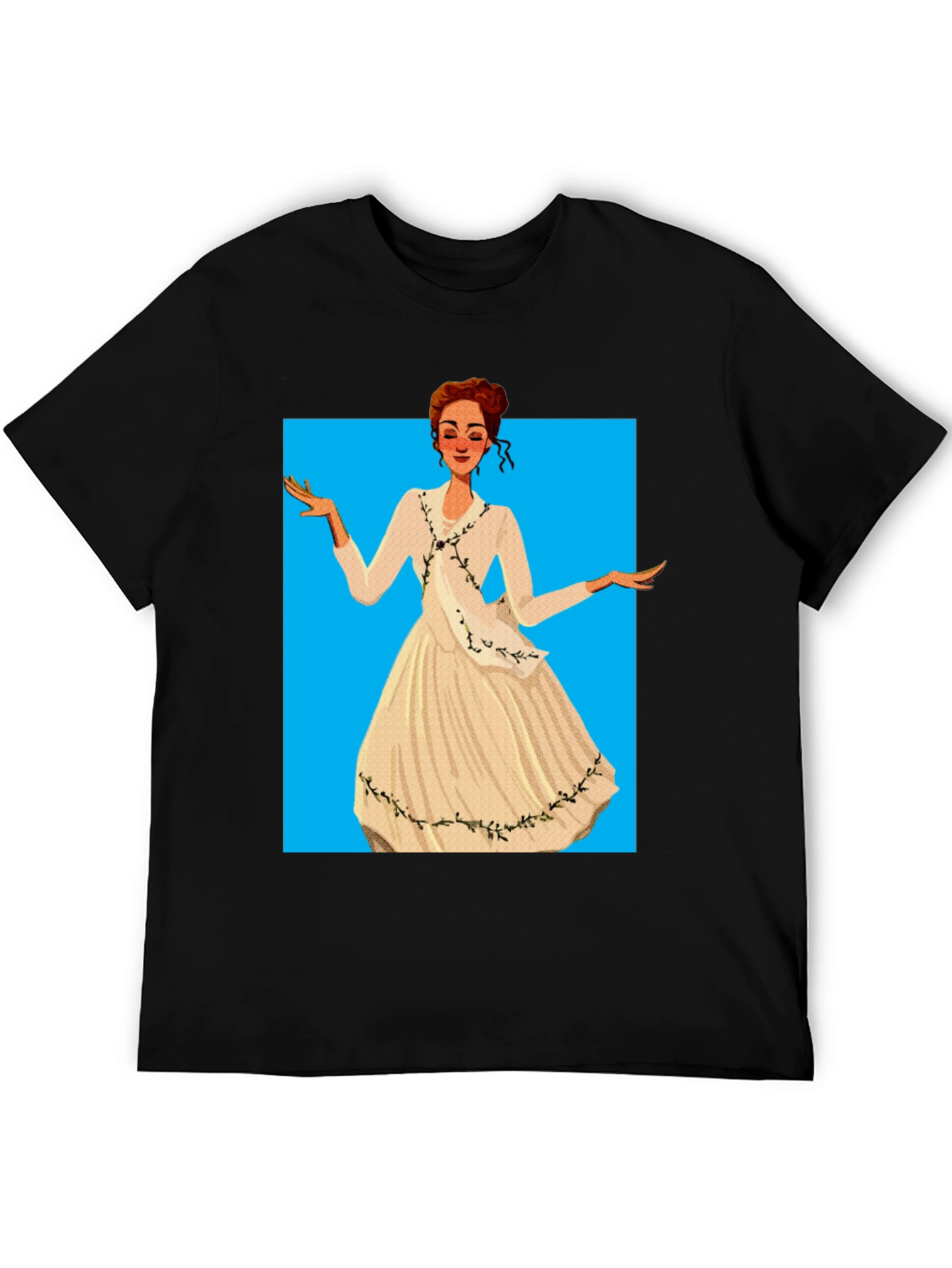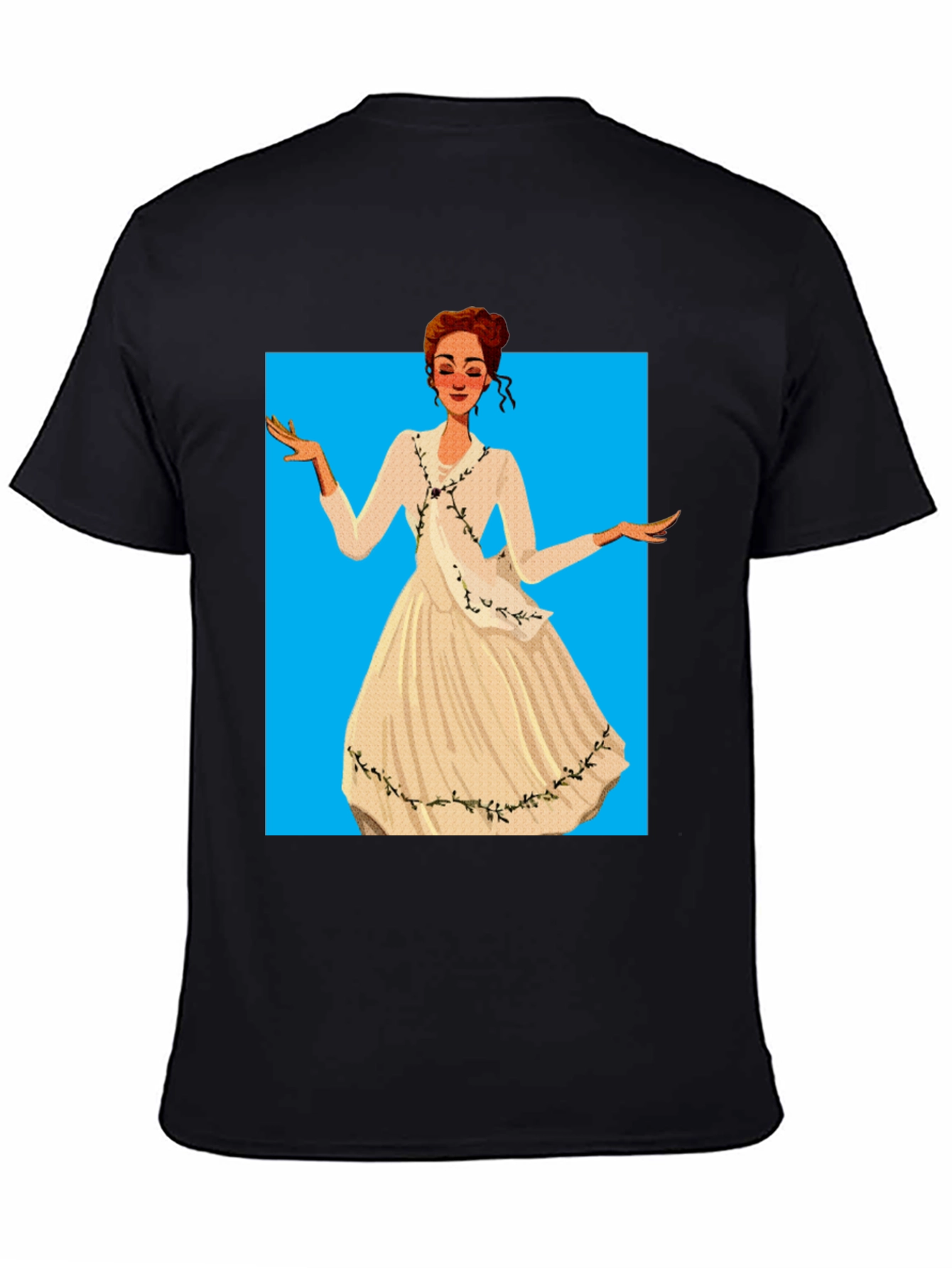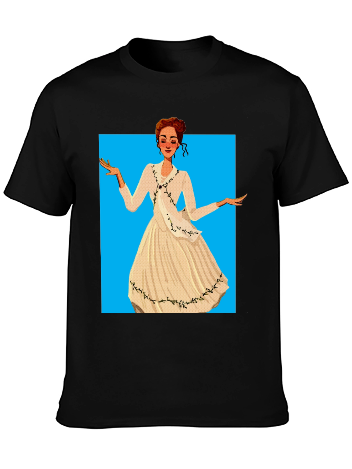 Luce esta elegante camiseta negra con un diseño vintage de una mujer en un vestido blanco adornado con motivos florales. La imagen, con un fondo azul llamativo, evoca un estilo clásico y refinado. Fabricada con materiales suaves y cómodos, esta camiseta es perfecta para uso diario o para ocasiones especiales donde quieras destacar con un toque de distinción. Ideal para combinar con jeans, faldas o pantalones formales, esta prenda te permitirá expresar tu personalidad única y tu gusto por la moda atemporal. ¡Añade un toque de sofisticación a tu guardarropa con esta camiseta excepcional!