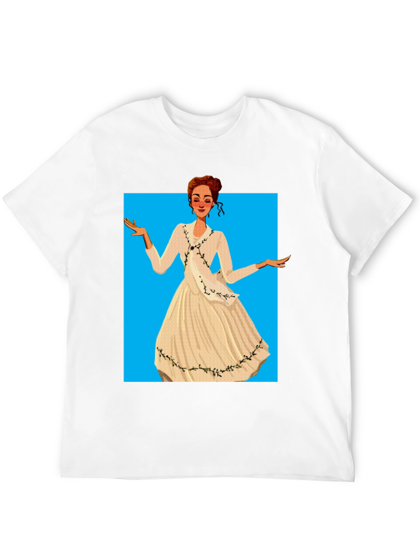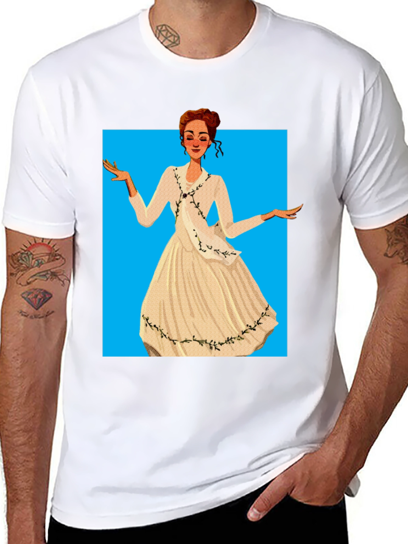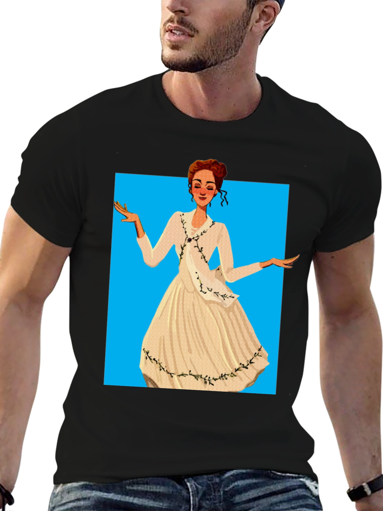 Luce esta elegante camiseta negra con un diseño vintage de una mujer en un vestido blanco adornado con motivos florales. La imagen, con un fondo azul llamativo, evoca un estilo clásico y refinado. Fabricada con materiales suaves y cómodos, esta camiseta es perfecta para uso diario o para ocasiones especiales donde quieras destacar con un toque de distinción. Ideal para combinar con jeans, faldas o pantalones formales, esta prenda te permitirá expresar tu personalidad única y tu gusto por la moda atemporal. ¡Añade un toque de sofisticación a tu guardarropa con esta camiseta excepcional!