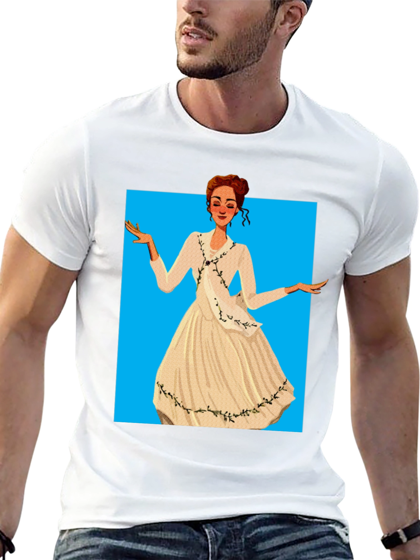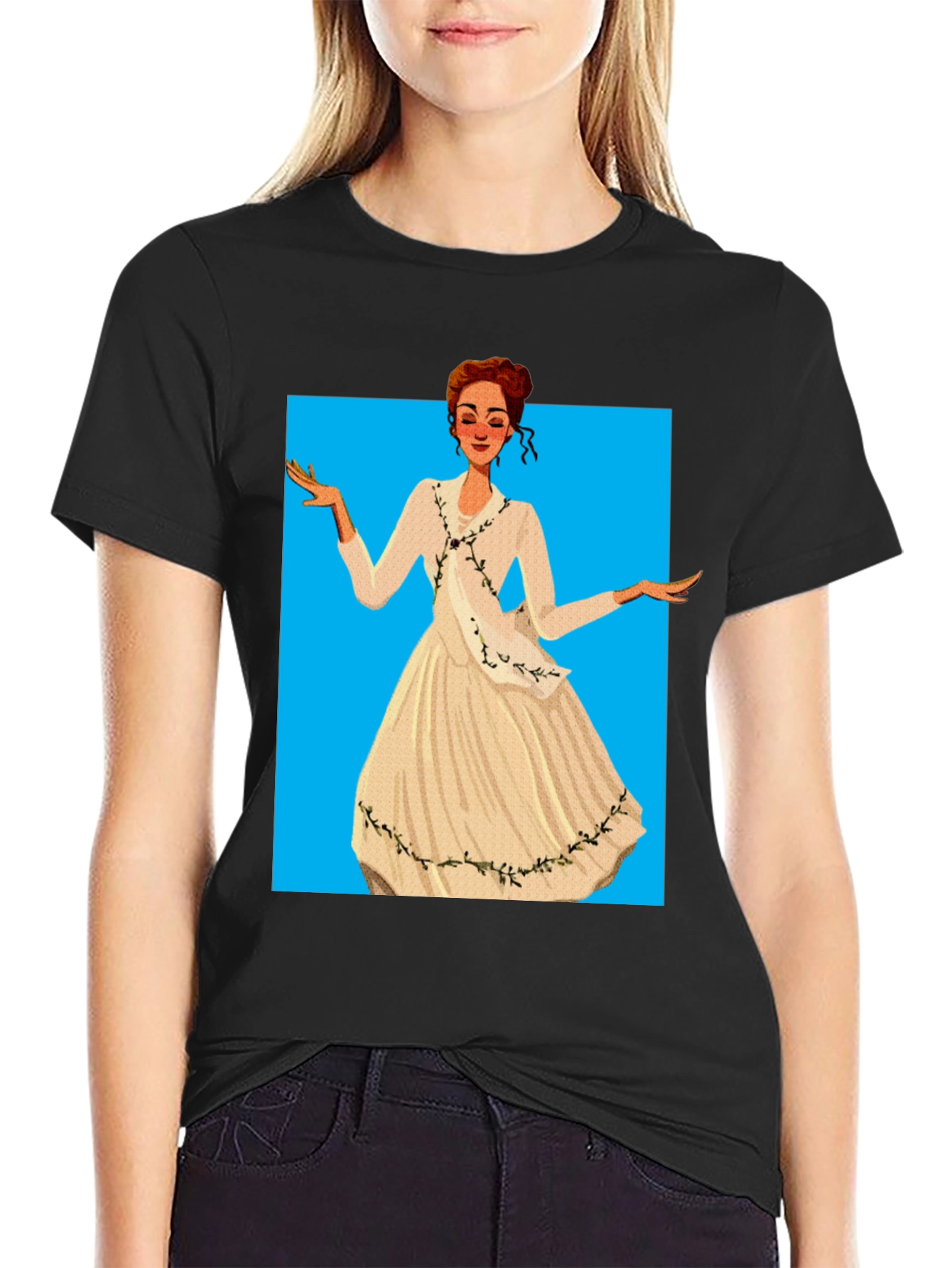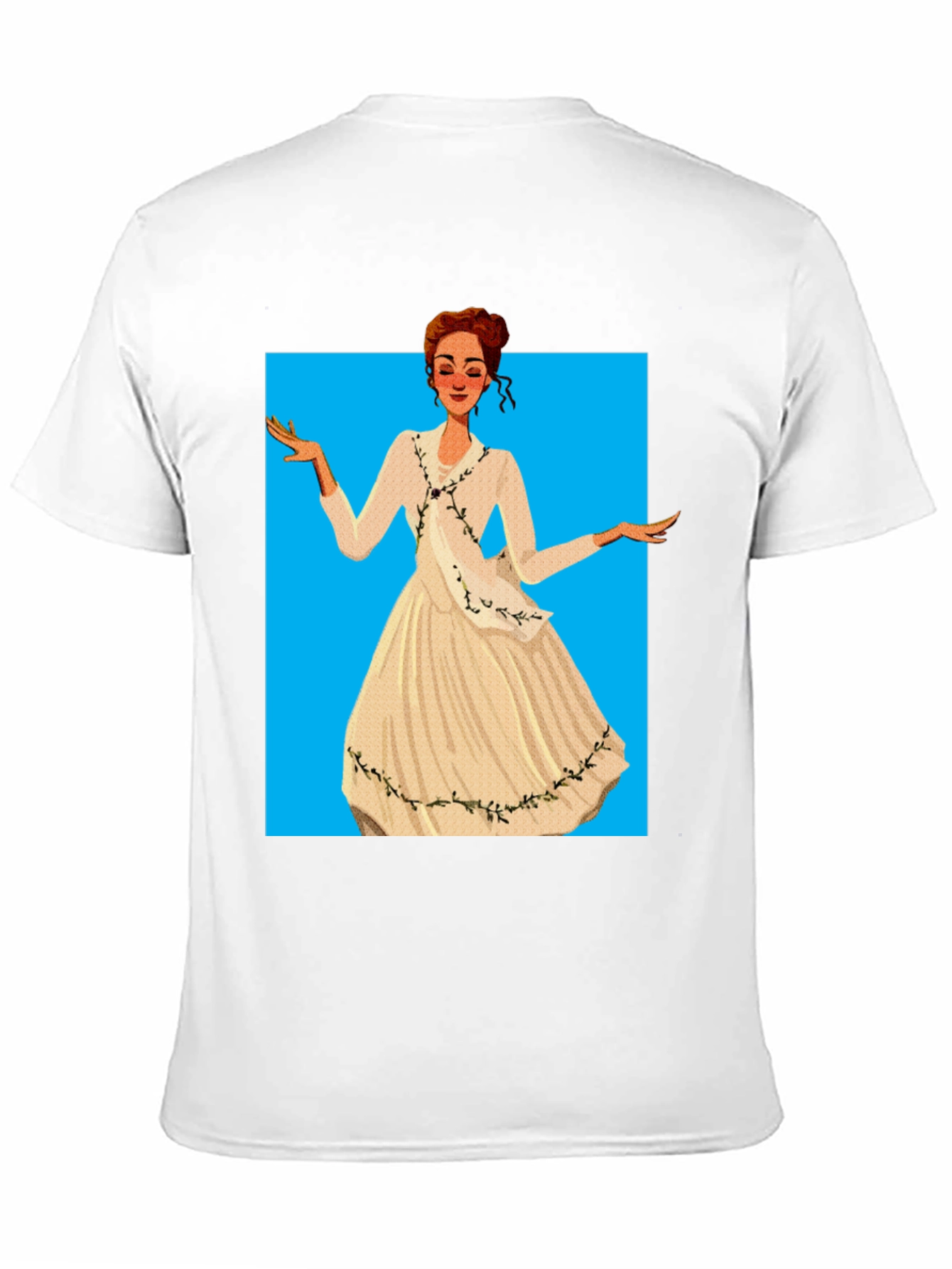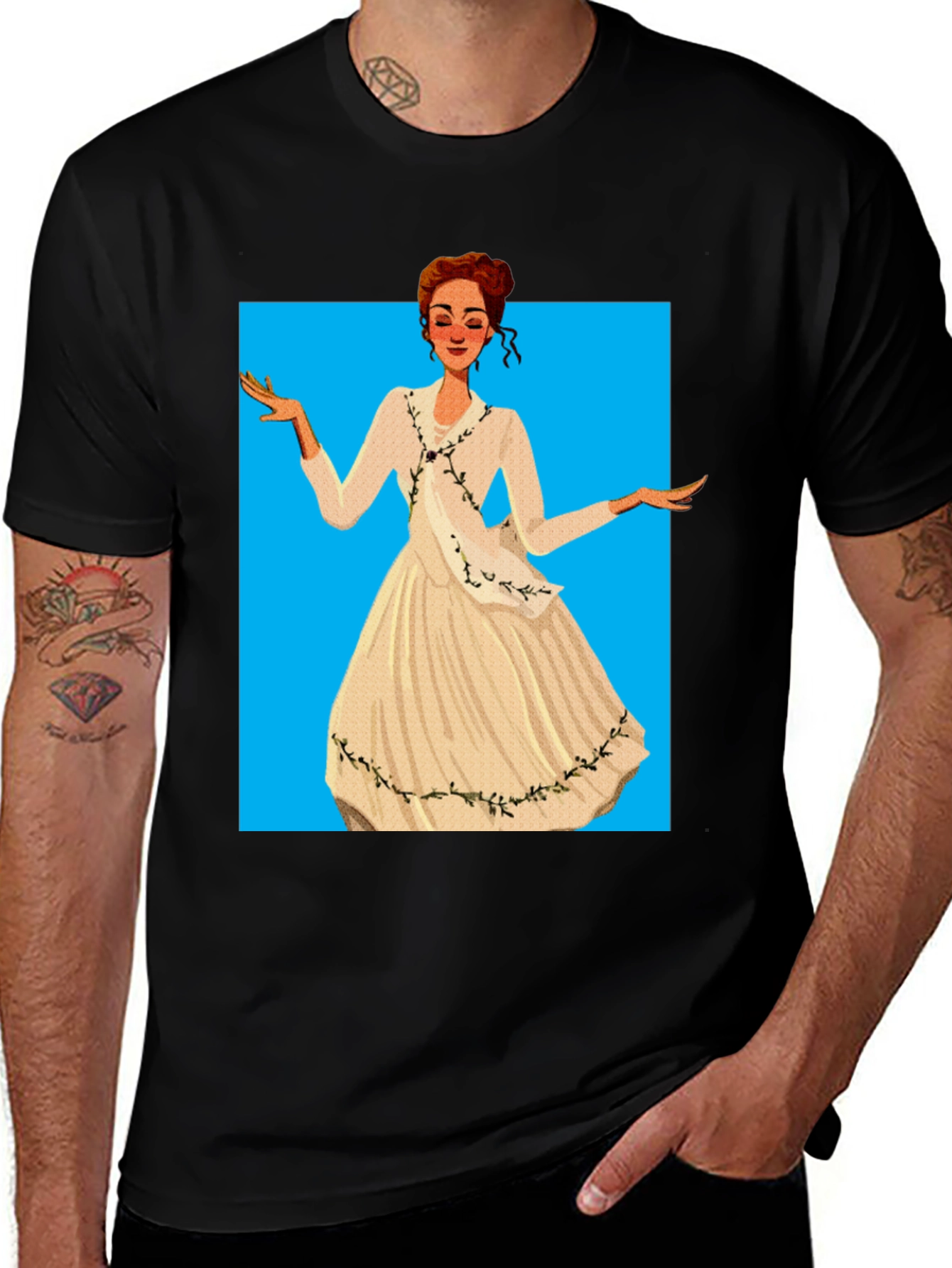 Luce esta elegante camiseta negra con un diseño vintage de una mujer en un vestido blanco adornado con motivos florales. La imagen, con un fondo azul llamativo, evoca un estilo clásico y refinado. Fabricada con materiales suaves y cómodos, esta camiseta es perfecta para uso diario o para ocasiones especiales donde quieras destacar con un toque de distinción. Ideal para combinar con jeans, faldas o pantalones formales, esta prenda te permitirá expresar tu personalidad única y tu gusto por la moda atemporal. ¡Añade un toque de sofisticación a tu guardarropa con esta camiseta excepcional!