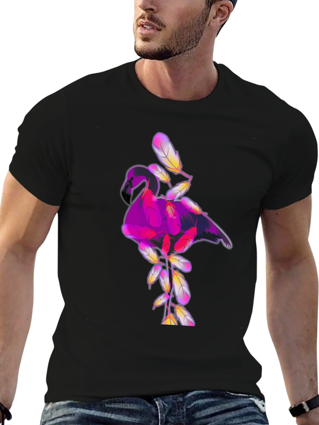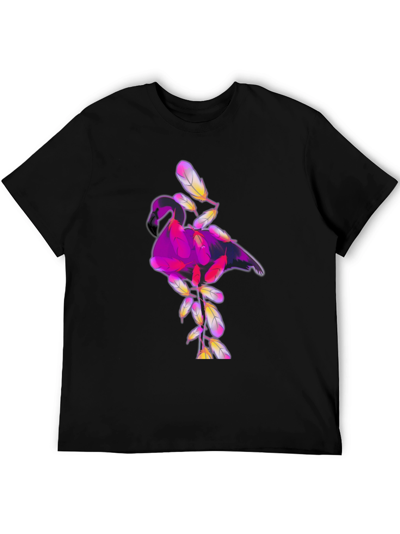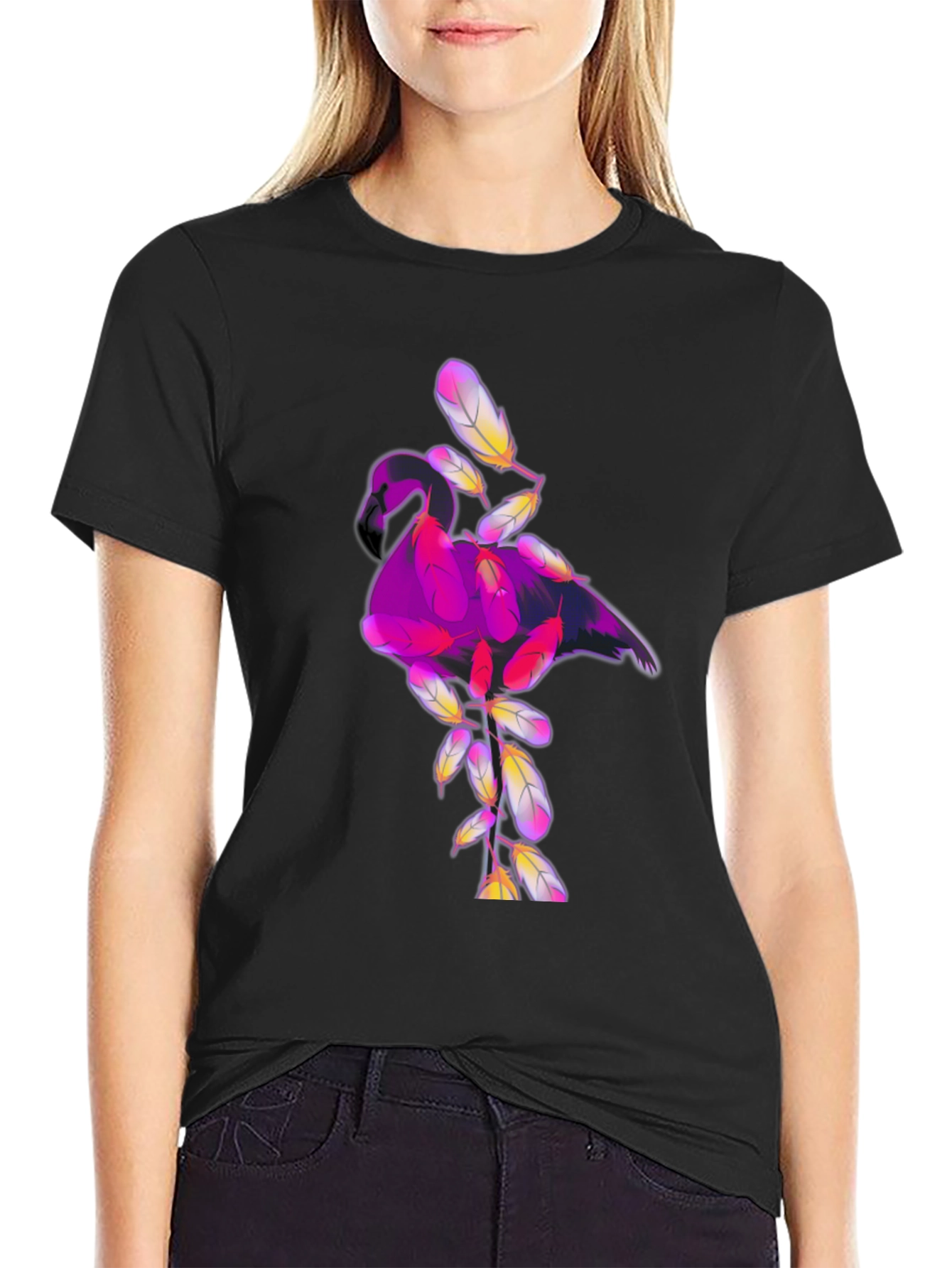 Luce un estilo único con esta llamativa camiseta negra. Presenta un diseño abstracto de un flamenco en vibrantes tonos de rosa y morado, rodeado de hojas estilizadas en amarillo y rosa. Su corte clásico y tejido suave ofrecen comodidad y un ajuste favorecedor. Ideal para expresar tu personalidad y destacar en cualquier ocasión casual. Perfecta para combinar con jeans, shorts o faldas. Añade un toque de arte moderno a tu guardarropa con esta prenda original y llena de color.