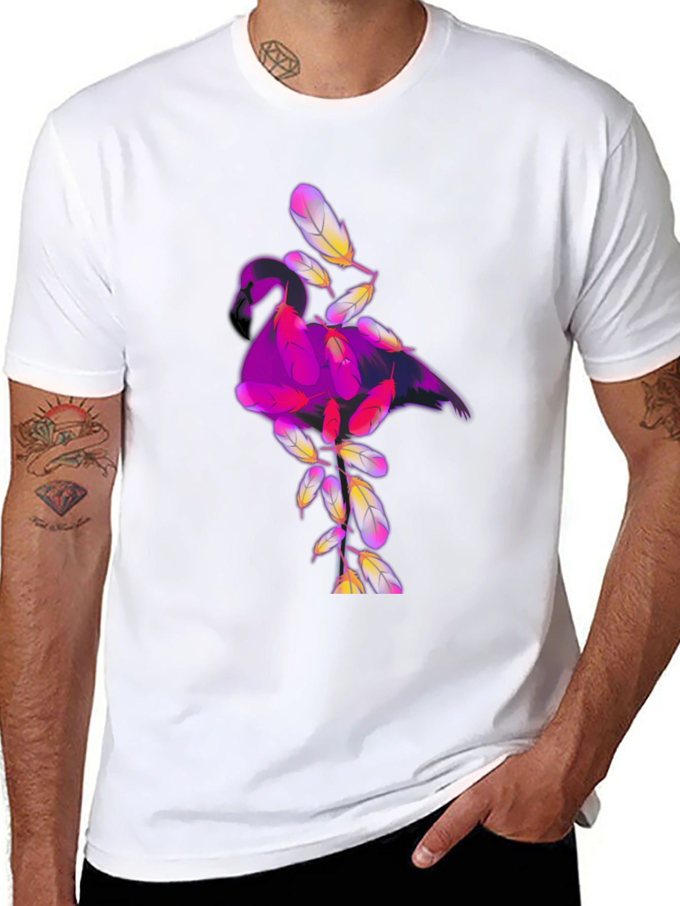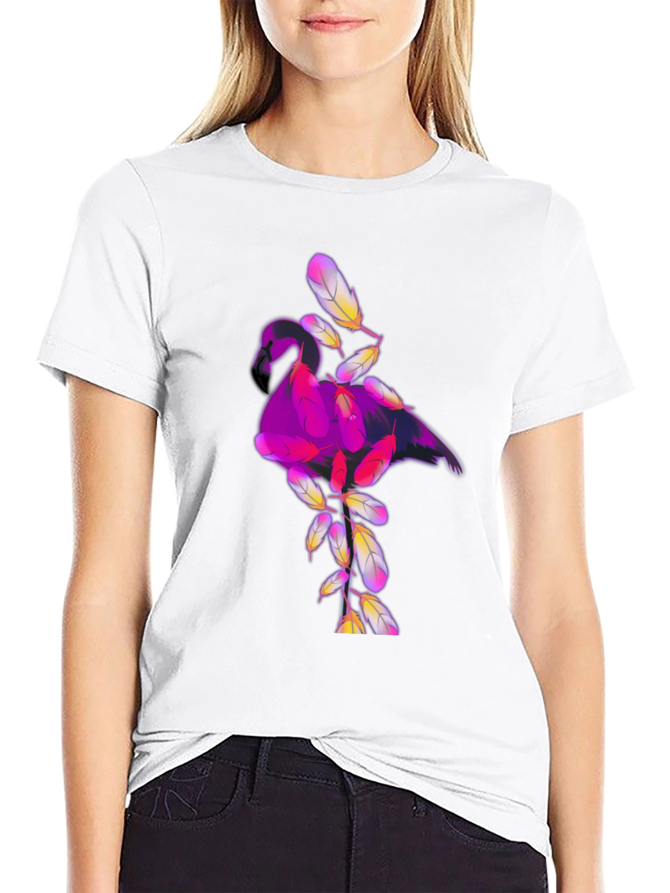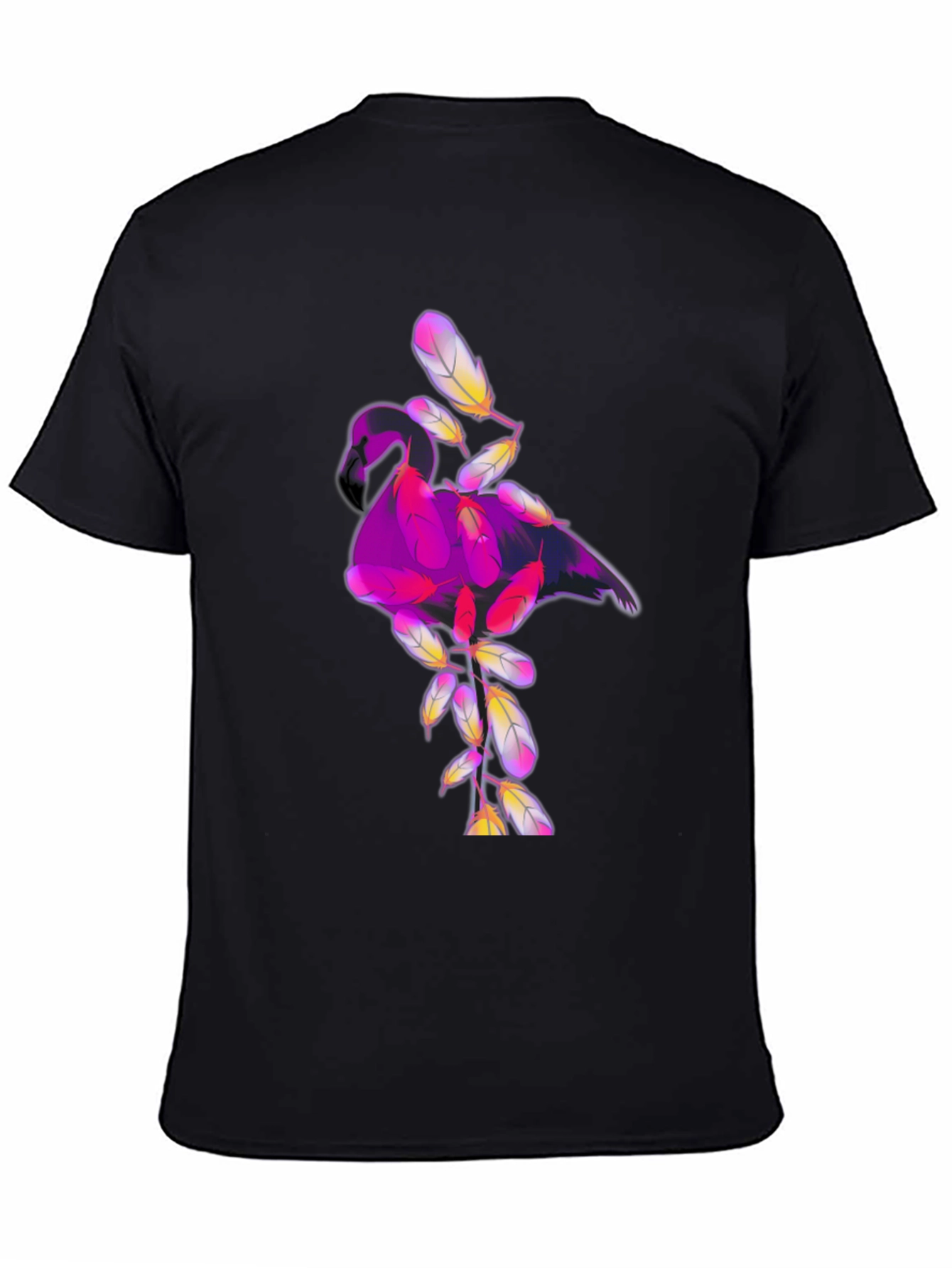Luce un estilo único con esta llamativa camiseta negra. Presenta un diseño abstracto de un flamenco en vibrantes tonos de rosa y morado, rodeado de hojas estilizadas en amarillo y rosa. Su corte clásico y tejido suave ofrecen comodidad y un ajuste favorecedor. Ideal para expresar tu personalidad y destacar en cualquier ocasión casual. Perfecta para combinar con jeans, shorts o faldas. Añade un toque de arte moderno a tu guardarropa con esta prenda original y llena de color.