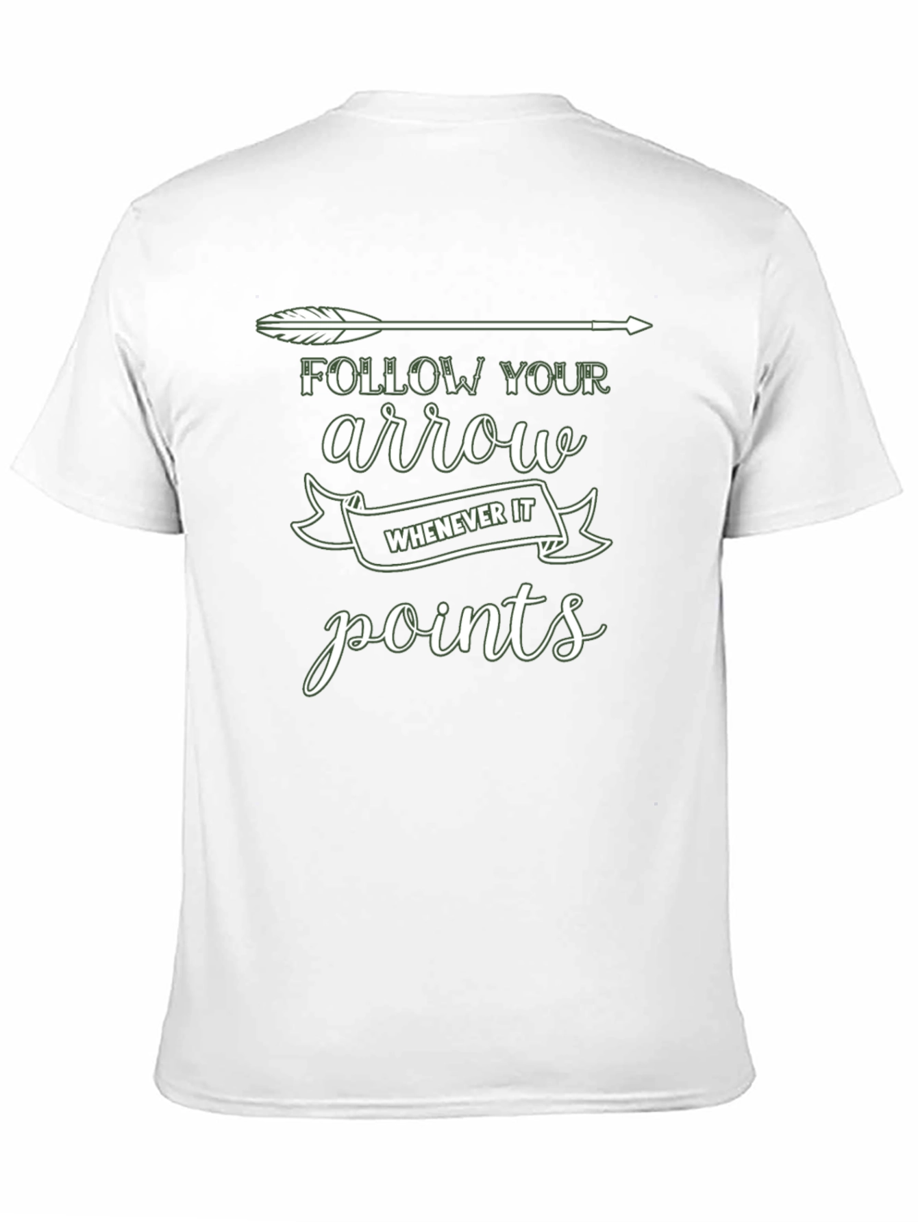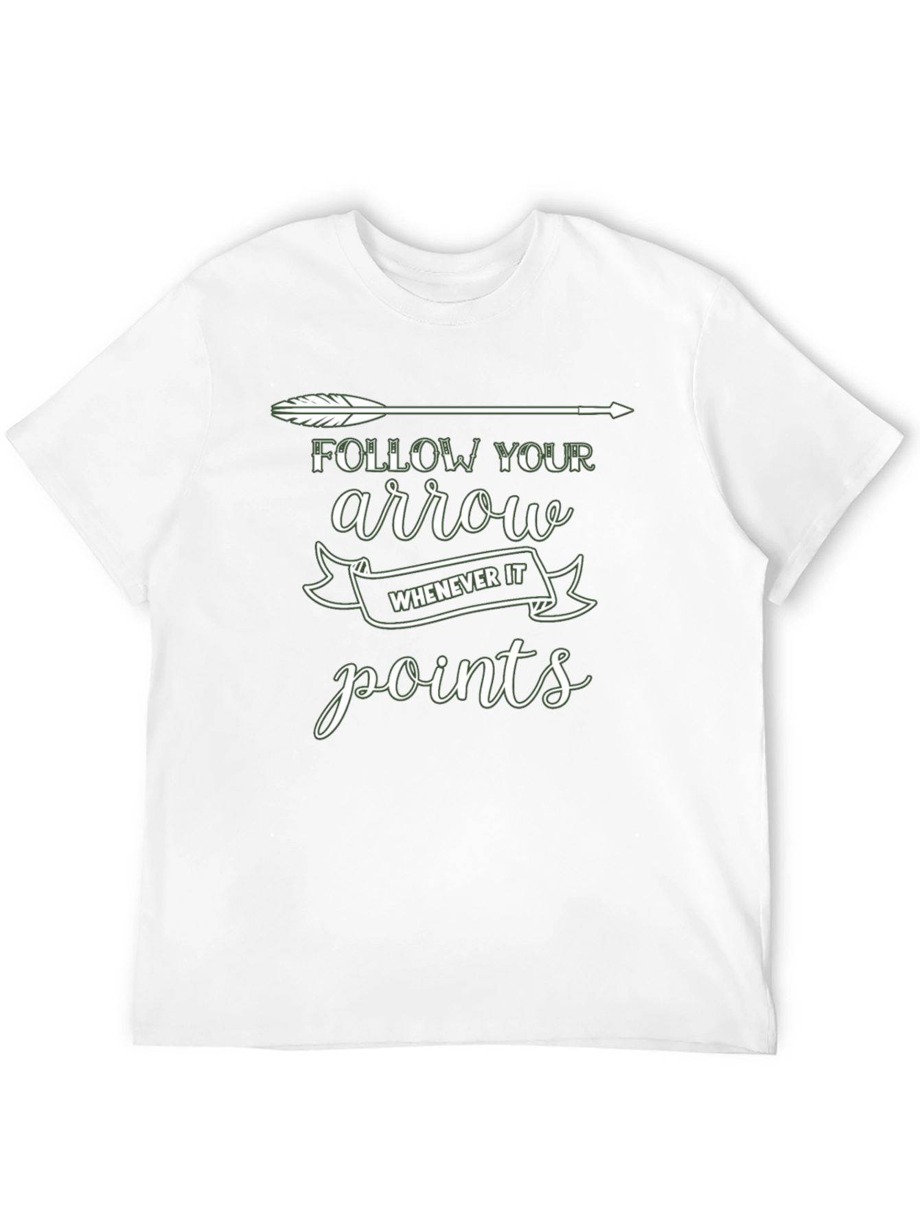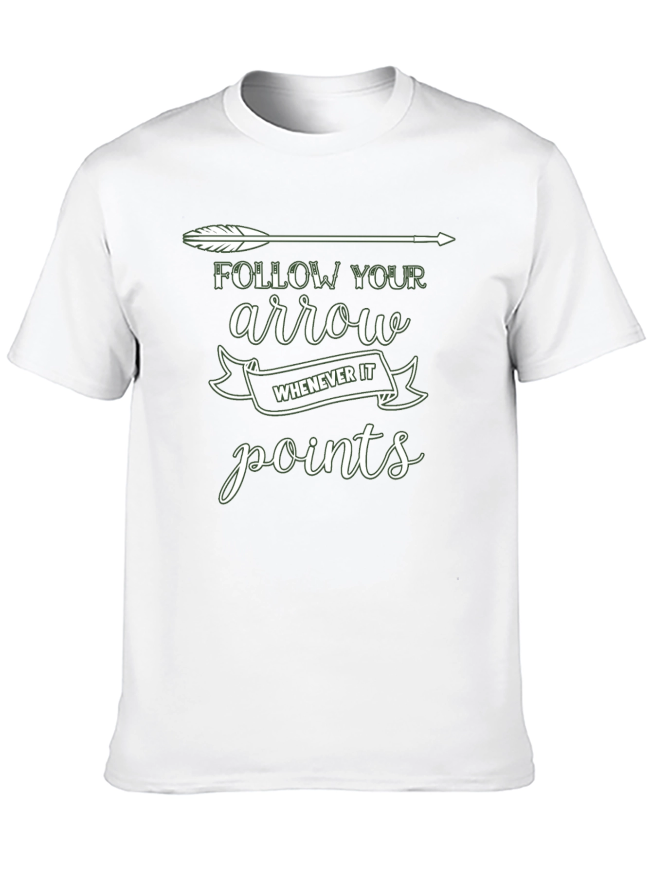 Luce esta elegante camiseta negra con un diseño único y motivador. La camiseta presenta una flecha blanca estilizada en la parte superior, acompañada del texto "FOLLOW YOUR arrow WHENEVER IT points" en una tipografía moderna y atractiva. El diseño inspira a seguir tu propio camino y a tomar decisiones audaces. Fabricada con materiales suaves y cómodos, esta camiseta es perfecta para el uso diario, ya sea para salir con amigos, ir al gimnasio o simplemente relajarte en casa. Su corte clásico y versátil se adapta a cualquier estilo. ¡Añade un toque de inspiración a tu armario con esta camiseta única!