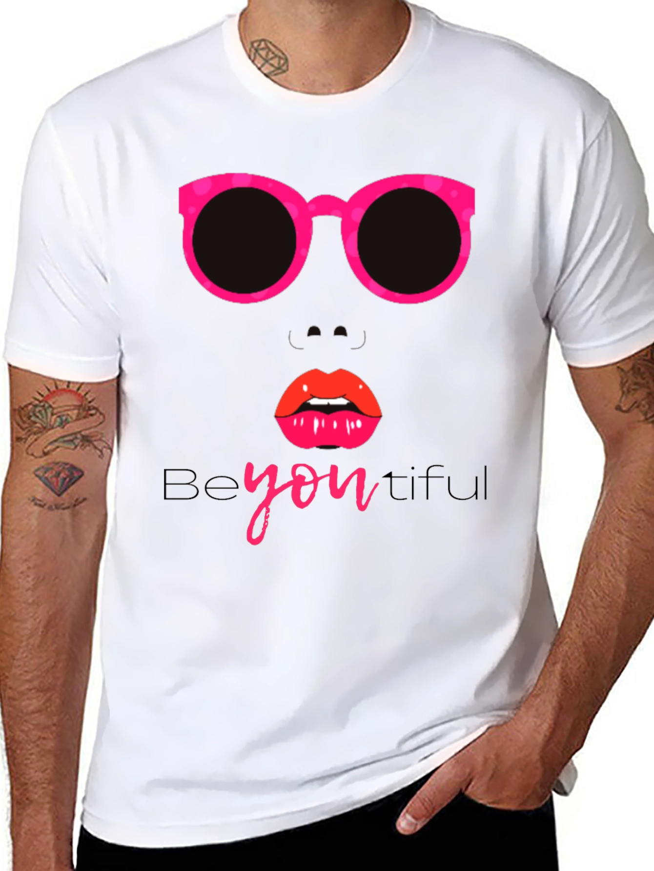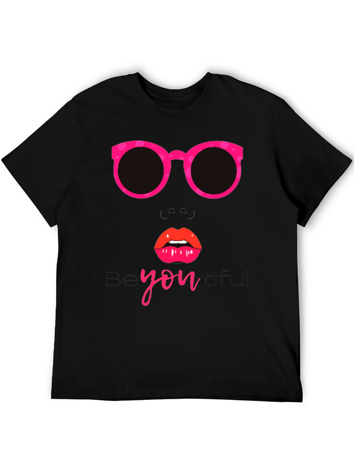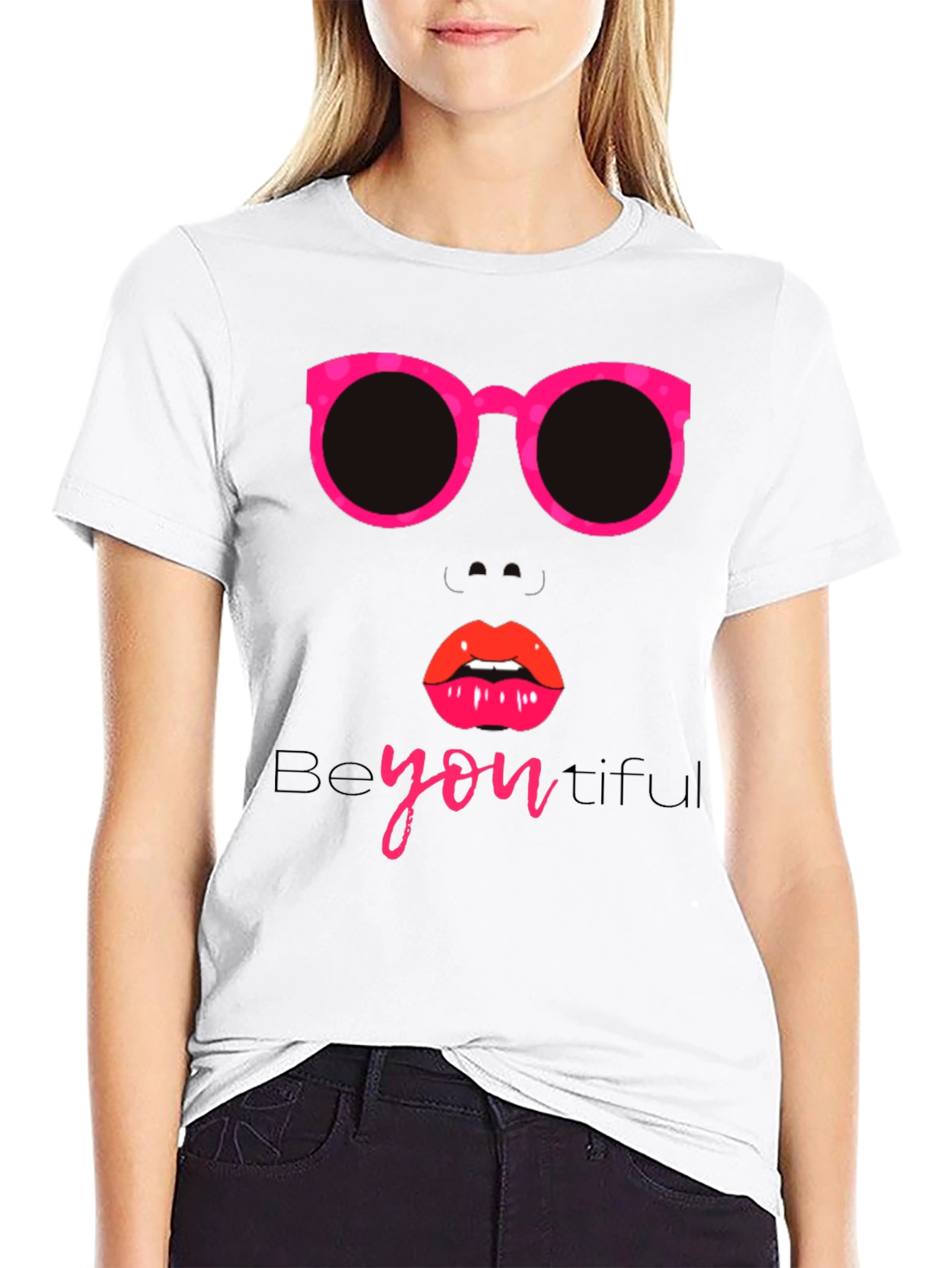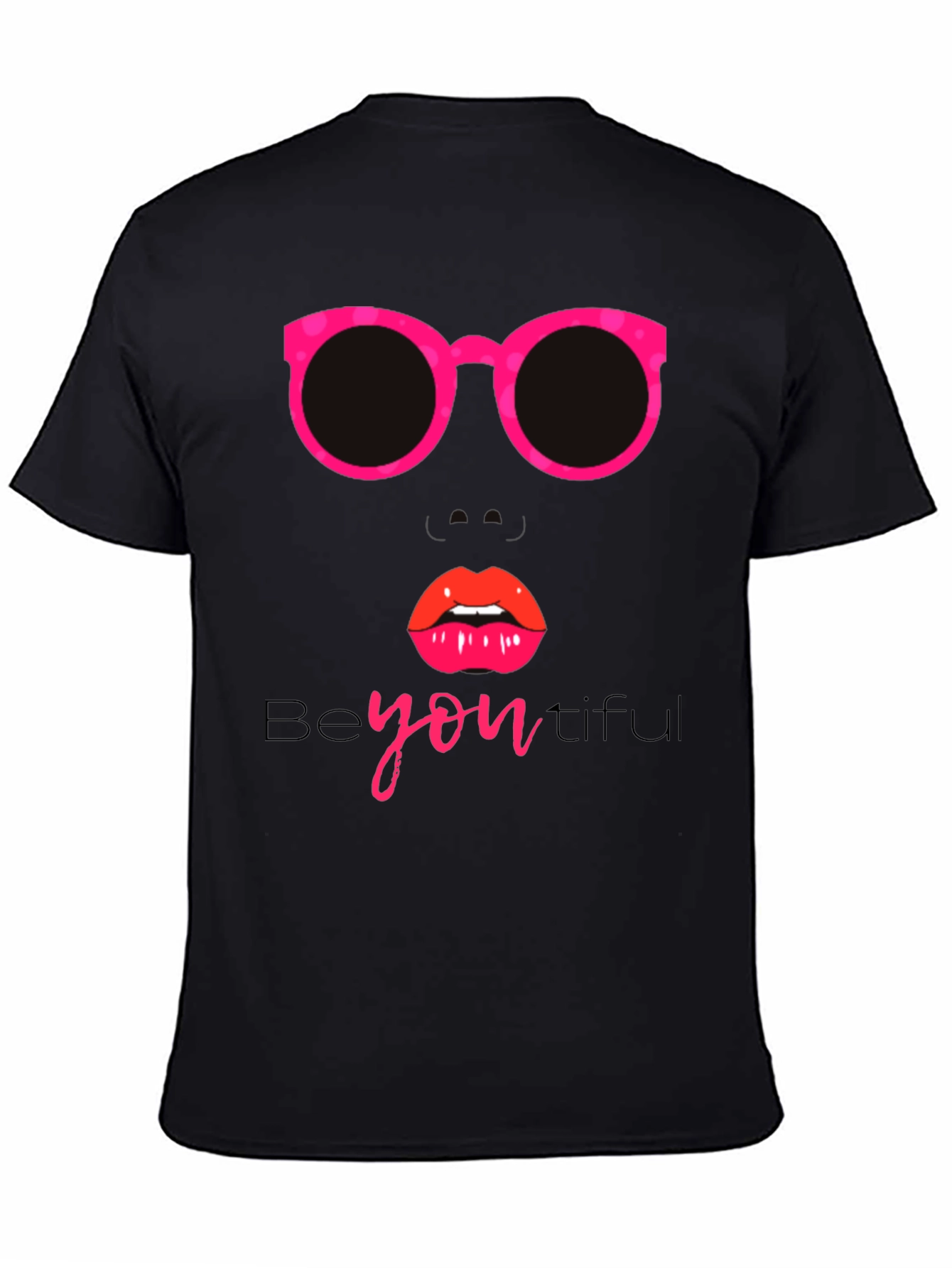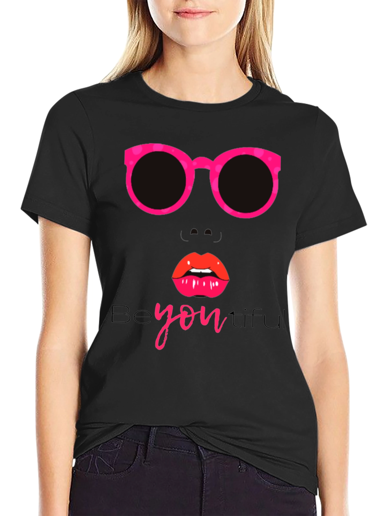 Luce un estilo único con esta llamativa camiseta negra. Presenta un diseño moderno y audaz con gafas rosas de lunares y labios rojos brillantes, acompañado del texto "Be you tiful". Ideal para expresar tu individualidad y añadir un toque divertido a tu vestuario. Fabricada con materiales suaves y cómodos, perfecta para el uso diario. Combínala con tus jeans favoritos para un look casual o con una falda para un estilo más chic. ¡Destaca entre la multitud con esta prenda original y llena de actitud!