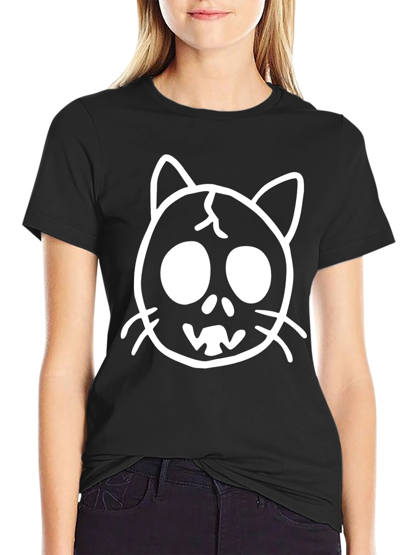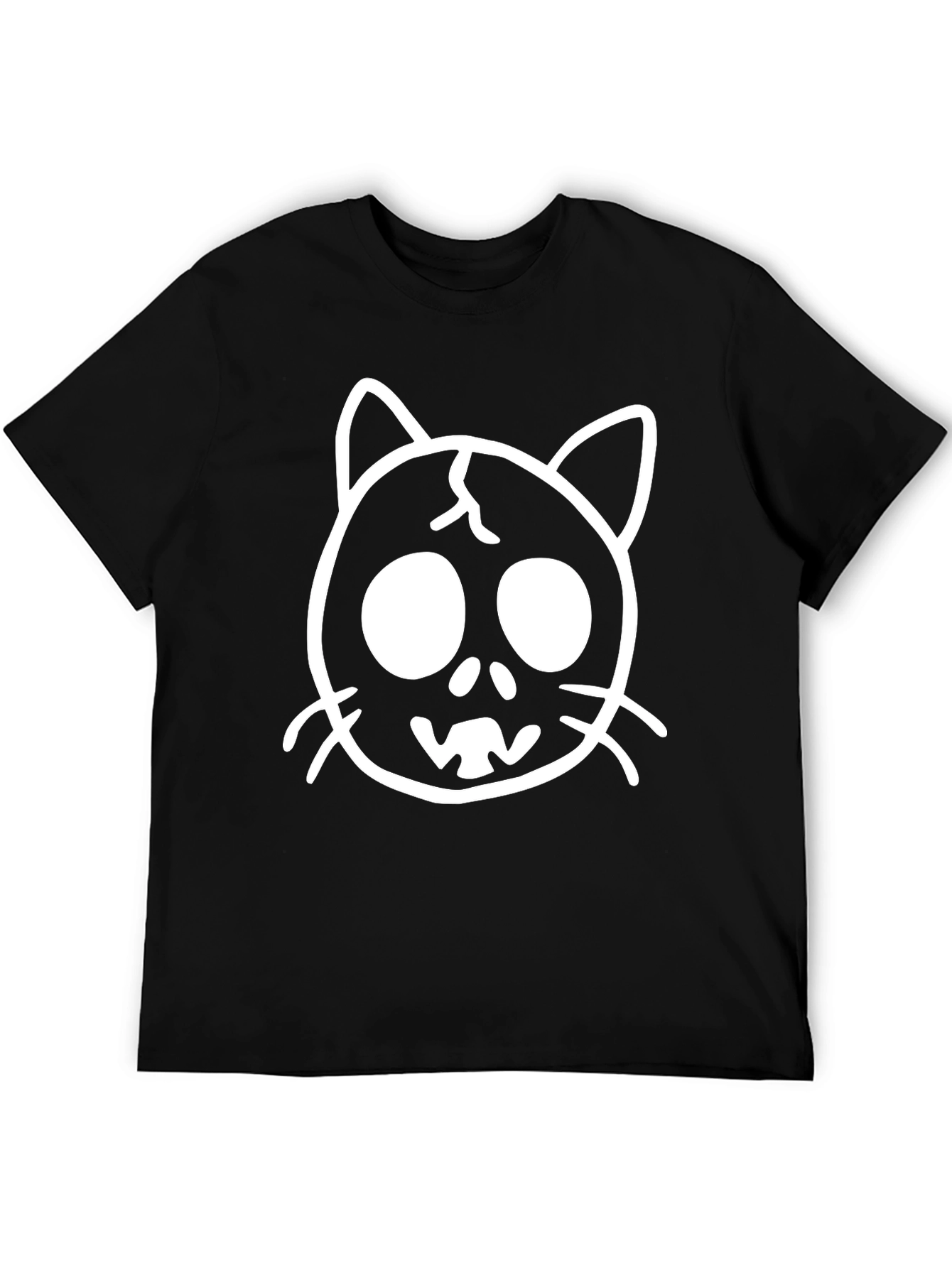 Camiseta Negra con Diseño de Gato Esquelético