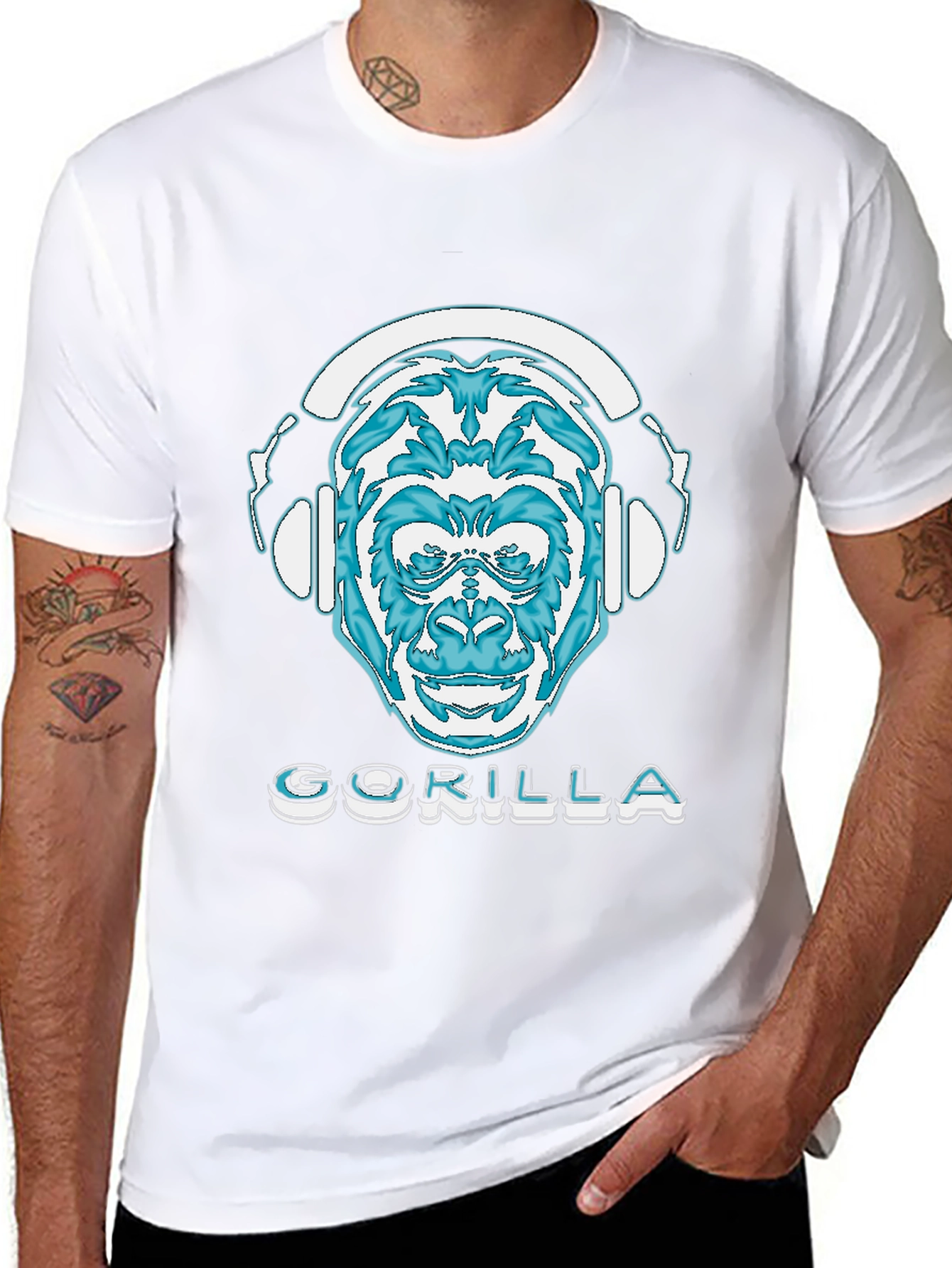 Destaca con esta camiseta negra de manga corta que presenta un diseño llamativo de un gorila con auriculares. El diseño del gorila está detallado con un patrón abstracto en tonos azules y blancos, ofreciendo un aspecto moderno y artístico. La camiseta es ideal para aquellos que buscan expresar su individualidad y amor por la música. Perfecta para uso diario, conciertos, o como una declaración de moda única. Esta camiseta combina comodidad y estilo, haciéndola imprescindible en cualquier guardarropa casual.