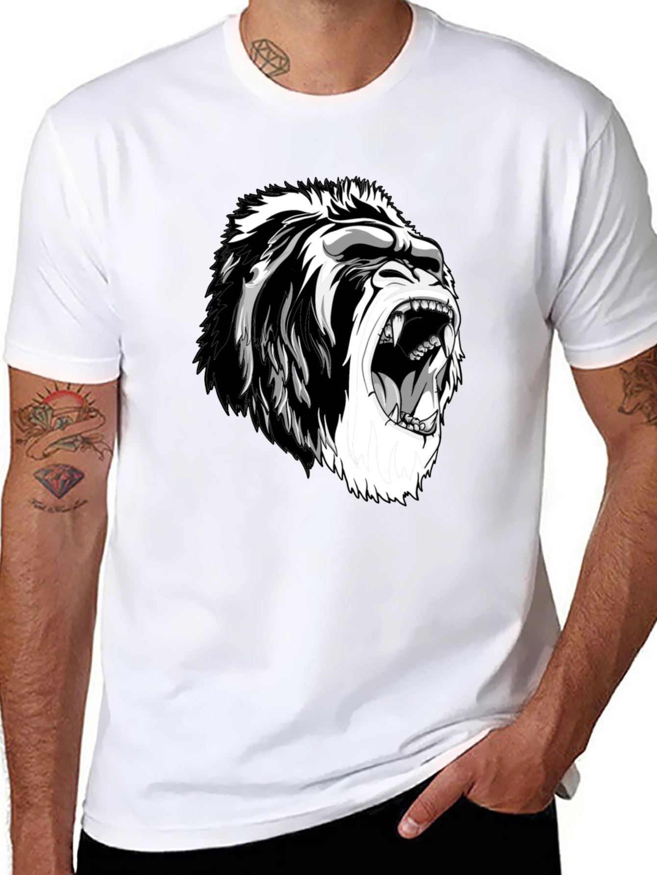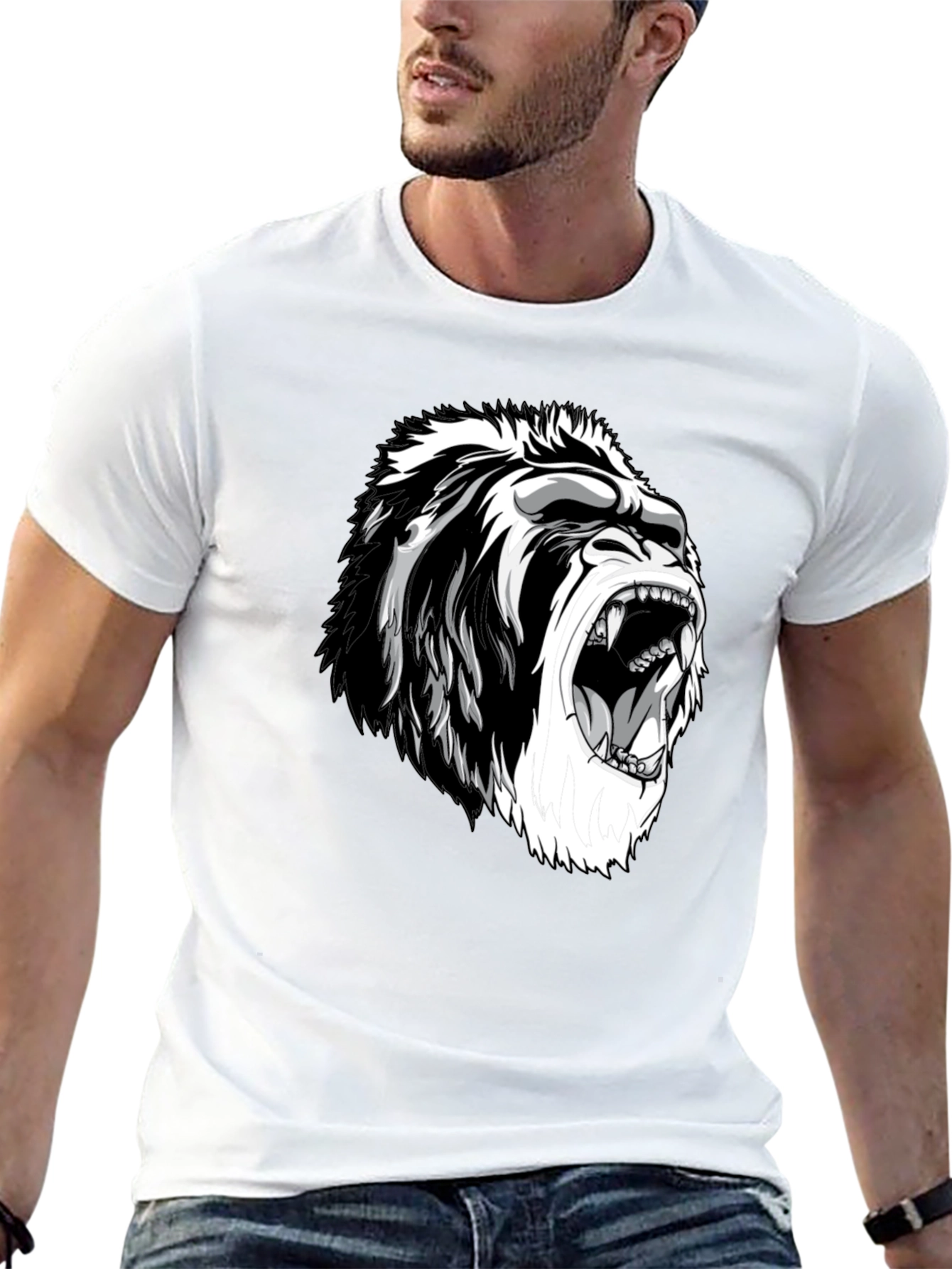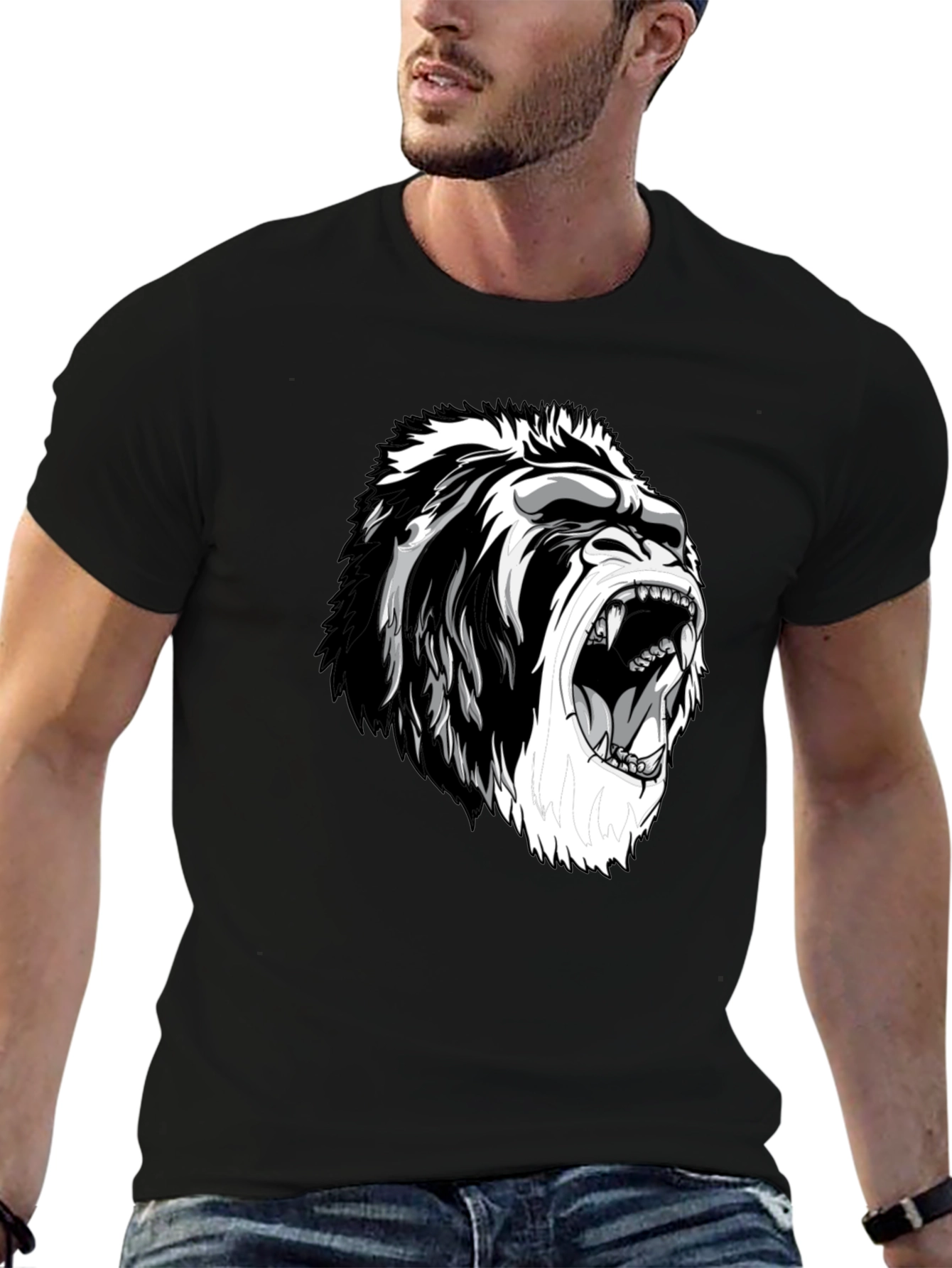 Luce esta llamativa camiseta negra con un impresionante diseño de un gorila furioso. La imagen, en tonos blancos y grises, destaca sobre el fondo oscuro, creando un contraste impactante. Ideal para aquellos que buscan expresar su personalidad audaz y su espíritu rebelde. Fabricada con materiales de alta calidad, esta camiseta ofrece comodidad y durabilidad. Perfecta para uso diario, conciertos, eventos deportivos o simplemente para destacar entre la multitud. Muestra tu lado salvaje con esta prenda única y moderna. ¡Atrévete a marcar la diferencia!