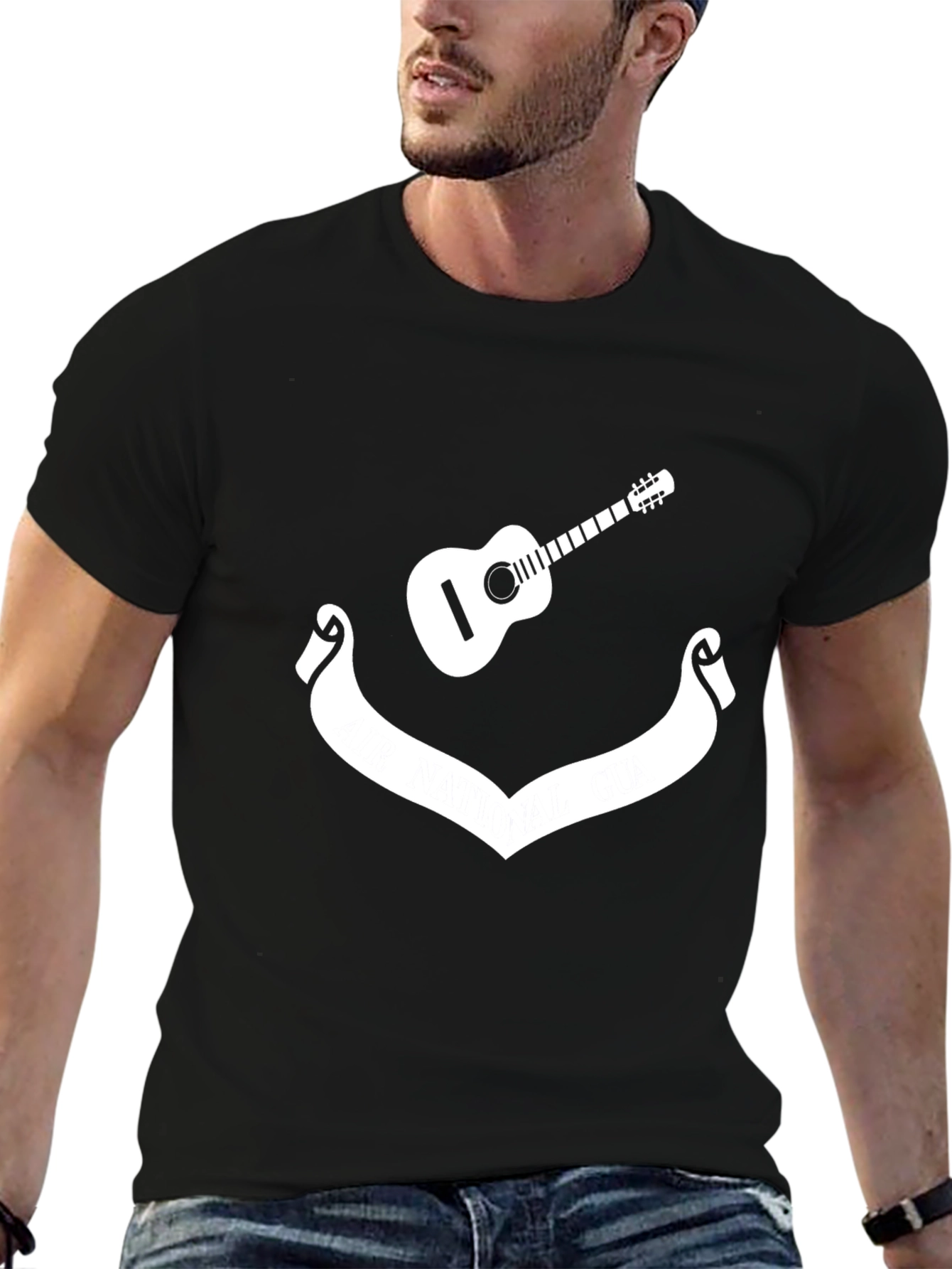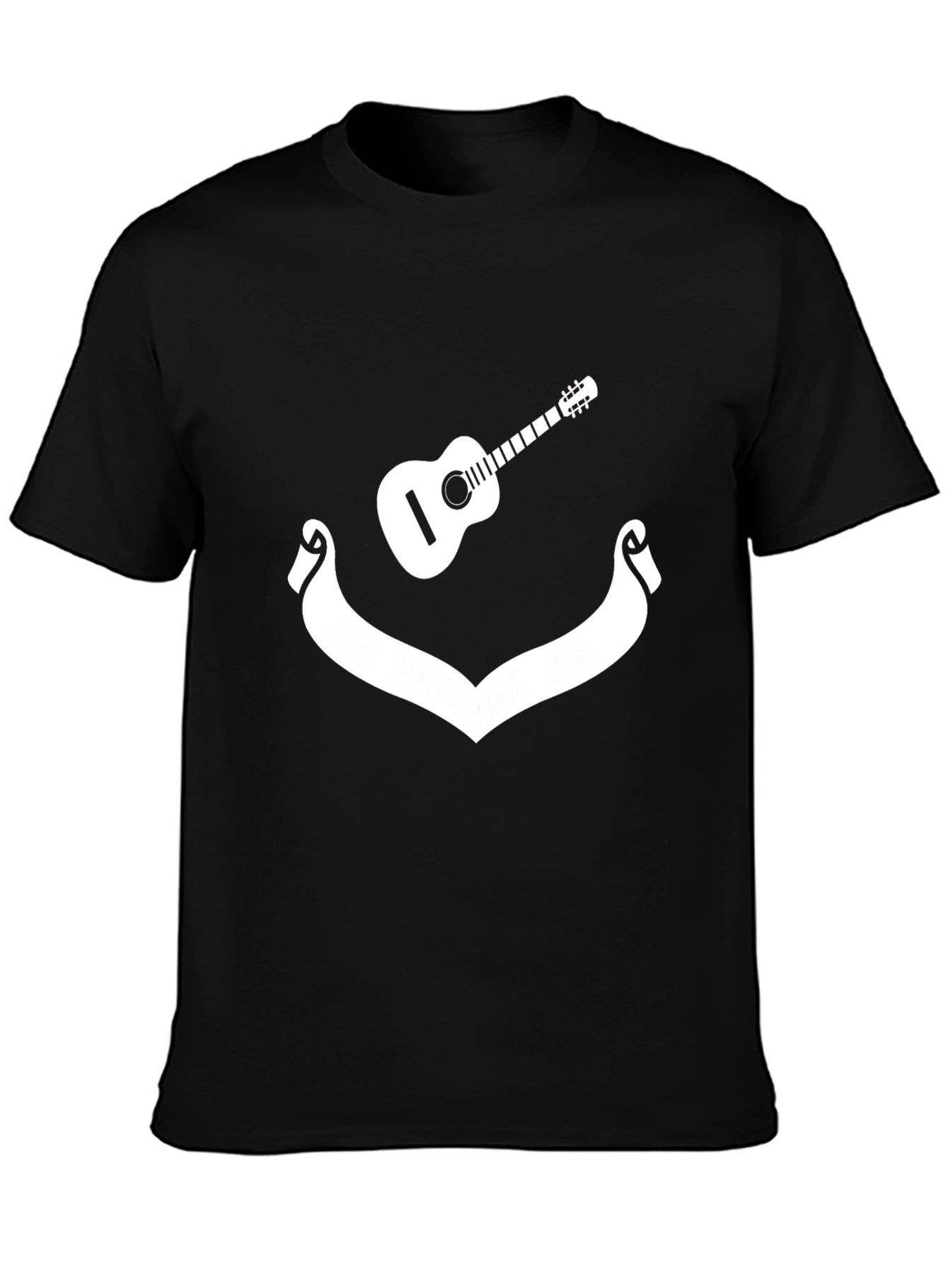 Camiseta Negra con Diseño de Guitarra y Cinta