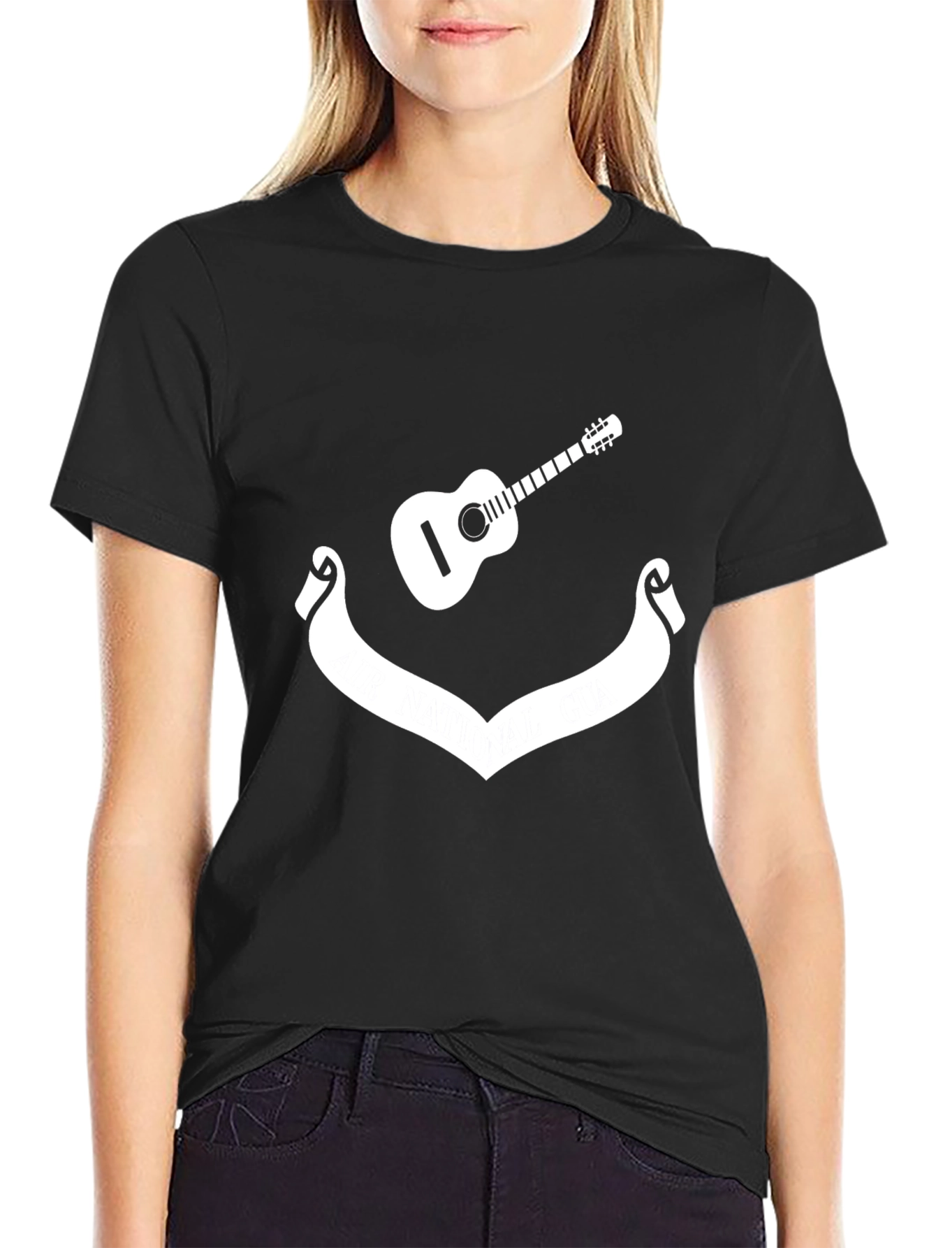 Luce un estilo musical con esta camiseta negra de diseño único. Presenta una ilustración en blanco de una guitarra acústica estilizada y una cinta decorativa en la parte frontal. Ideal para amantes de la música y aquellos que buscan un look original y llamativo. Fabricada con materiales suaves y cómodos, perfecta para el uso diario o para destacar en eventos informales. Su corte clásico ofrece un ajuste favorecedor para todo tipo de cuerpo. Añade un toque de personalidad a tu guardarropa con esta prenda versátil y moderna.
