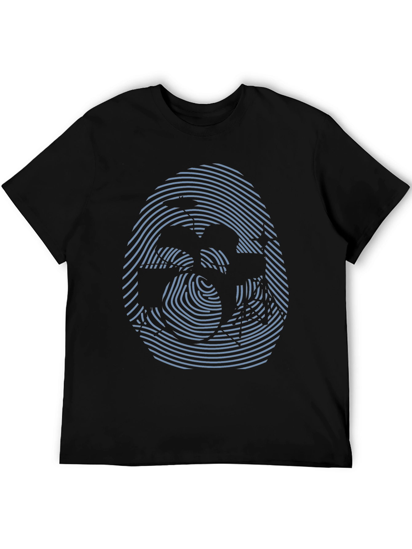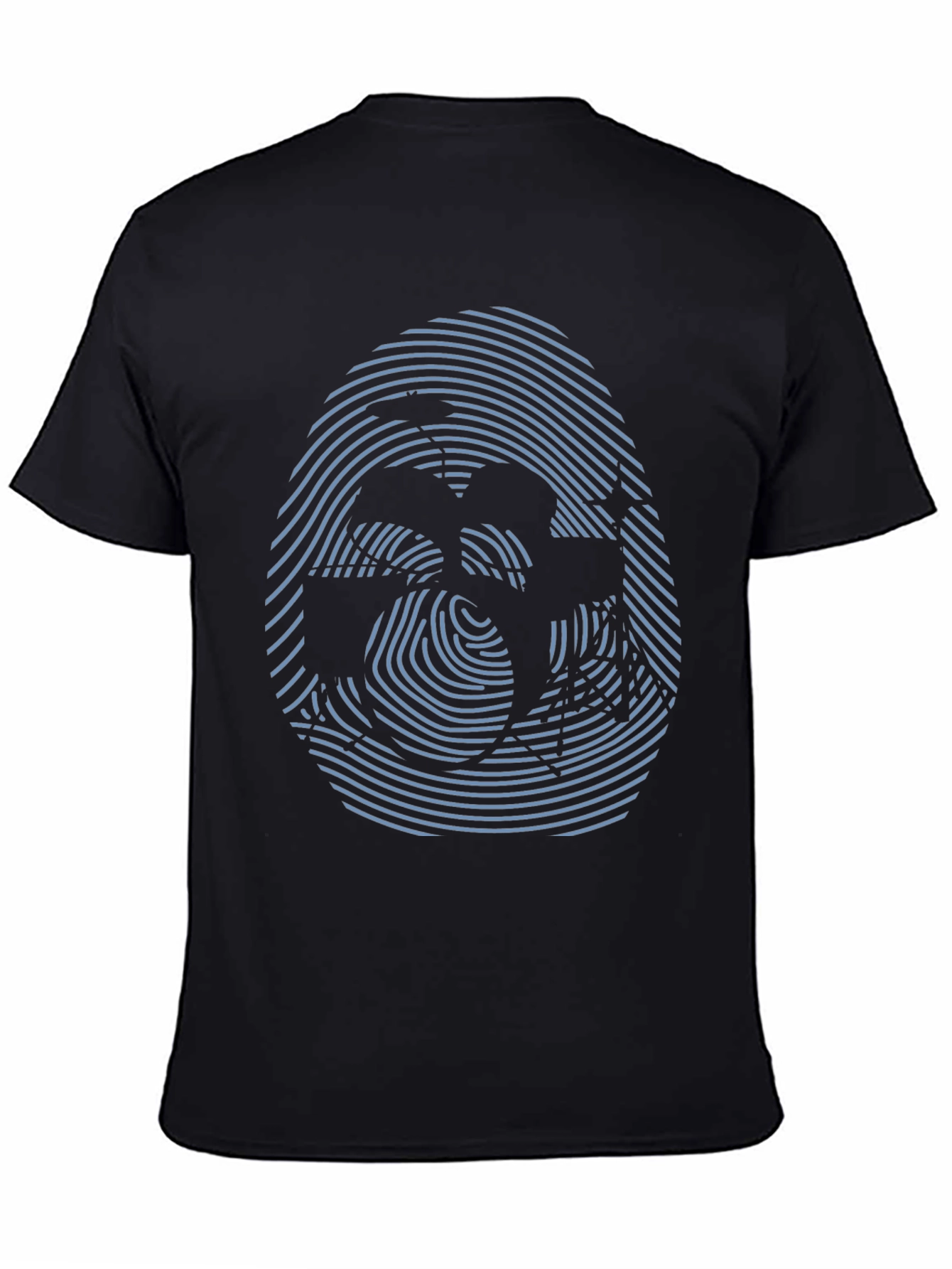 Camiseta Negra con Diseño de Huella Digital Abstracta