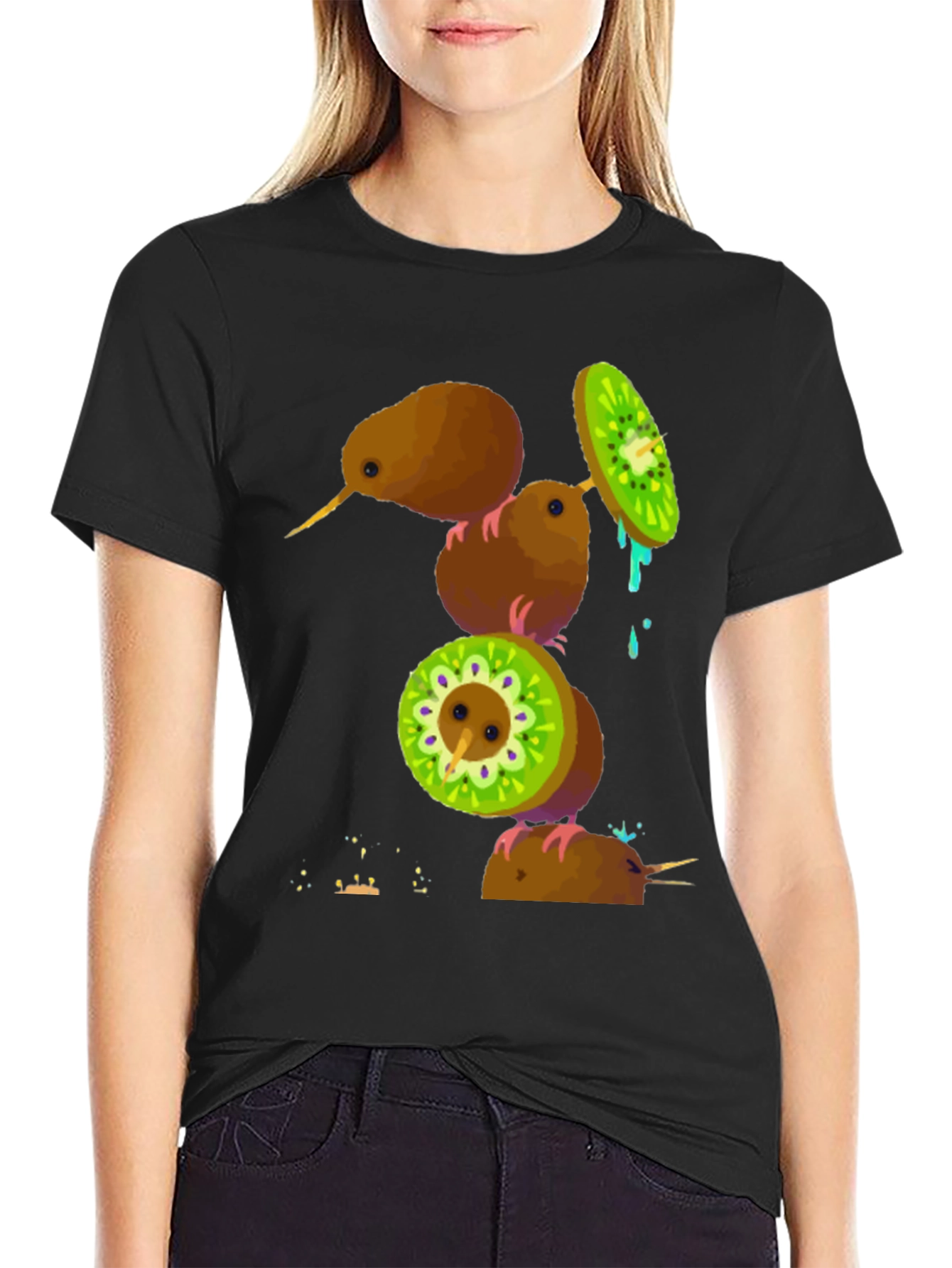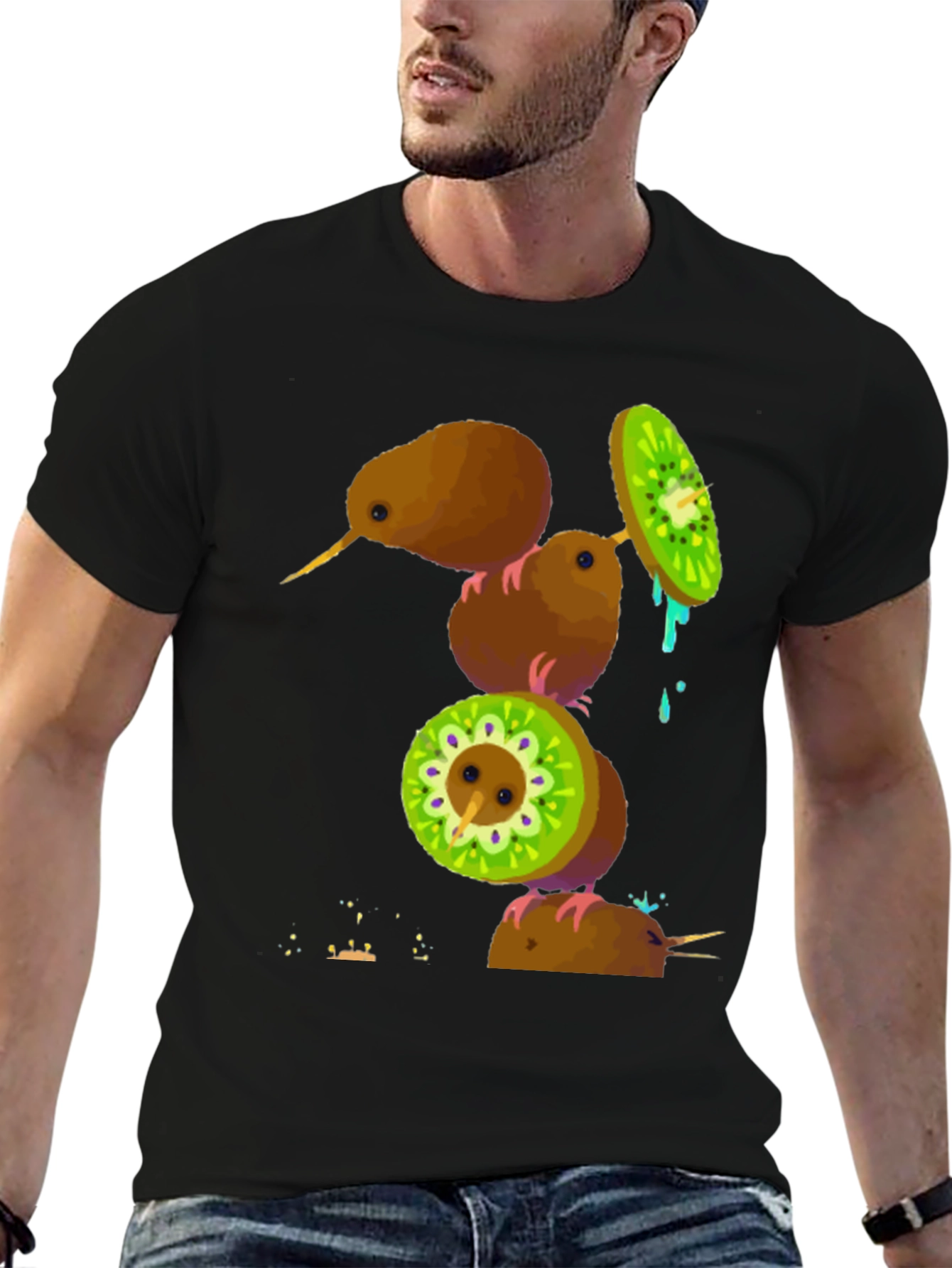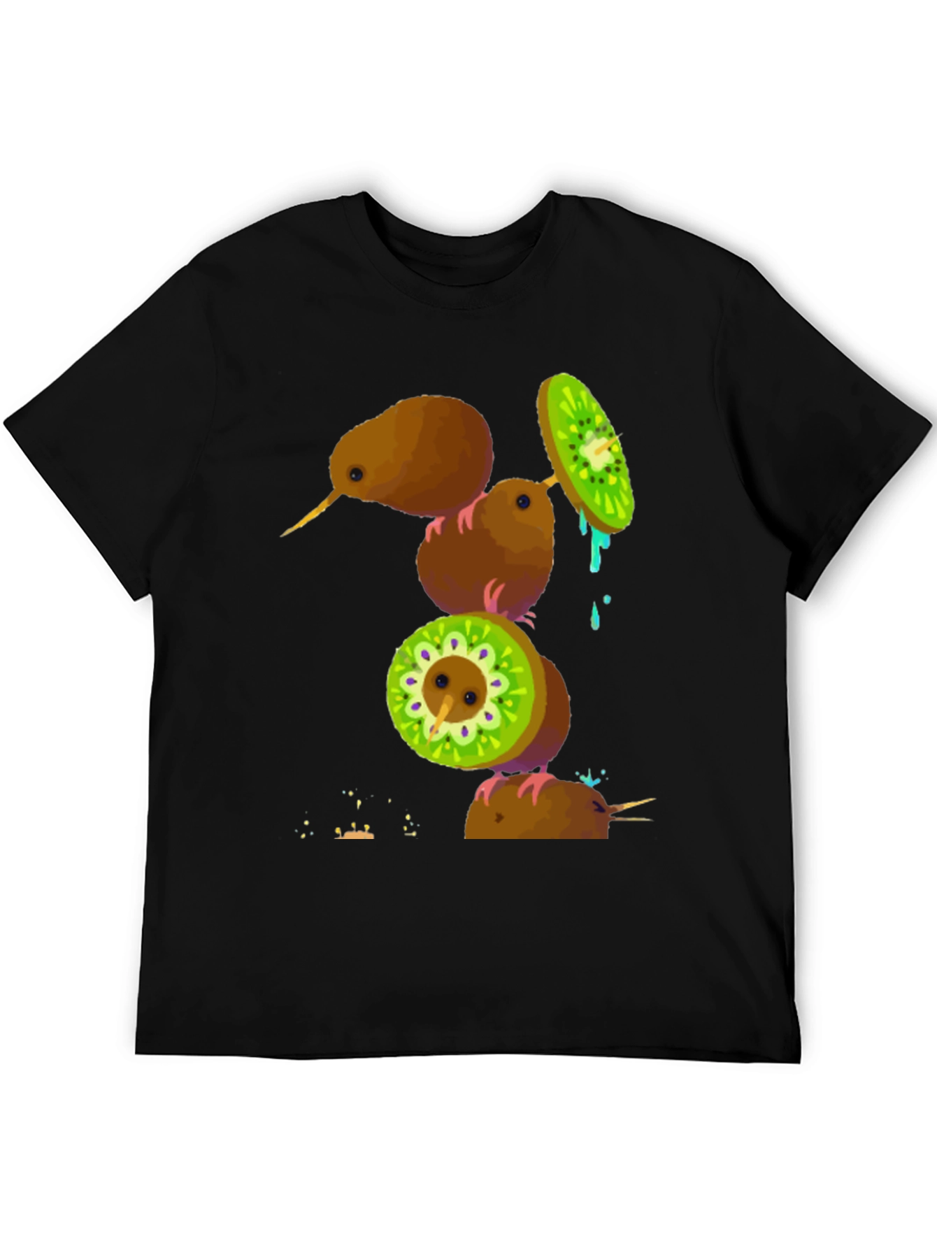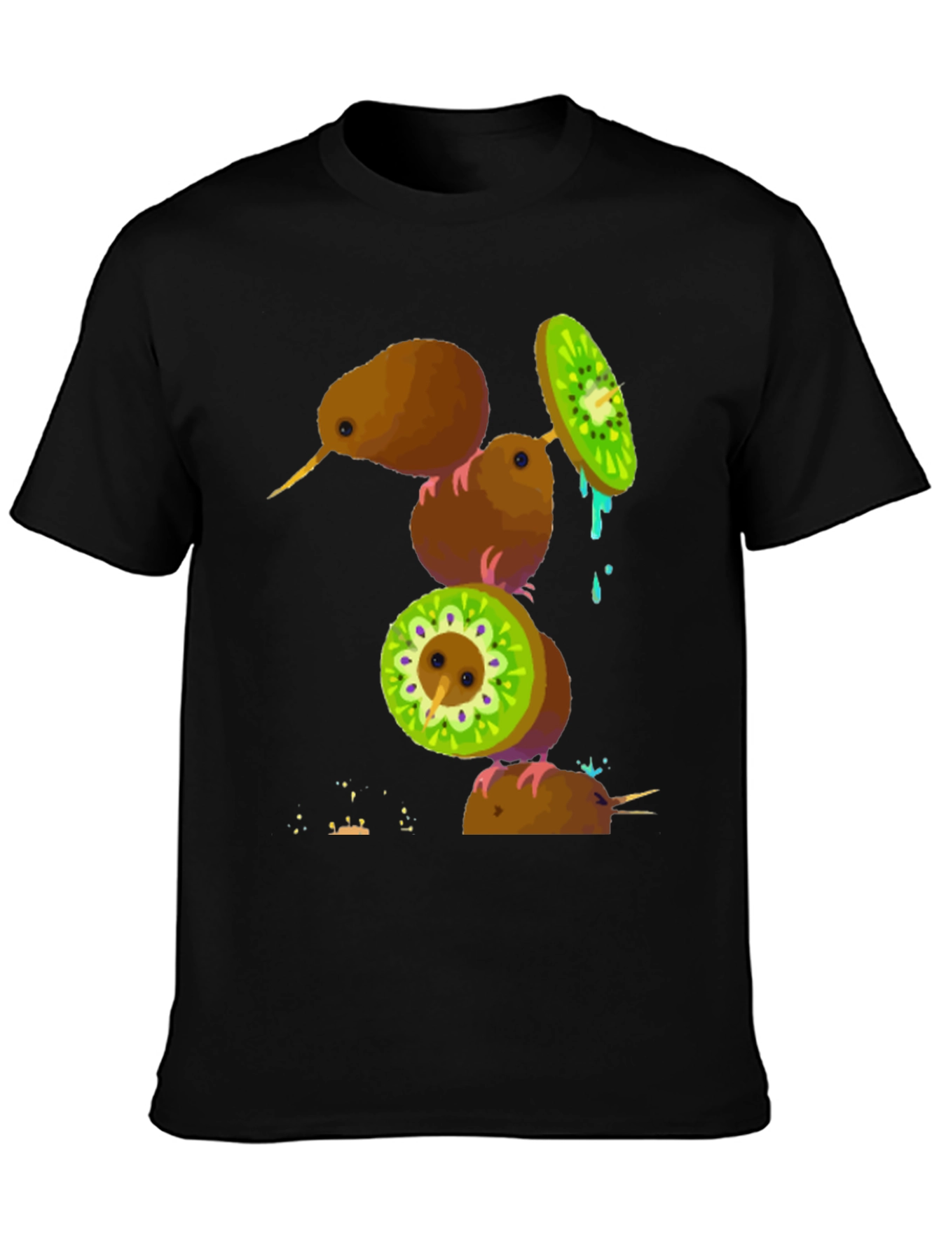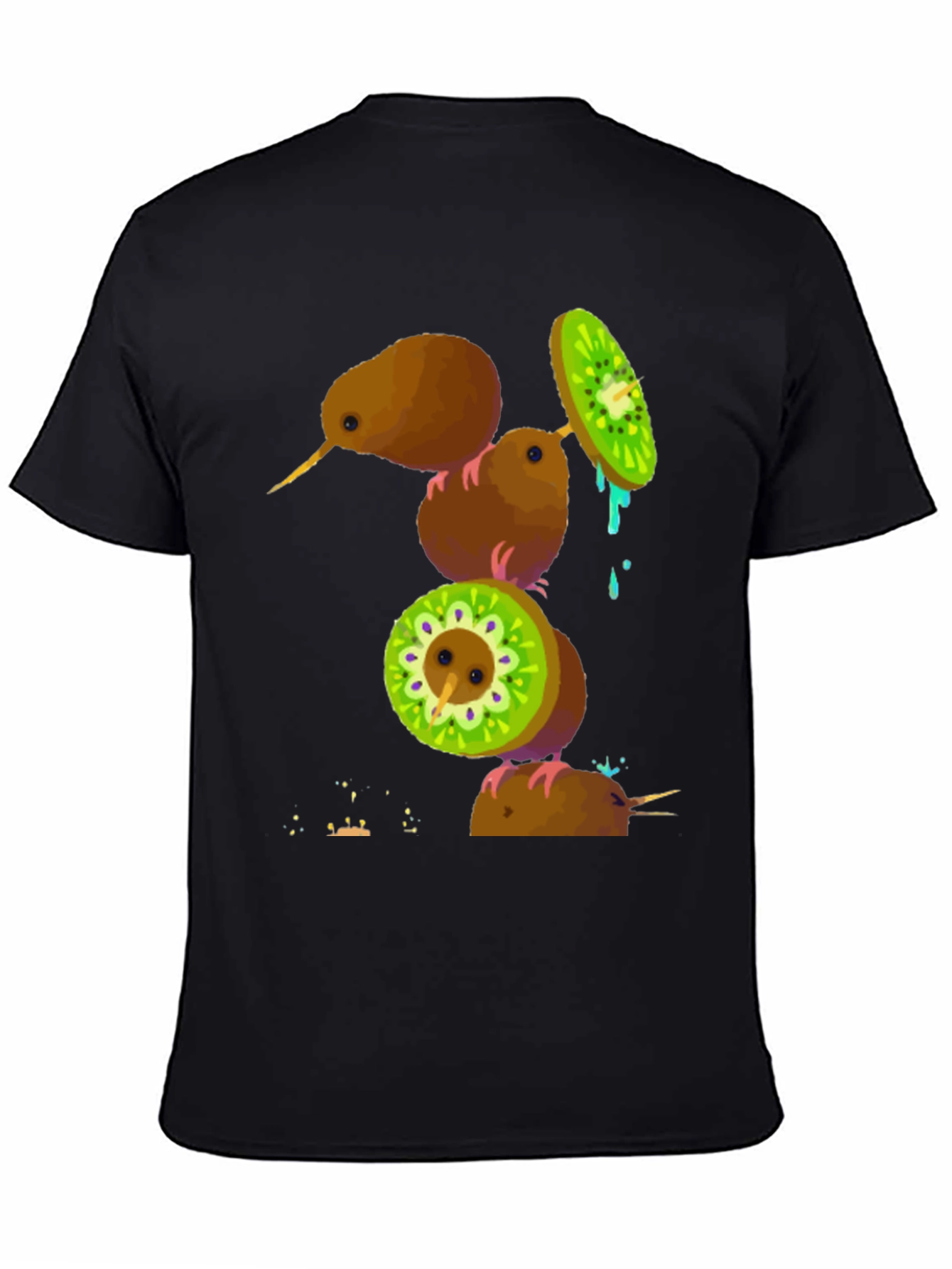 Camiseta Negra con Diseño de Kiwis Divertidos