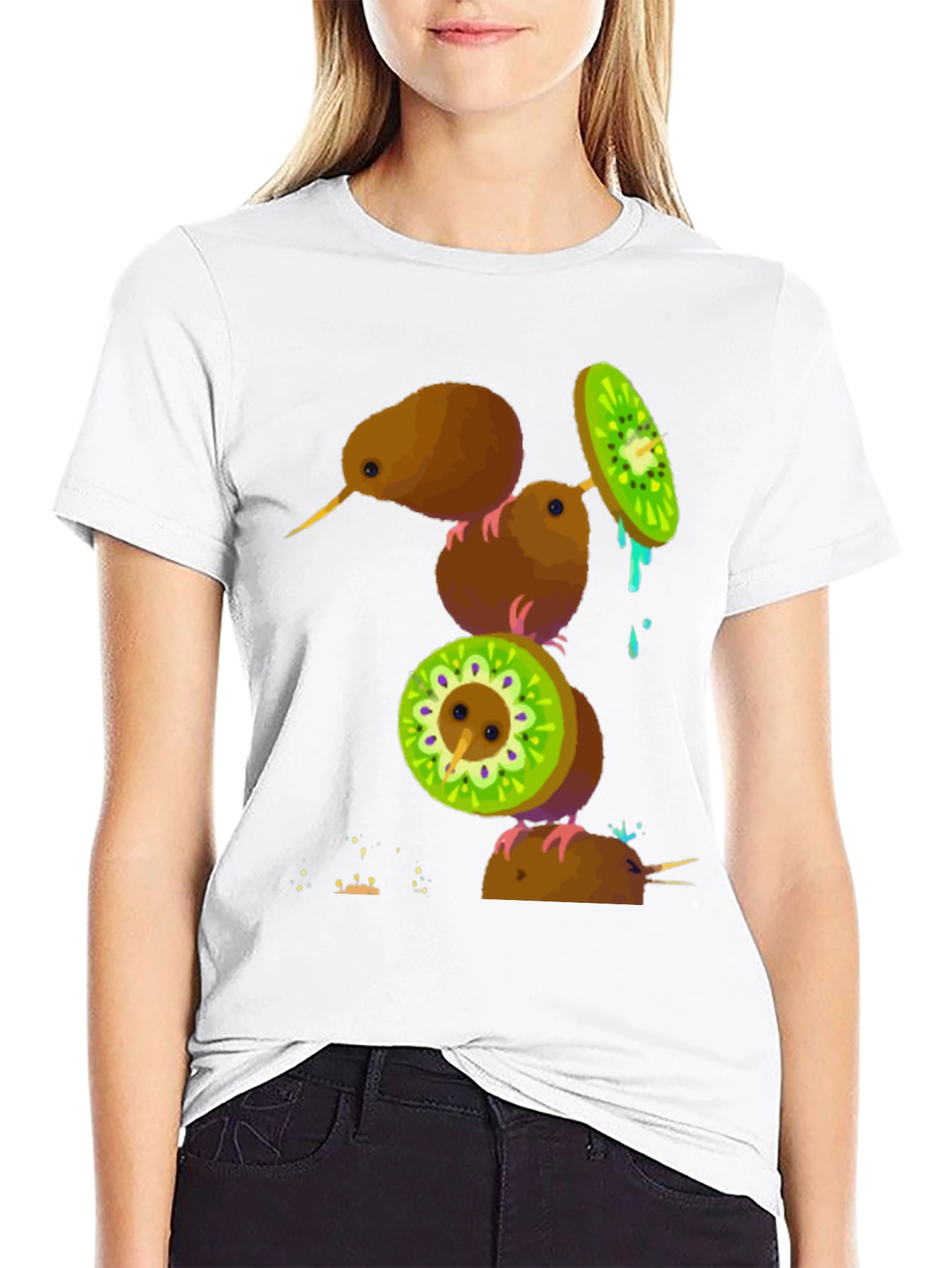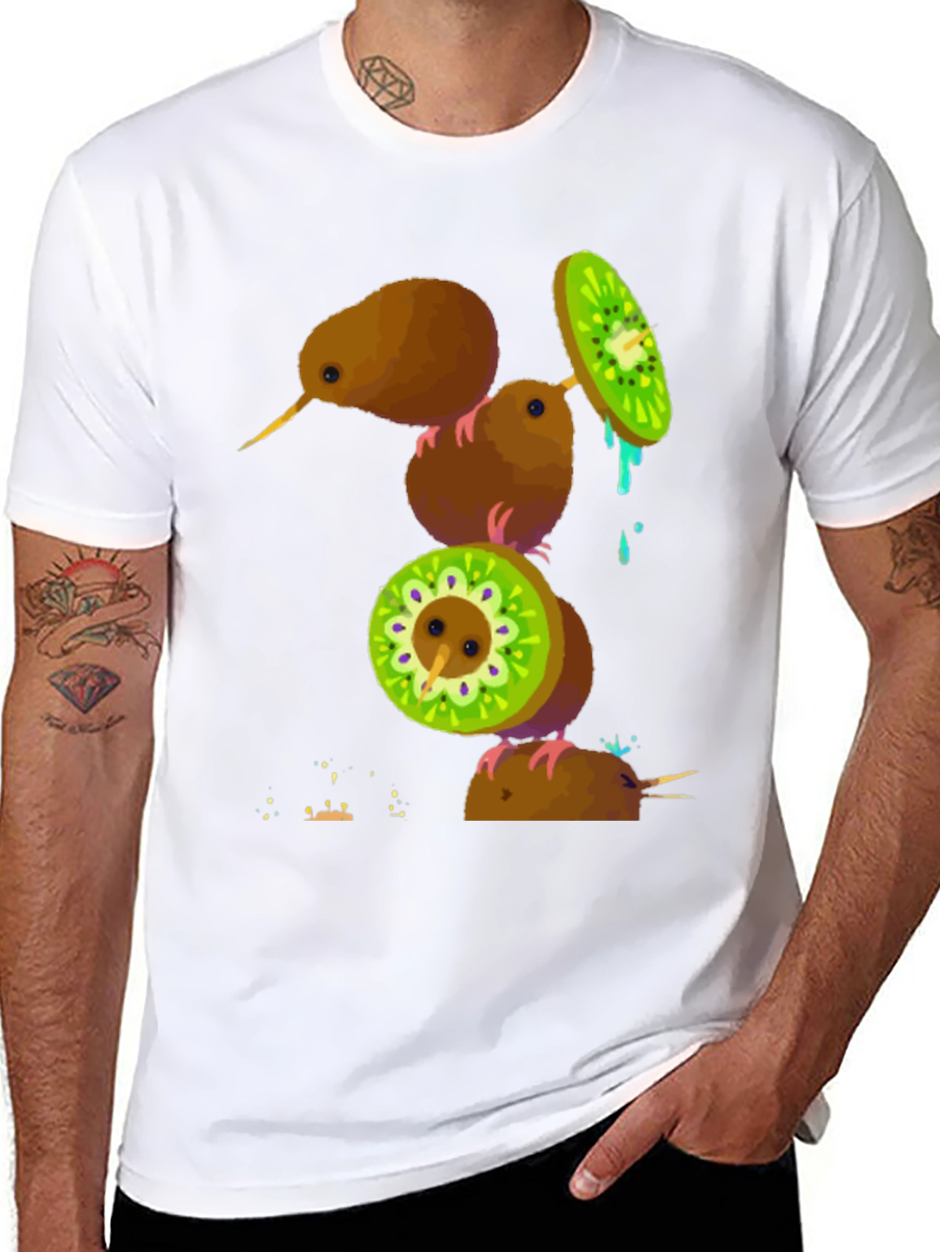 Luce esta original camiseta negra con un diseño apilado de kiwis que destaca por su humor y creatividad. Cada kiwi se presenta de forma única, algunos enteros y otros cortados mostrando la pulpa verde, creando una composición visualmente atractiva y divertida. Perfecta para los amantes de las frutas exóticas y los diseños originales, esta camiseta es ideal para llevar en un día casual, una salida con amigos o simplemente para añadir un toque de alegría a tu vestuario diario. Fabricada con materiales cómodos y duraderos, esta camiseta no solo es llamativa, sino también agradable de llevar. ¡Destaca con esta prenda única y muestra tu lado más divertido!